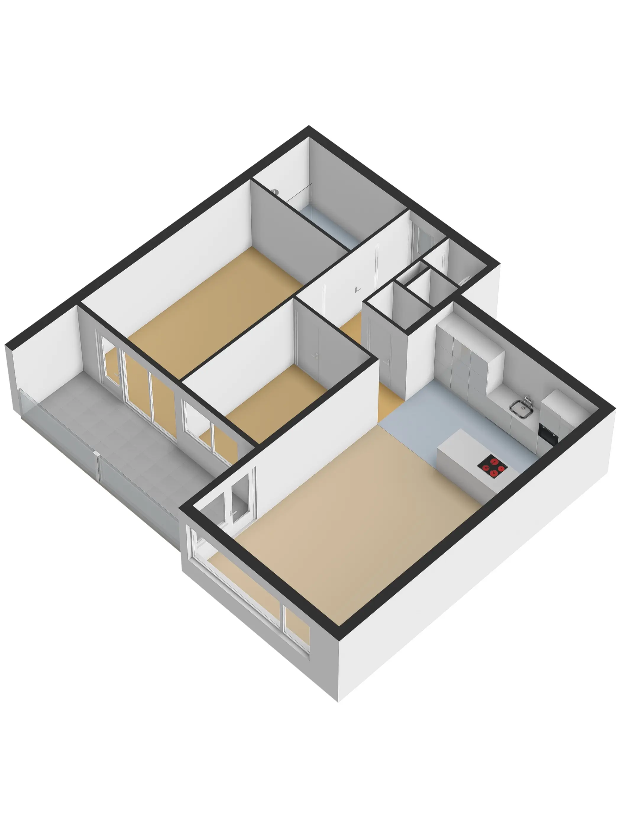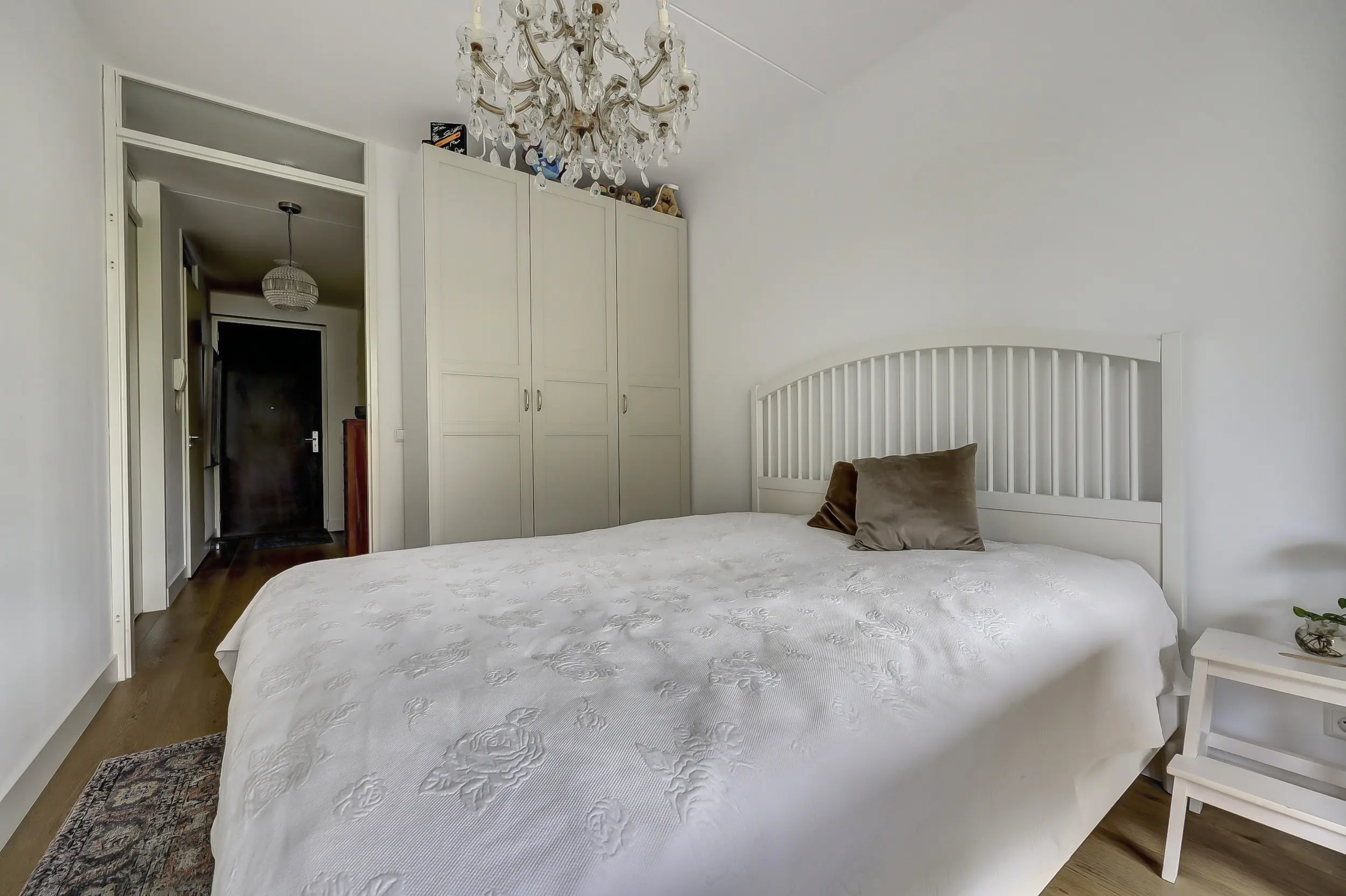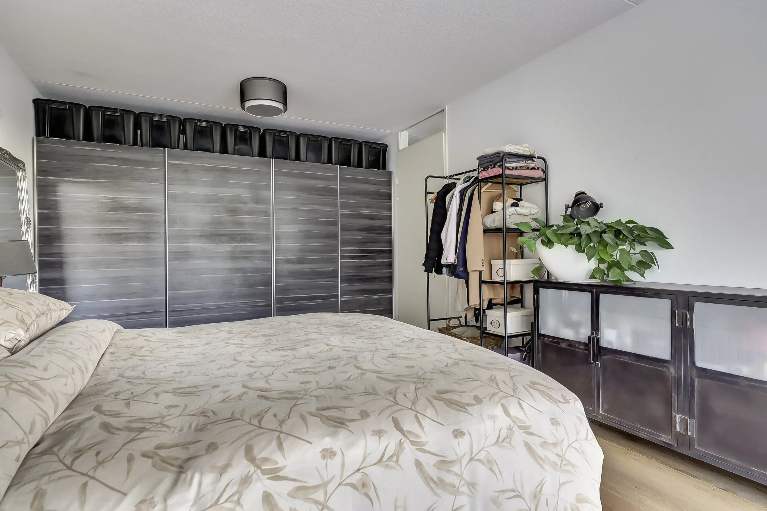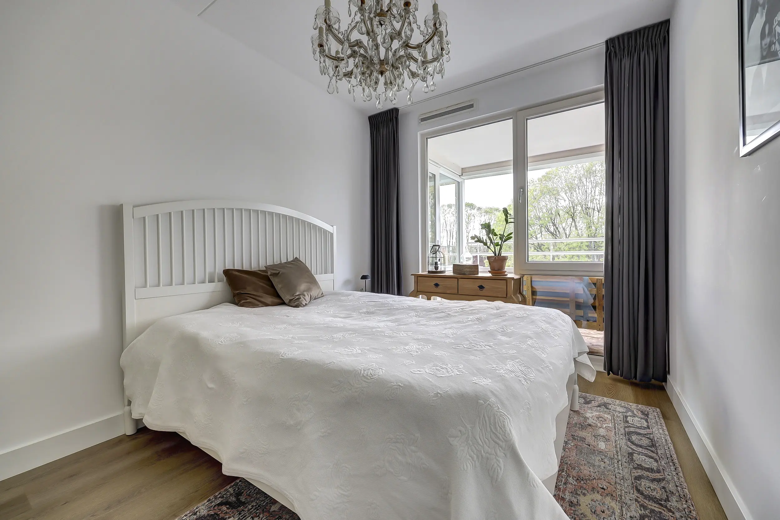 Aan de balkonzijde treft u 2 grote slaapkamers met raampartijen vanaf de grond tot aan het plafond.