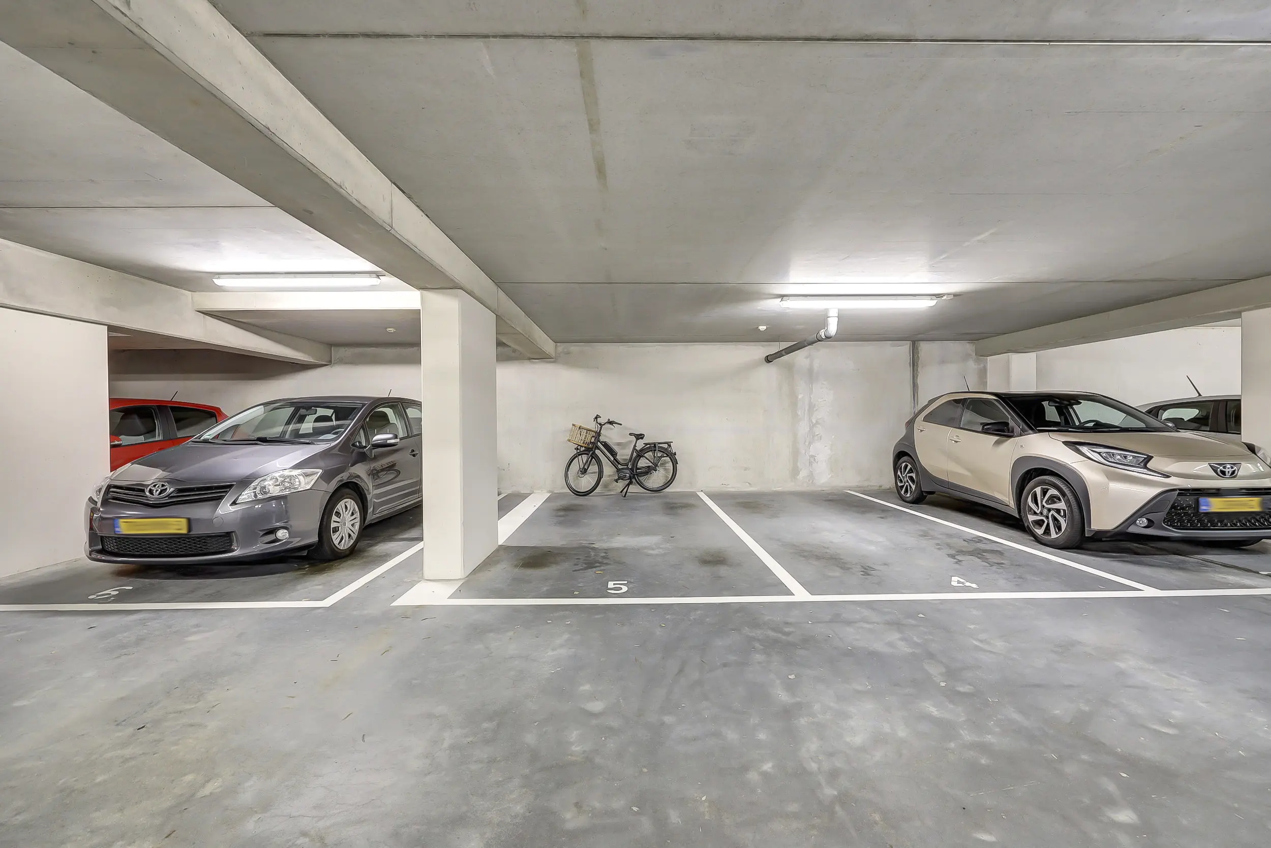 Het appartement heeft een eigen berging en een eigen parkeerplaats in de parkeerkelder. Verder is er een algemene ruimte waar u uw e-bike kan opladen.