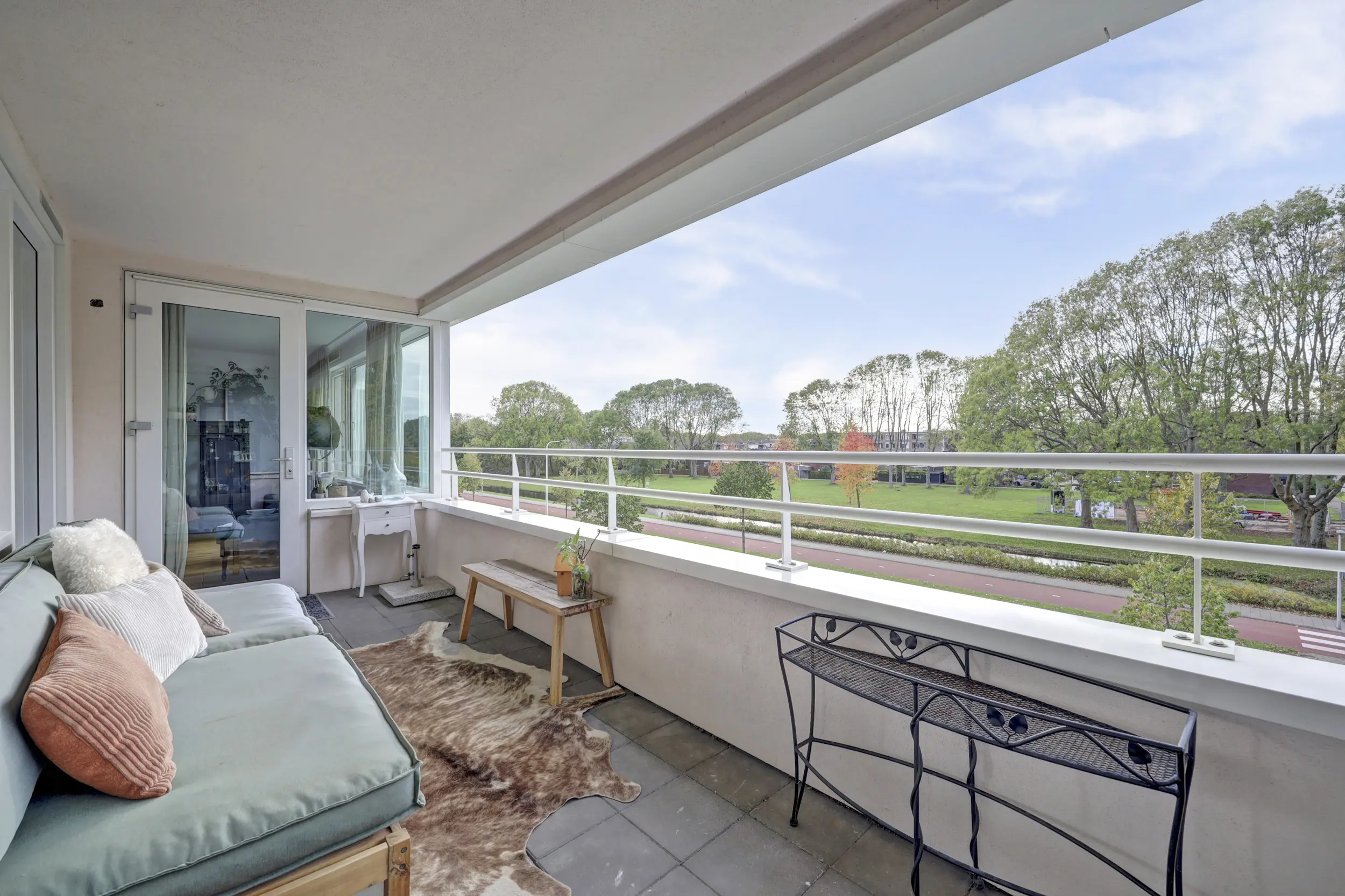 Vanaf het zonnige balkon op het westen ziet u de Schotse Hooglanders in het Hartelpark grazen.