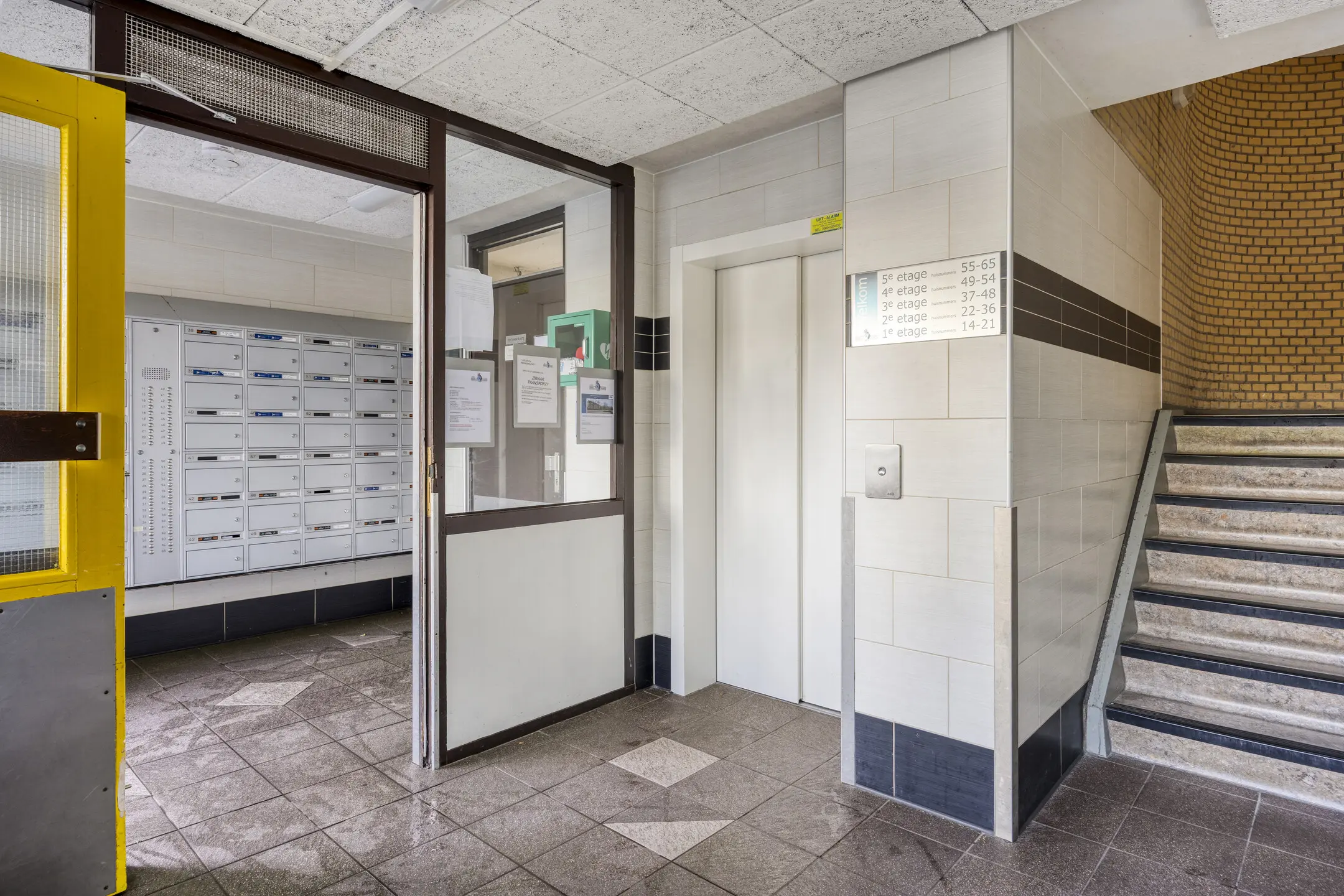Je komt het complex binnen in een afgesloten entree met de brievenbussen, lift en trappenhal.