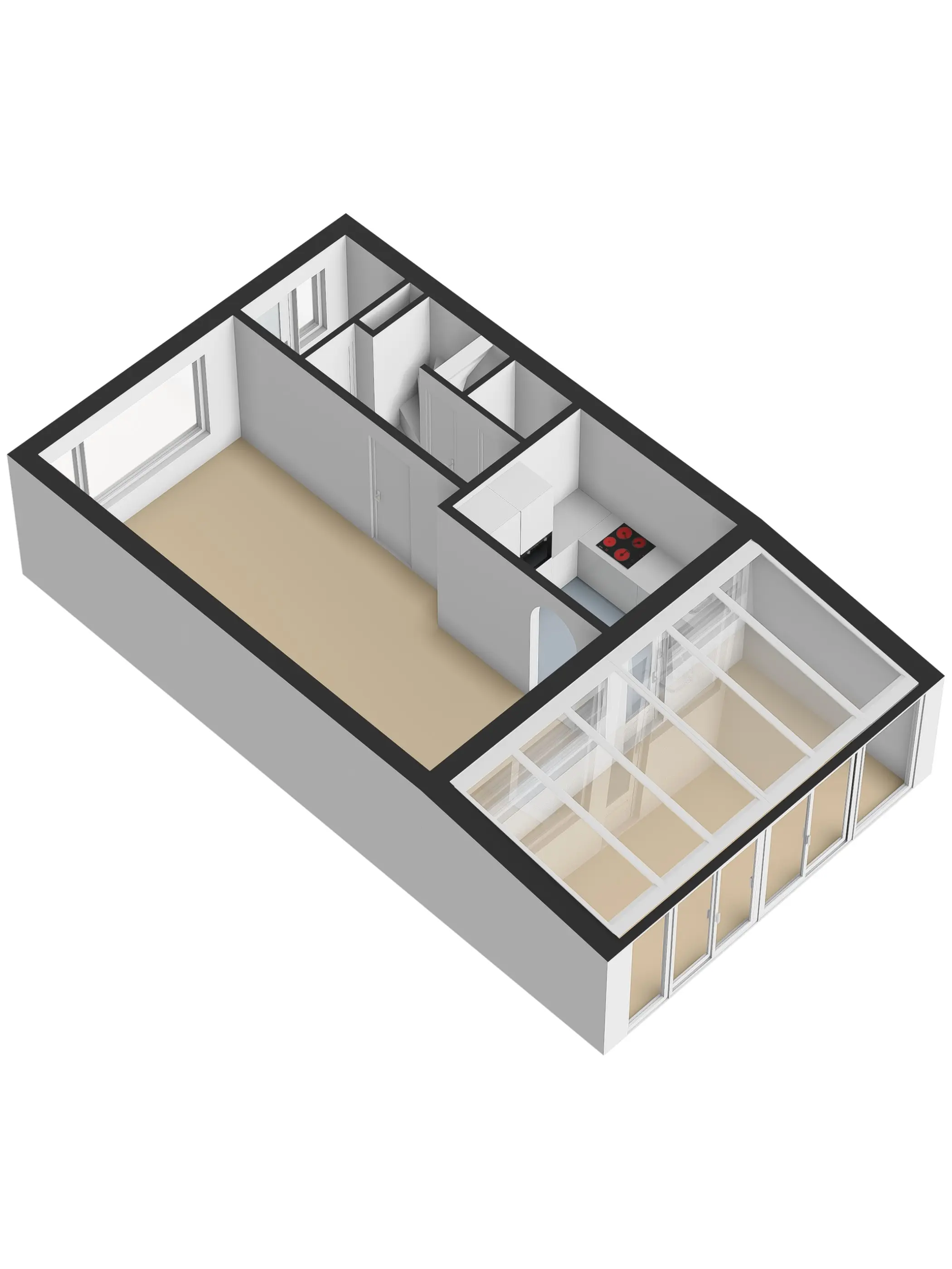 Aan de achterzijde is een luxe aluminium serre met glazen schuifdeuren geplaatst, deze combinatie van binnen- en buitenruimte is een verdere vergroting van het al aanwezige wooncomfort!