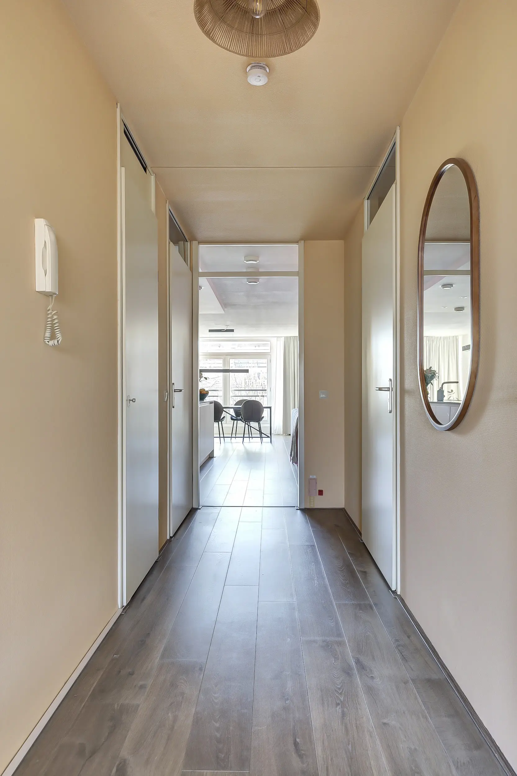 De woning is gelegen op de eerste verdieping en beschikt aan de voorzijde over een royaal terras van circa 17m2 , waar je heerlijk kunt zitten en genieten van het stadsleven. Bij binnenkomst tref je een ruime entree met meterkast en een modern toilet met fonteintje.