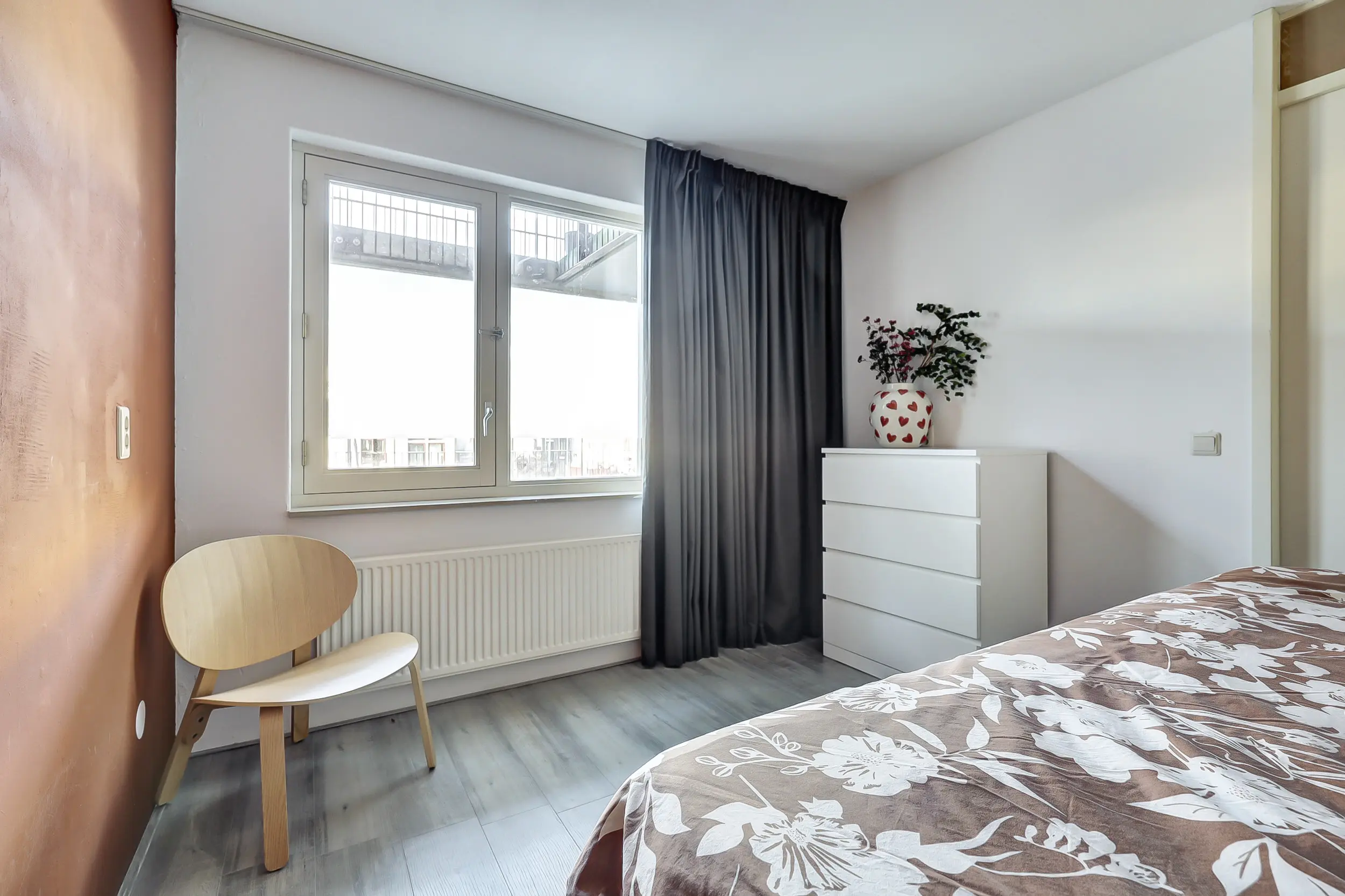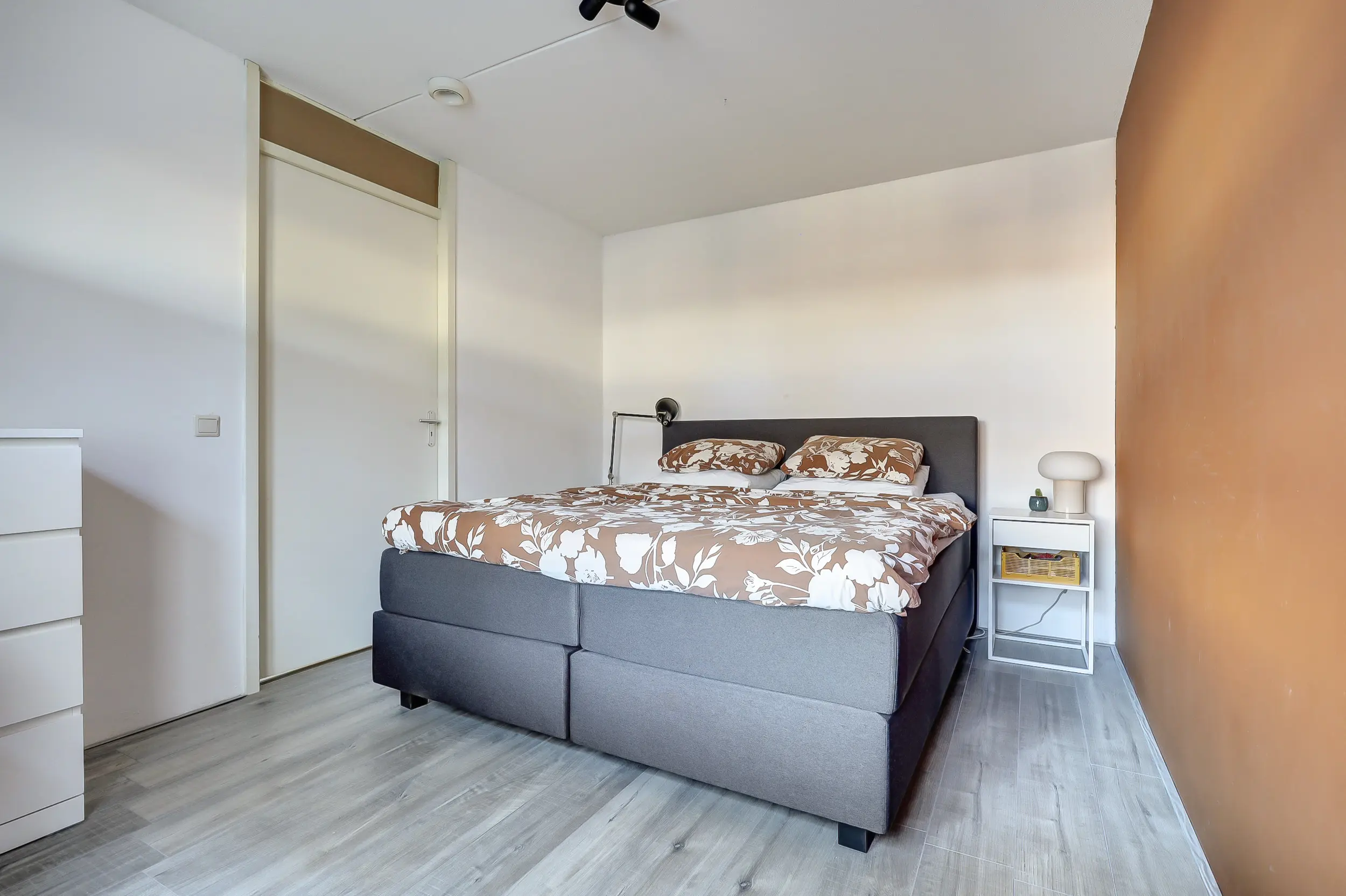 Het appartement beschikt over twee ruime slaapkamers. De modern uitgevoerde badkamer is voorzien van een comfortabele inloopdouche, een stijlvol wastafelmeubel en een designradiator. Daarnaast is er een praktische bijkeuken met wasmachineaansluiting, CV-opstelling (Ferroli, 2021), WTW-installatie en mechanische ventilatie.