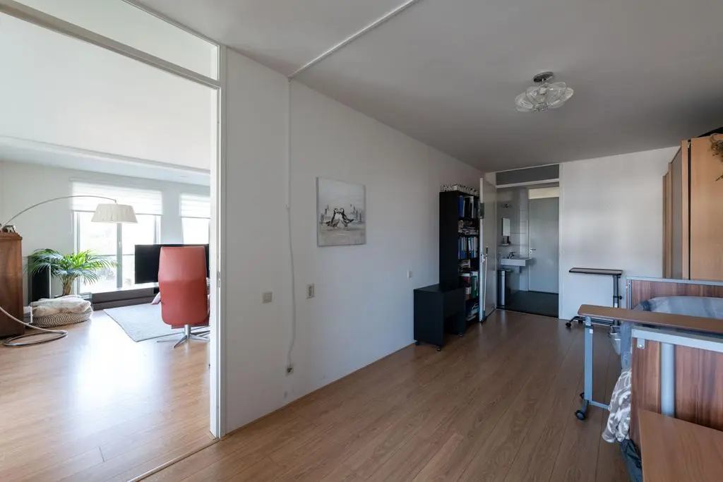 installatie en de 1e slaapkamer. welke momenteel in gebruik is als logeerkamer, maar ook prima als kantoor ingezet kan worden met uitzicht op het pleintje bij Stuifakkers.
