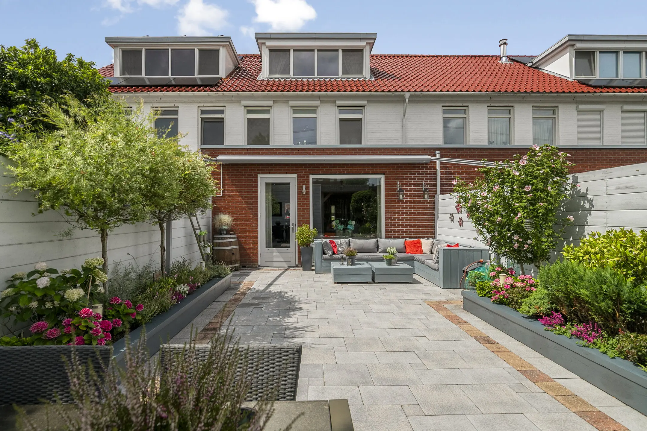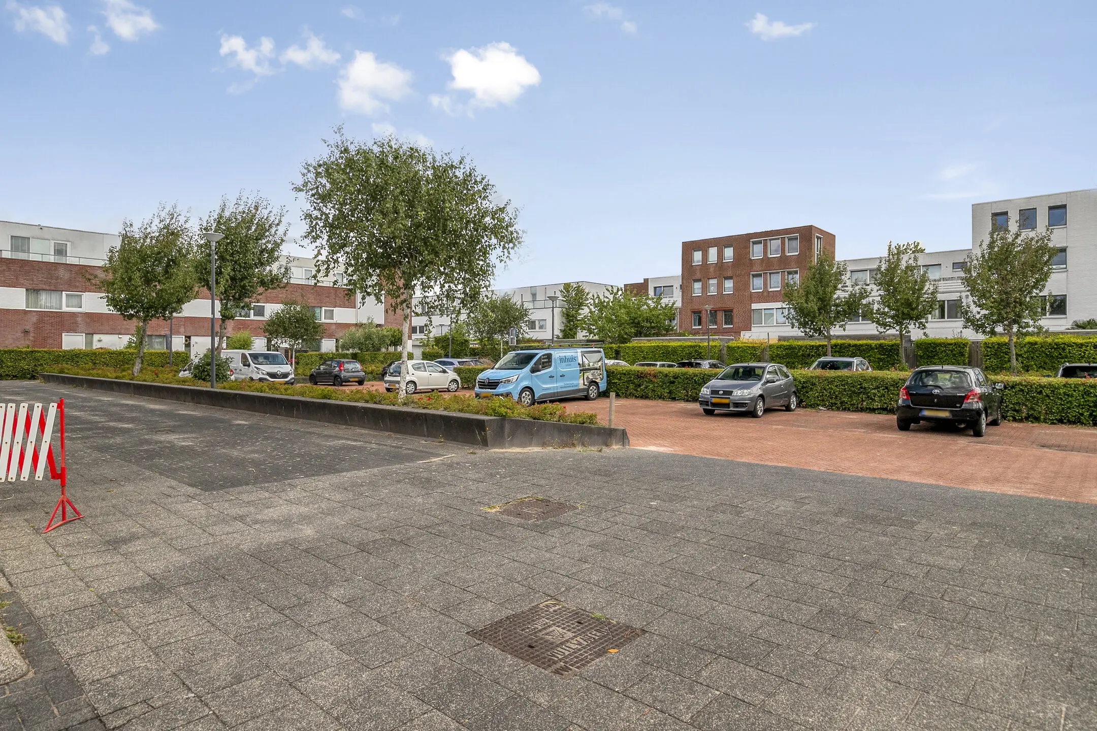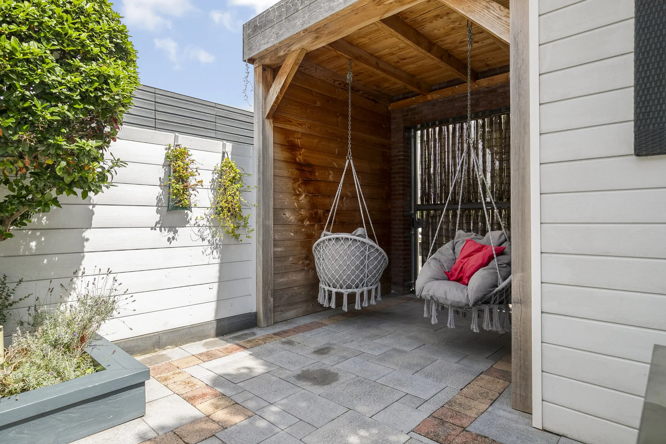 Nette voortuin (west) met vaste beplanting. In de nabije omgeving van de woning is voldoende gratis parkeergelegenheid. De op het oosten gelegen achtertuin is onderhoudsvriendelijk aangelegd, hier is een buitenkraan, achterpoort en een berging geïsoleerd en voorzien van onderhoudsvrije Werzaliete delen aanwezig. Het (rood/grijs) gestreepte elektrische zonnescherm houdt de zon uit de woonkamer.