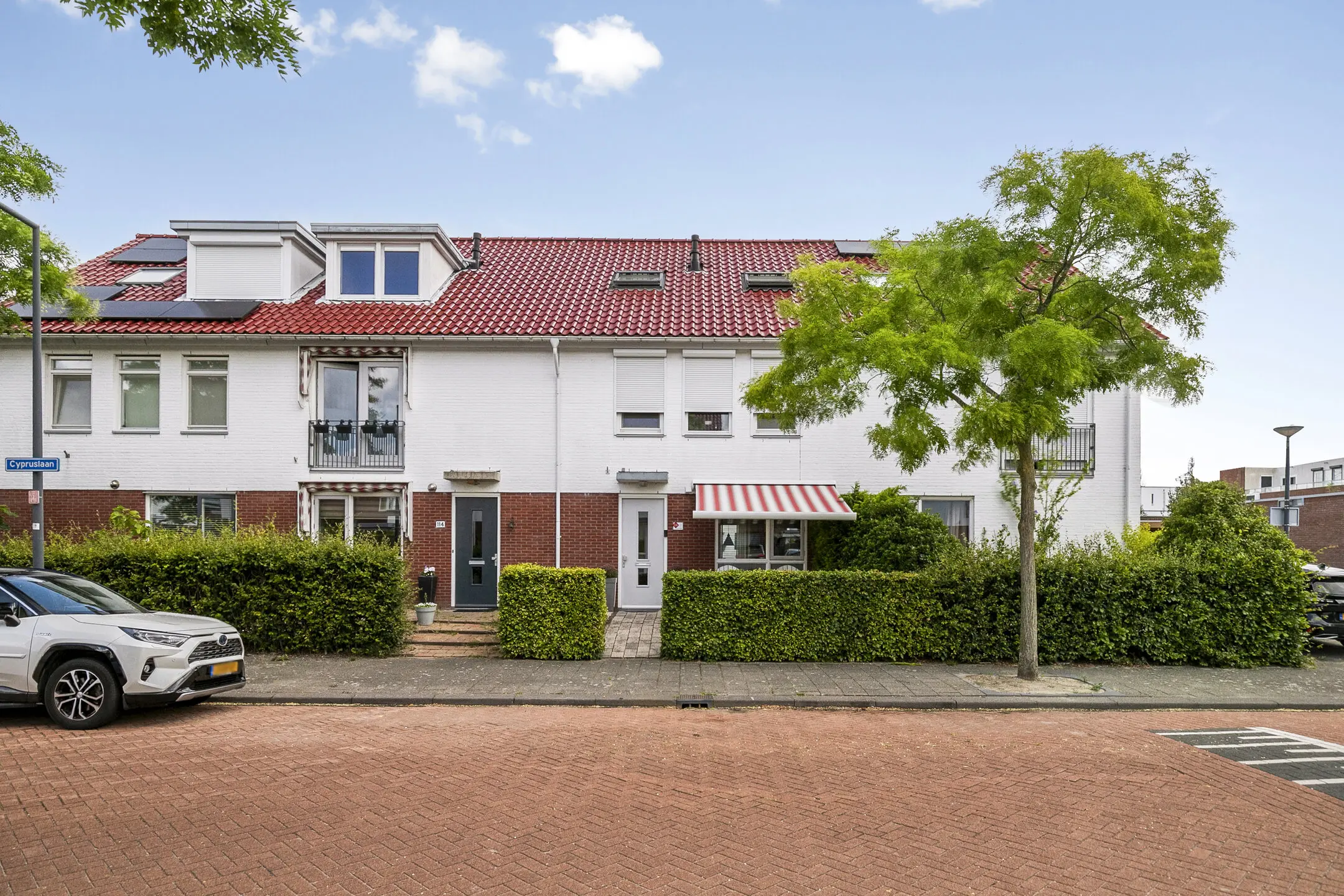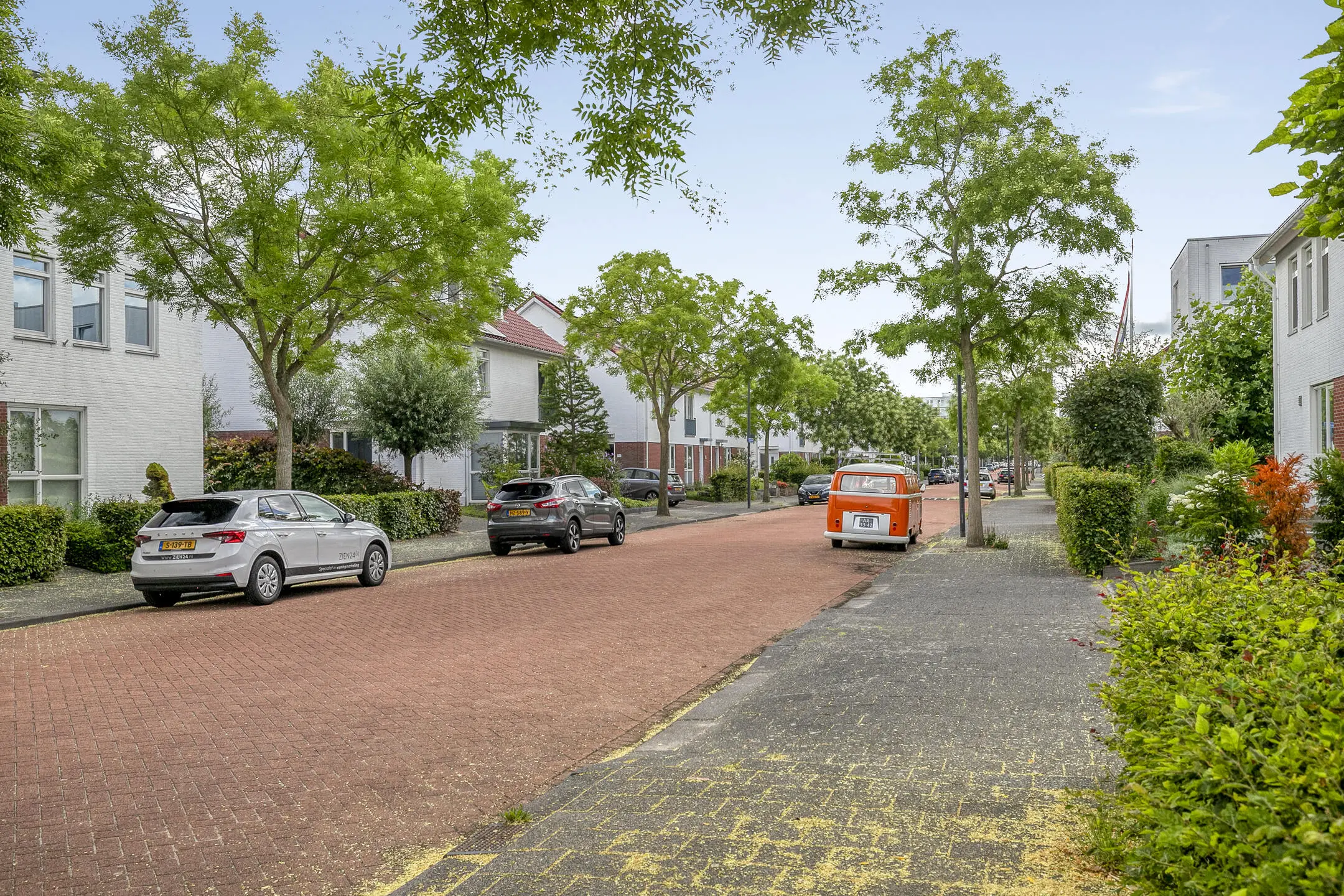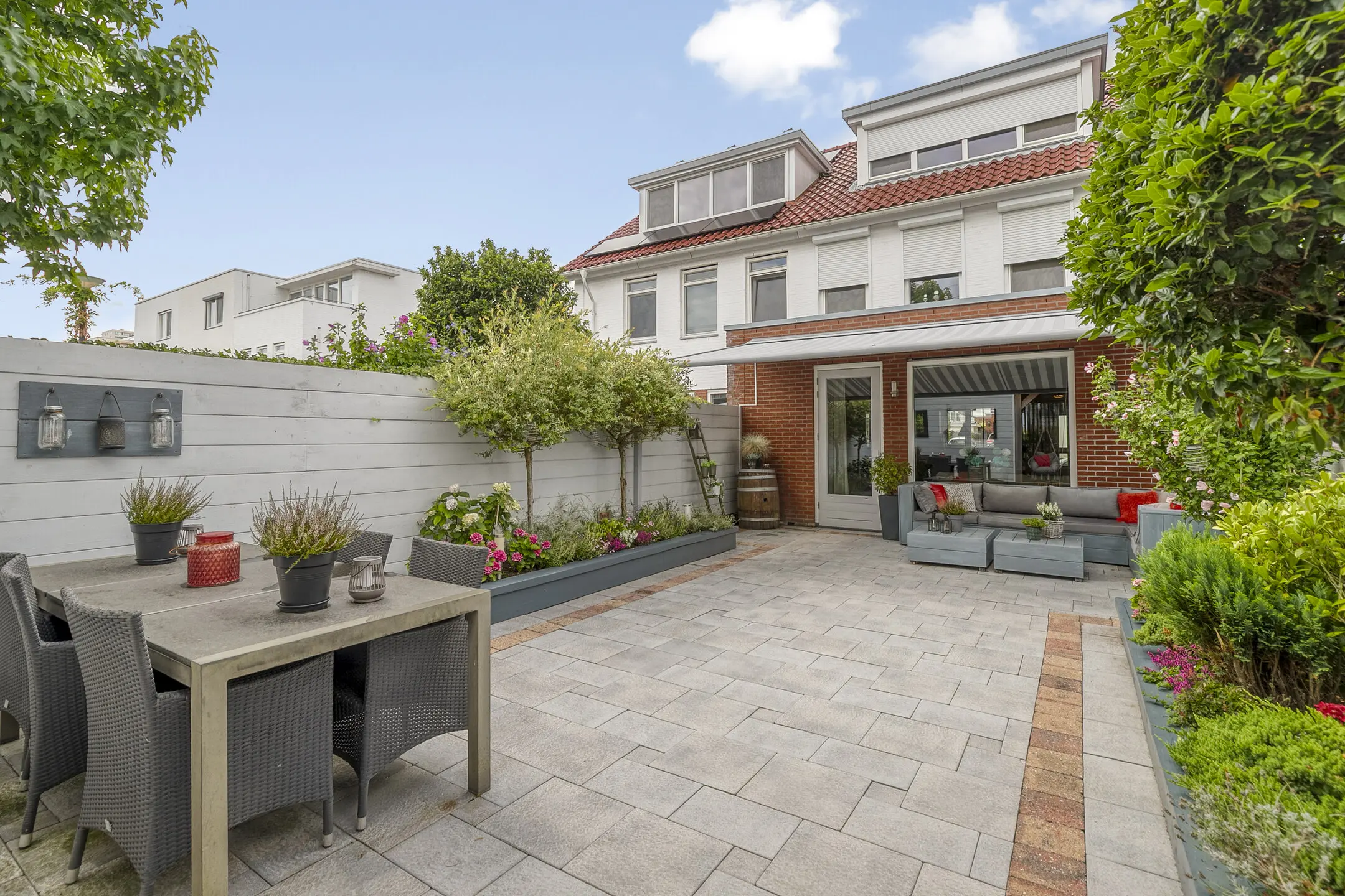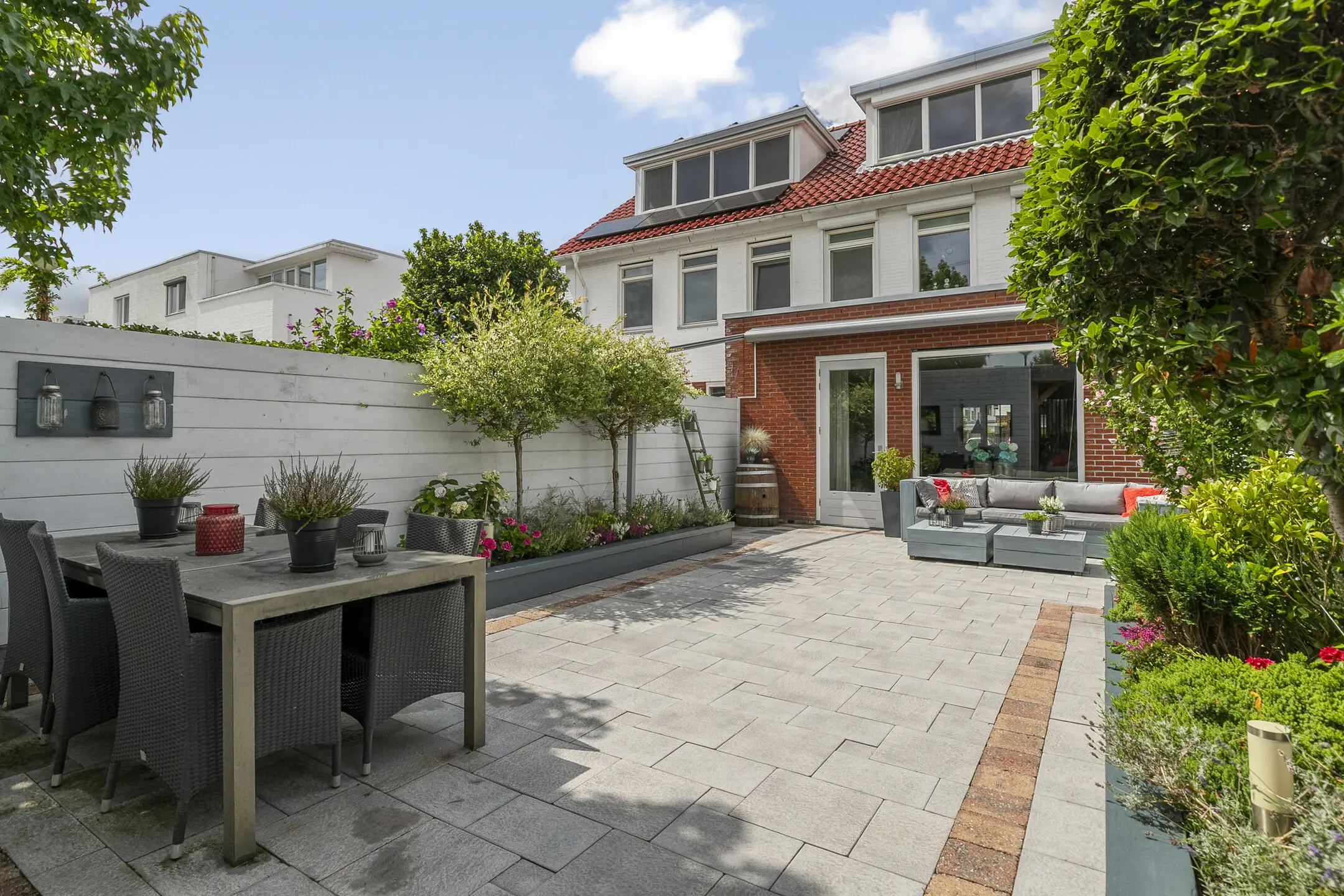 Nette voortuin (west) met vaste beplanting. In de nabije omgeving van de woning is voldoende gratis parkeergelegenheid. De op het oosten gelegen achtertuin is onderhoudsvriendelijk aangelegd, hier is een buitenkraan, achterpoort en een berging geïsoleerd en voorzien van onderhoudsvrije Werzaliete delen aanwezig. Het (rood/grijs) gestreepte elektrische zonnescherm houdt de zon uit de woonkamer.