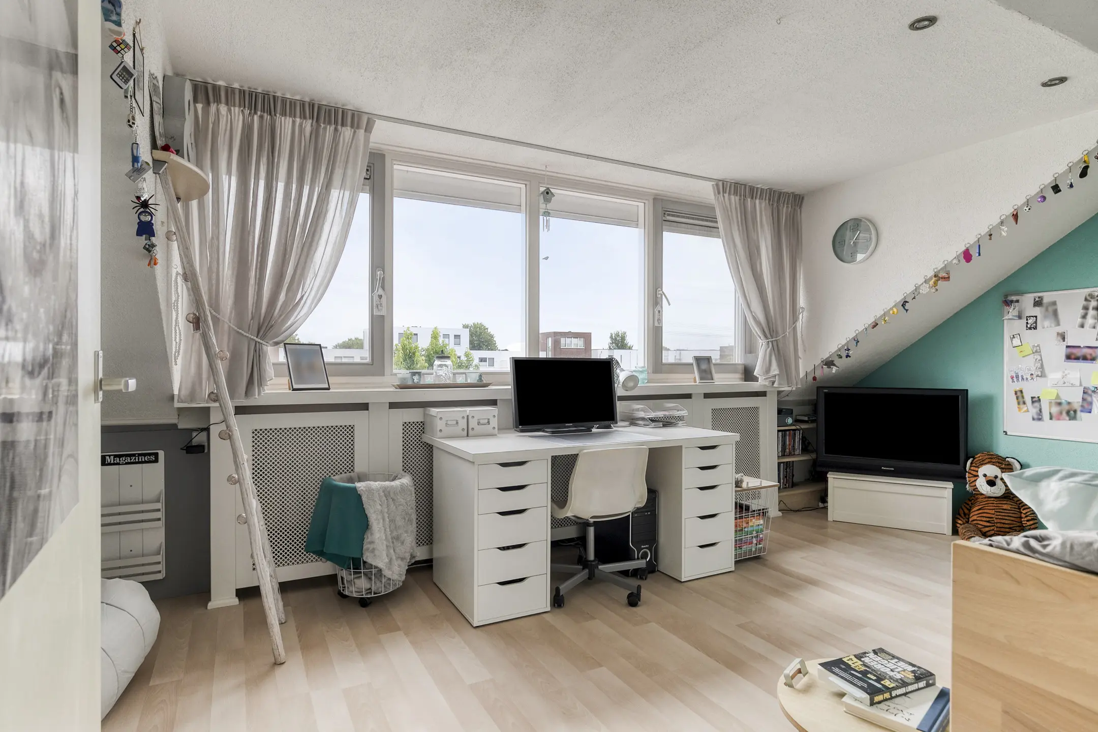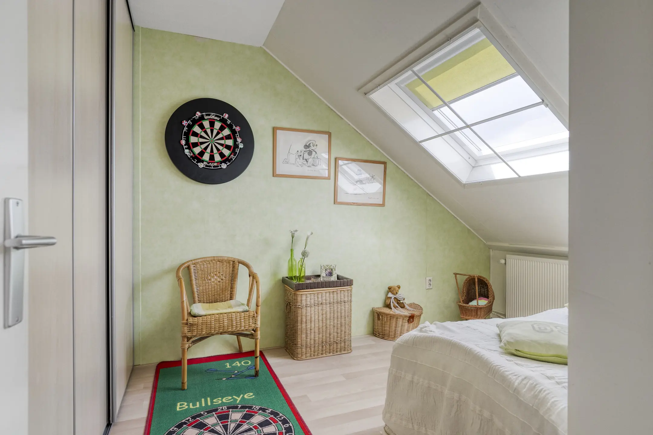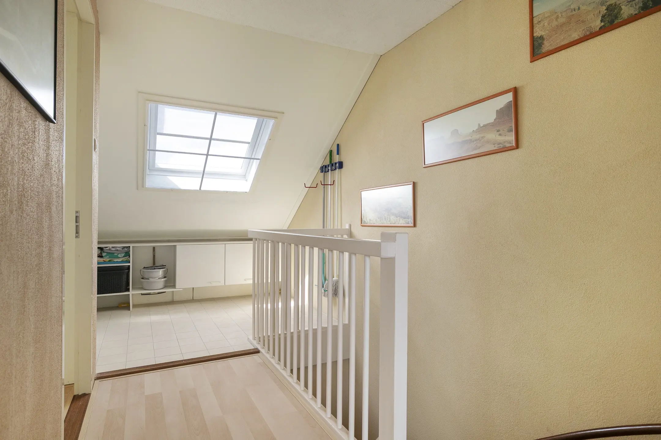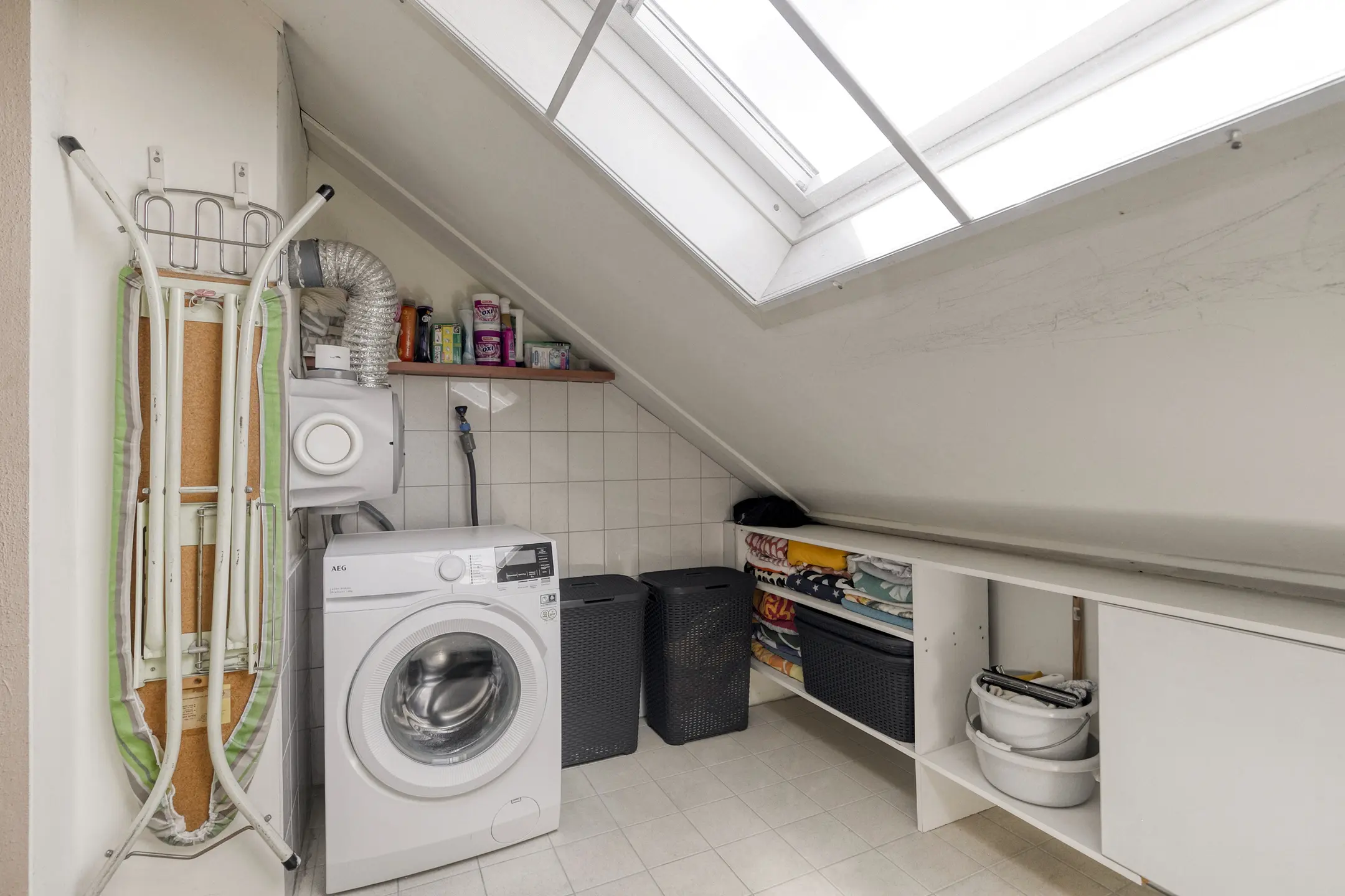 Middels een dichte trap is de royale voorzolder bereikbaar, deze ruimte is erg licht door het dakraam. Op de voorzolder zijn de mechanische ventilatie unit en de aansluiting voor de wasmachine aanwezig. Een luik met vlizotrap biedt toegang tot de vliering met veel bergruimte. Riante slaapkamer over de gehele breedte van de woning met schuifkast en grote houten dakkapel (met elektrisch rolluik) aan de achterzijde van het huis. De tweede slaapkamer heeft een dakraam en eveneens een schuifkast. Op deze verdieping ligt dezelfde laminaatvloer als op de 1e verdieping.