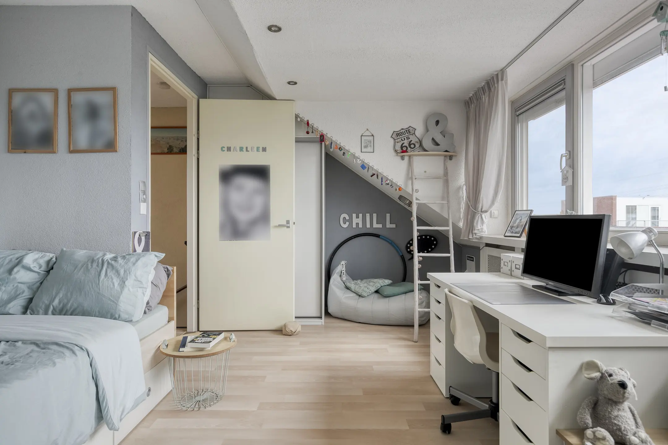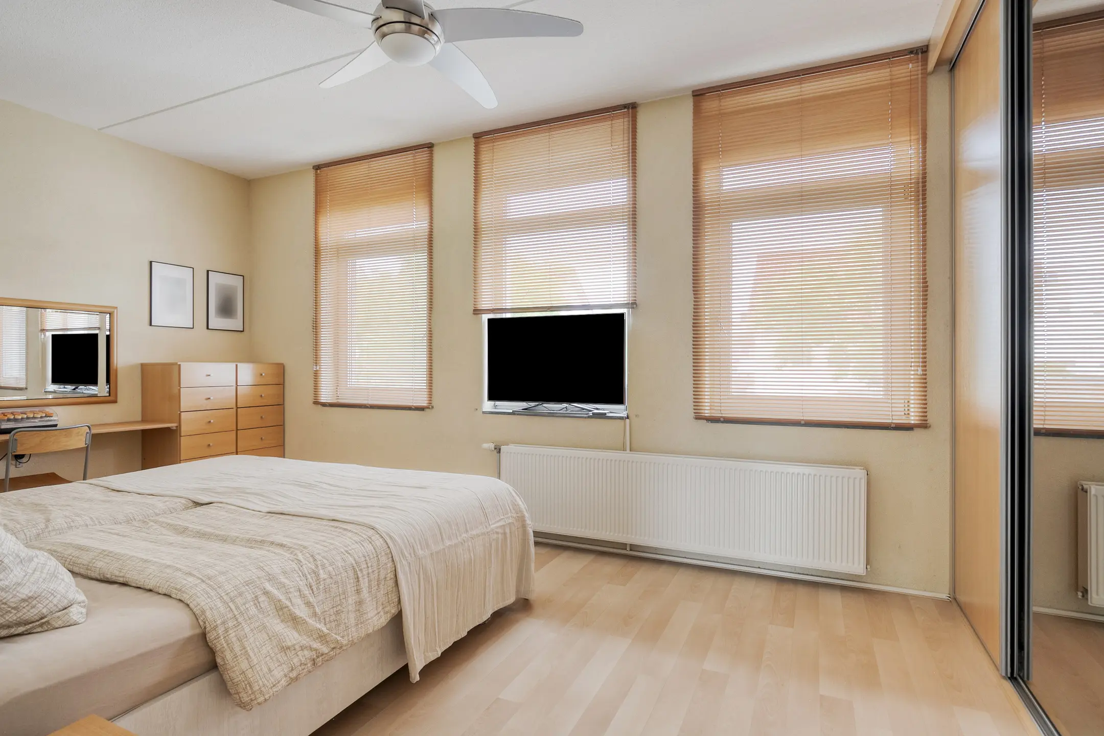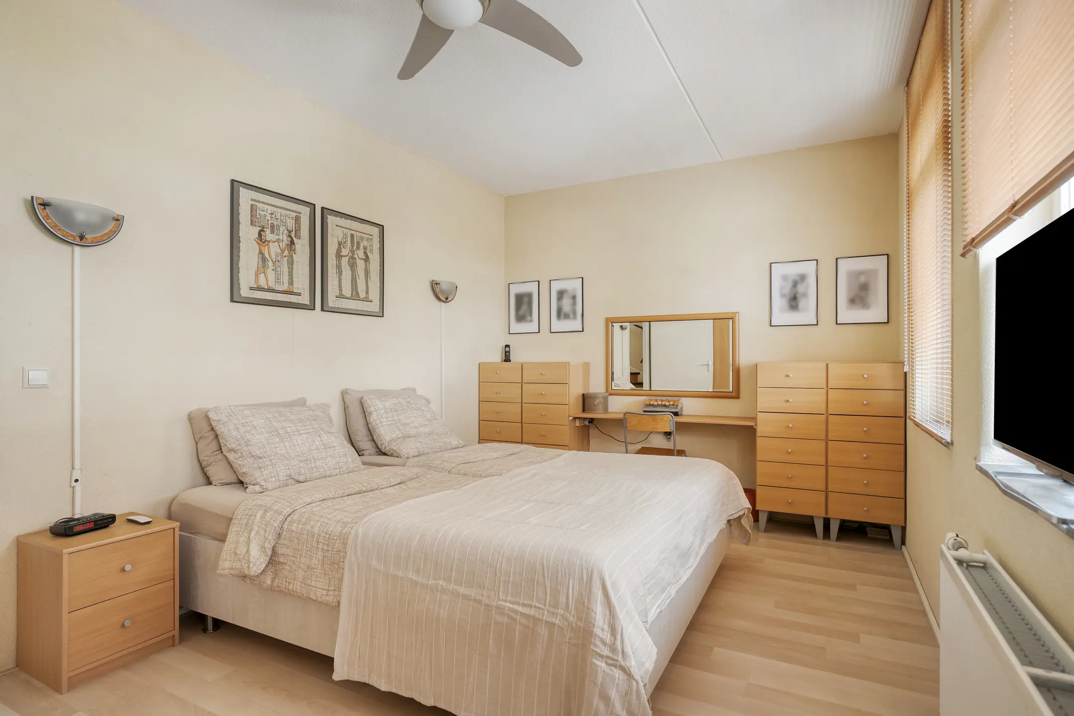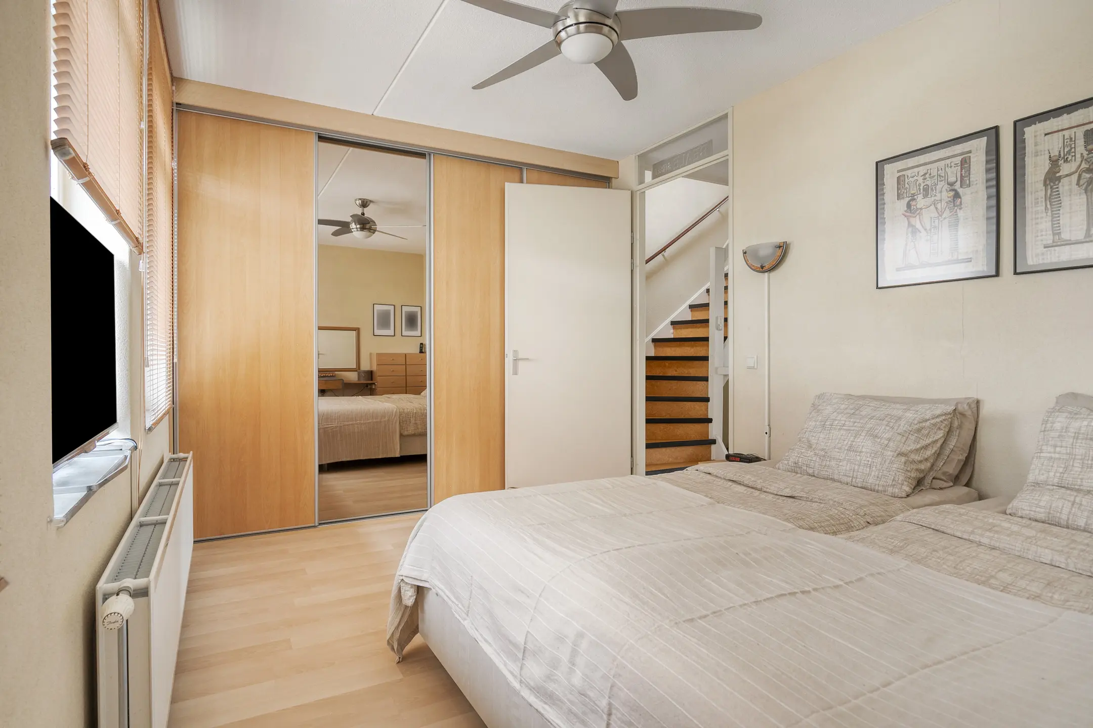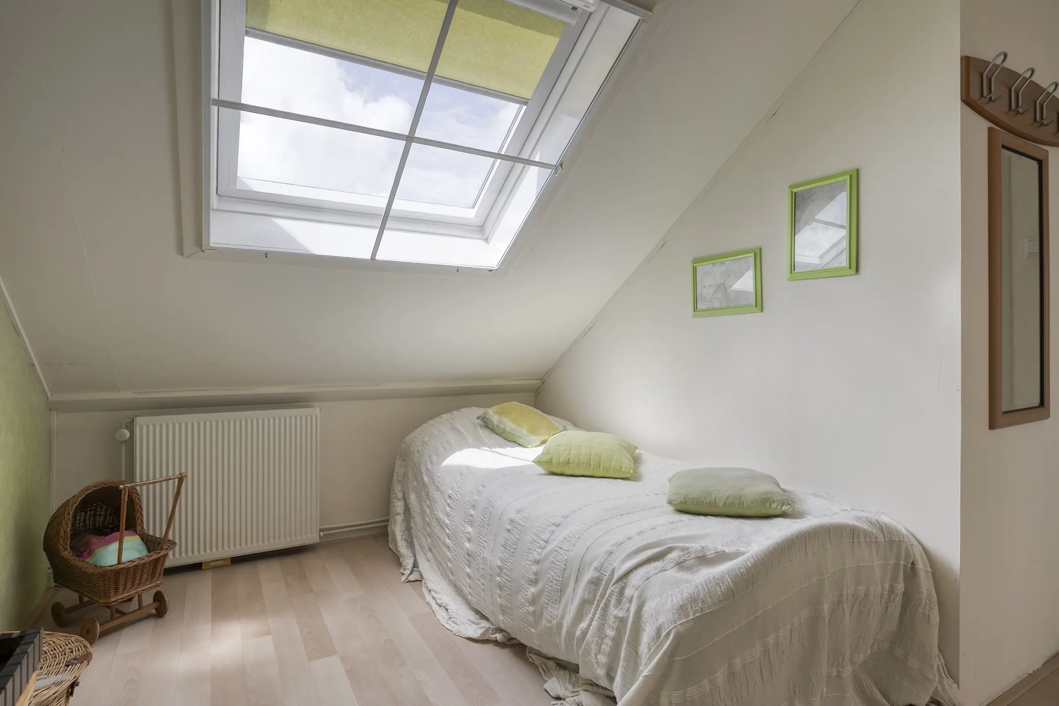 Middels een dichte trap is de royale voorzolder bereikbaar, deze ruimte is erg licht door het dakraam. Op de voorzolder zijn de mechanische ventilatie unit en de aansluiting voor de wasmachine aanwezig. Een luik met vlizotrap biedt toegang tot de vliering met veel bergruimte. Riante slaapkamer over de gehele breedte van de woning met schuifkast en grote houten dakkapel (met elektrisch rolluik) aan de achterzijde van het huis. De tweede slaapkamer heeft een dakraam en eveneens een schuifkast. Op deze verdieping ligt dezelfde laminaatvloer als op de 1e verdieping.