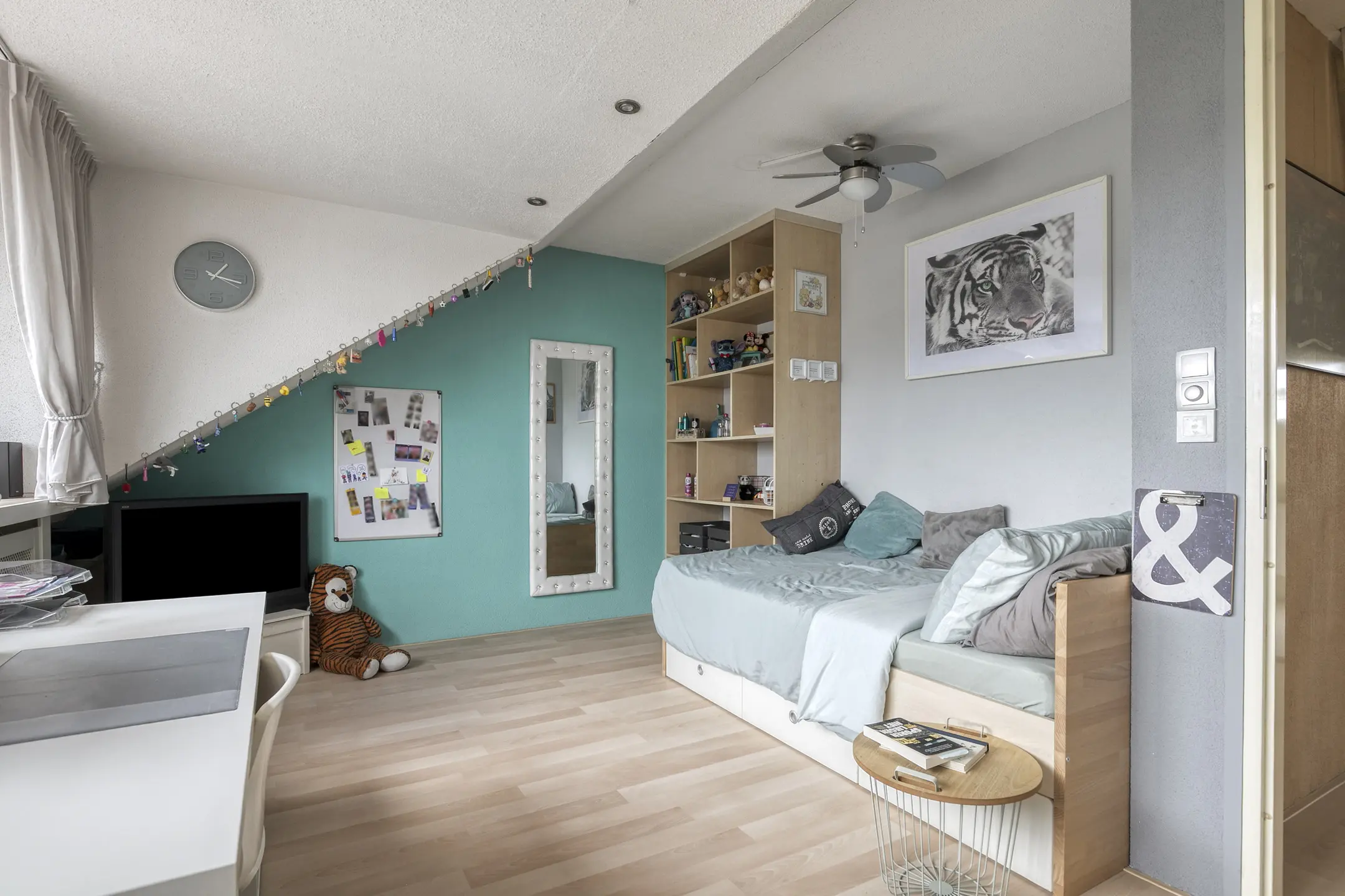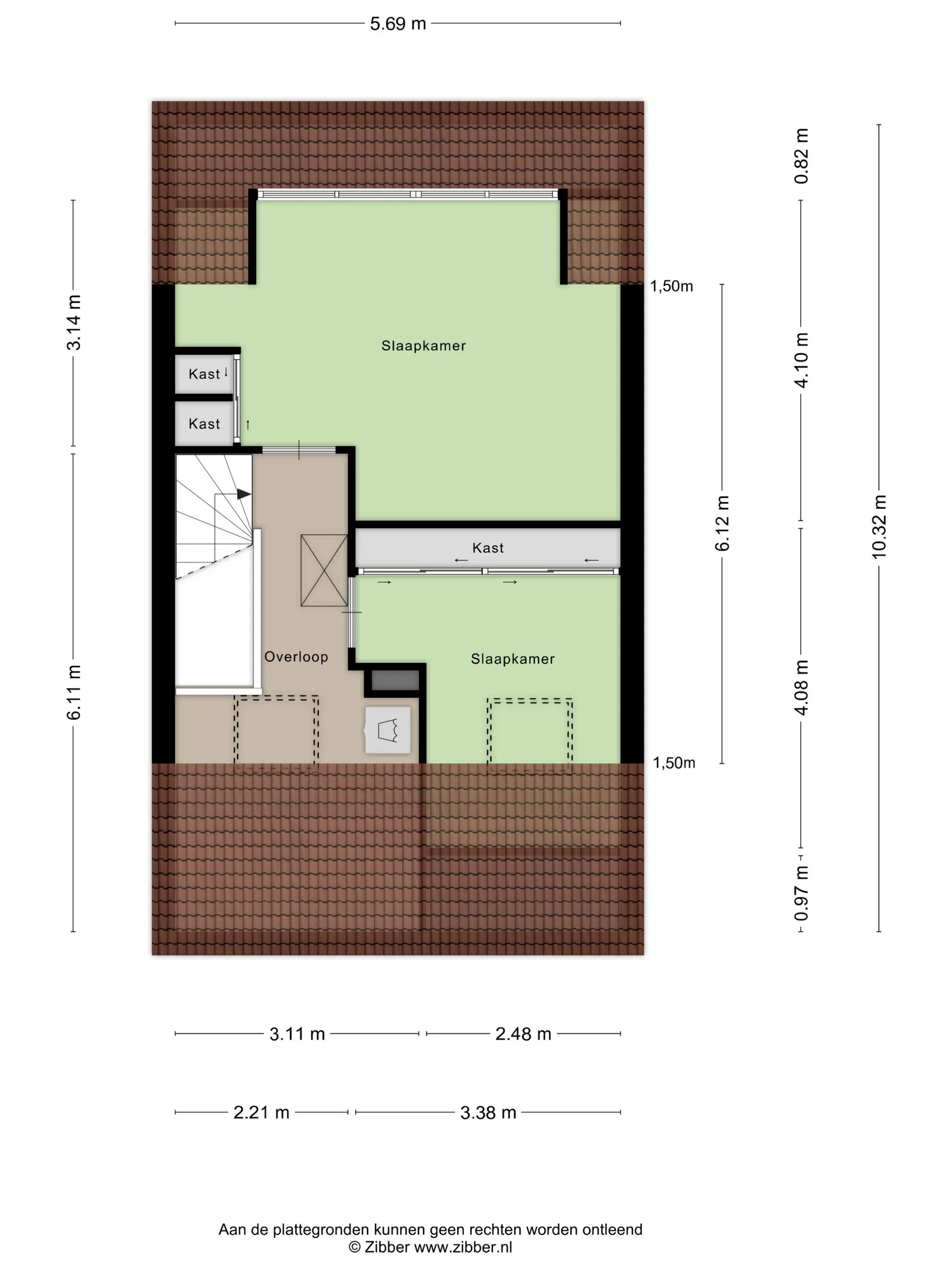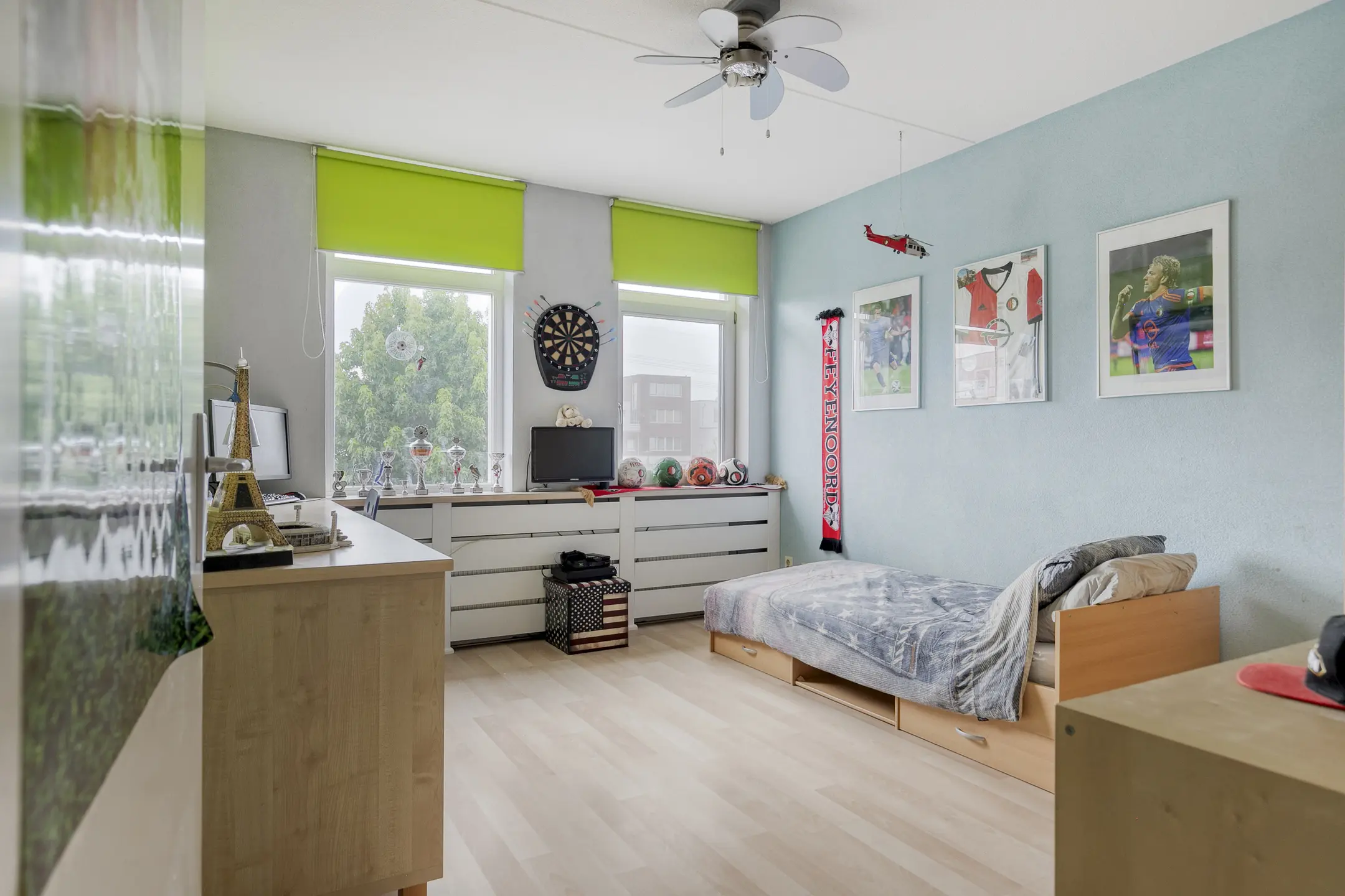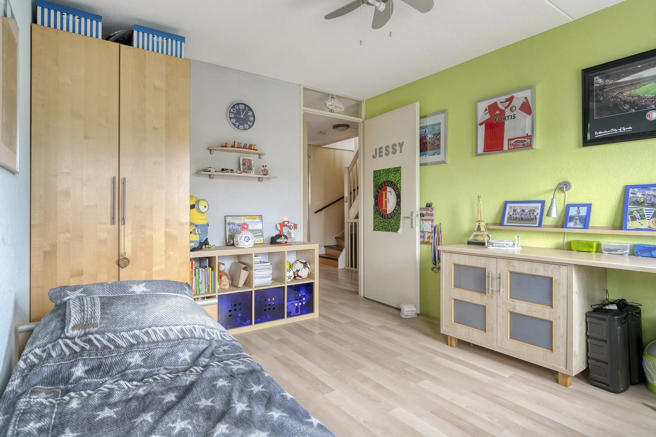 Middels een dichte trap is de royale voorzolder bereikbaar, deze ruimte is erg licht door het dakraam. Op de voorzolder zijn de mechanische ventilatie unit en de aansluiting voor de wasmachine aanwezig. Een luik met vlizotrap biedt toegang tot de vliering met veel bergruimte. Riante slaapkamer over de gehele breedte van de woning met schuifkast en grote houten dakkapel (met elektrisch rolluik) aan de achterzijde van het huis. De tweede slaapkamer heeft een dakraam en eveneens een schuifkast. Op deze verdieping ligt dezelfde laminaatvloer als op de 1e verdieping.