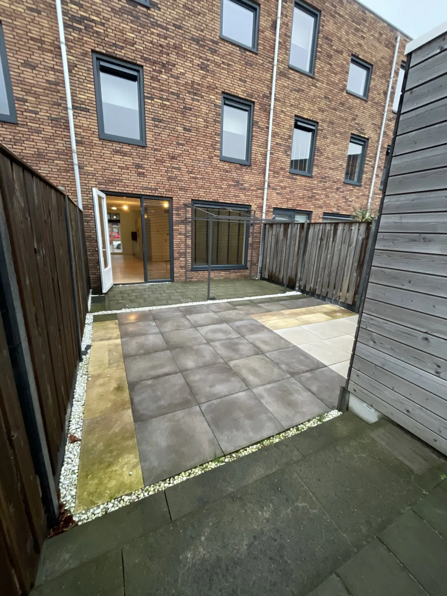 Iedere woning heeft een ruimte tuin, vanuit de woonkamer met deur bereikbaar. De tuin met schuur is gelegen op het zuiden en geeft o.a. toegang tot het binnenterrein.