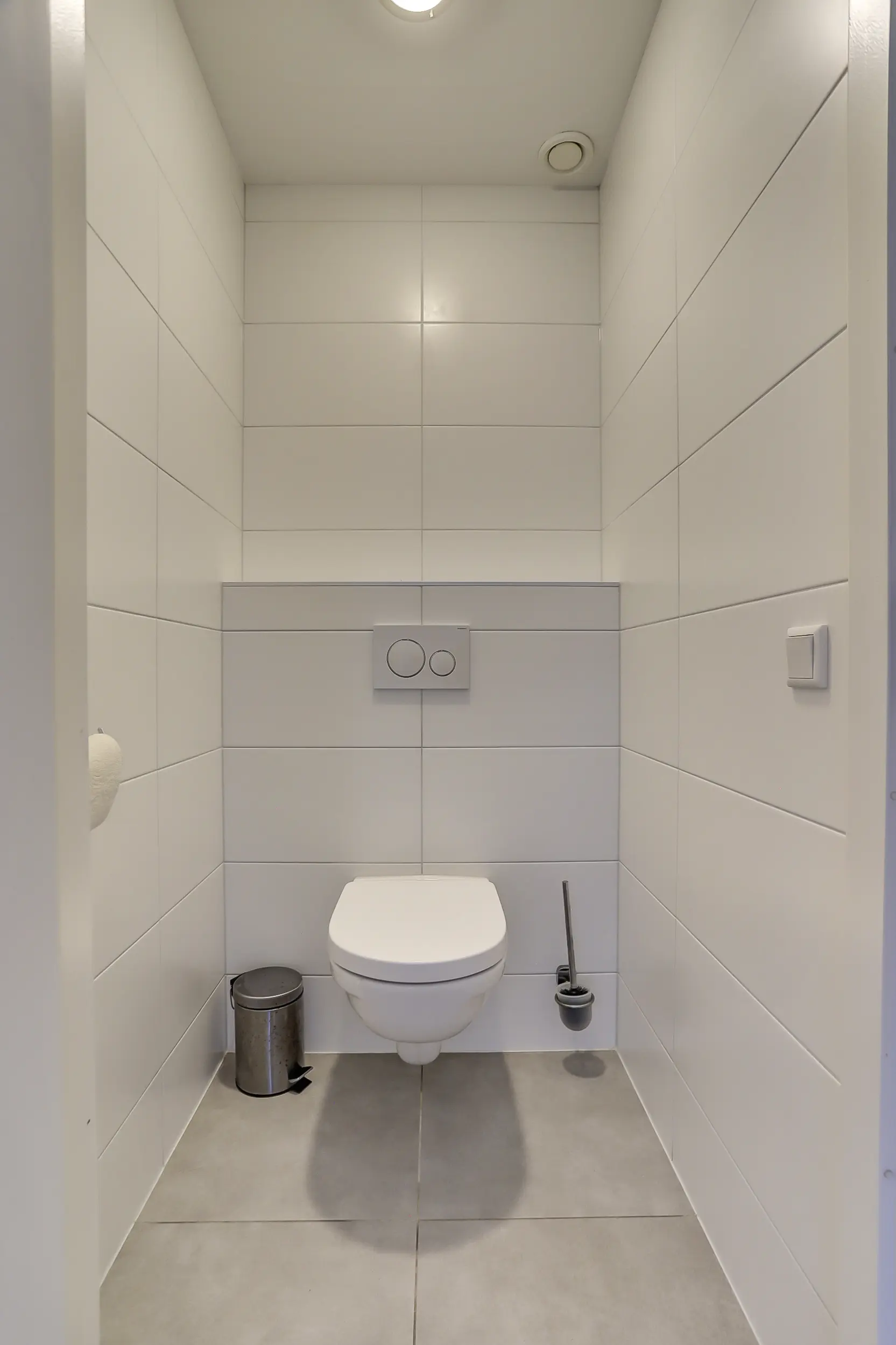 Op deze verdieping bevinden zich verder een separaat toilet en een volledig betegelde badkamer, voorzien van een douche, wastafelmeubel, radiator en aansluiting voor de wasmachine.