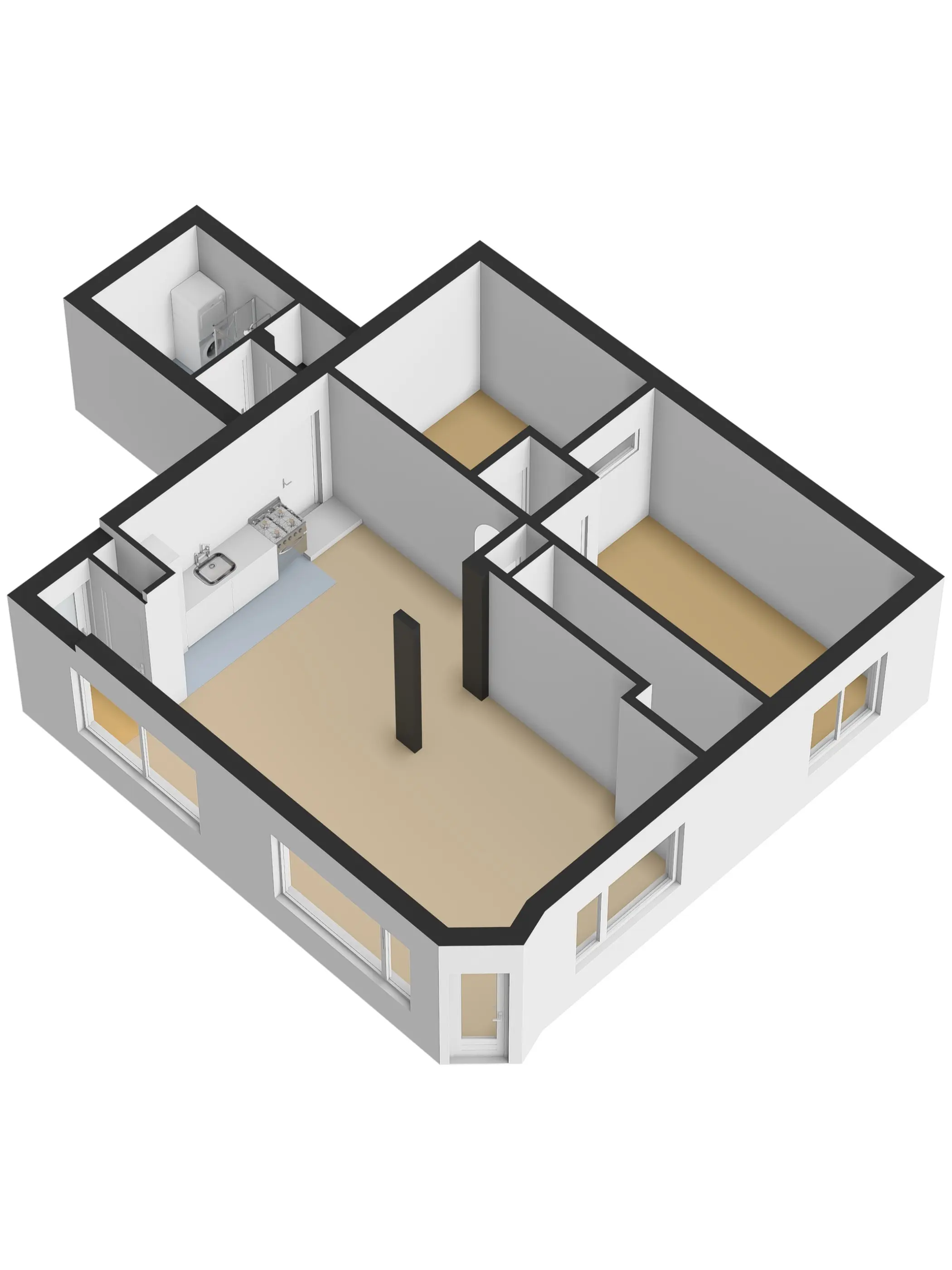 Aan de achterzijde van de woning bevinden zich twee kamers. De achterste kamer is voorzien van een lichtstraat, waardoor er extra daglicht naar binnen valt en de kamer een aangename, lichte uitstraling heeft.
