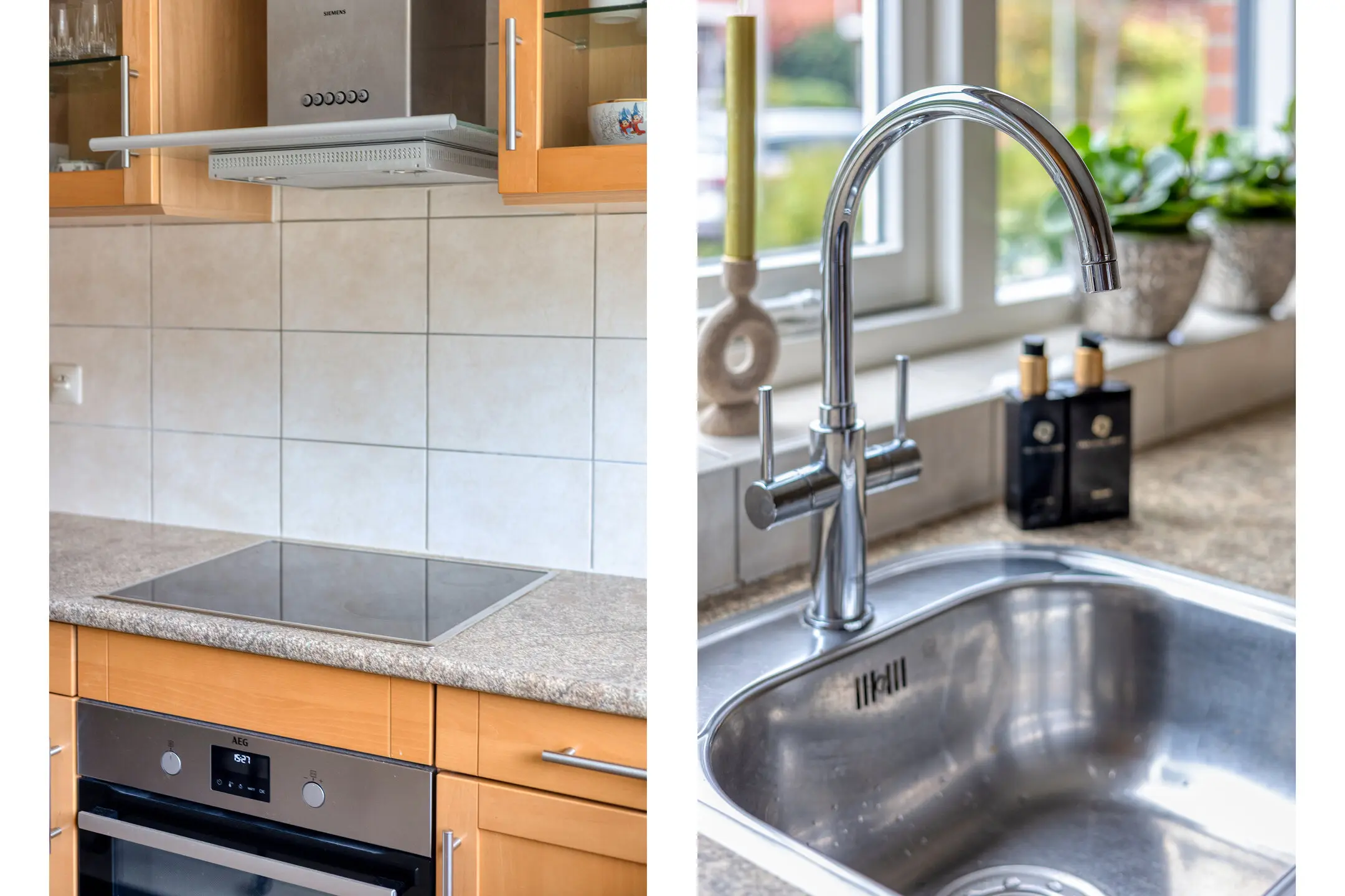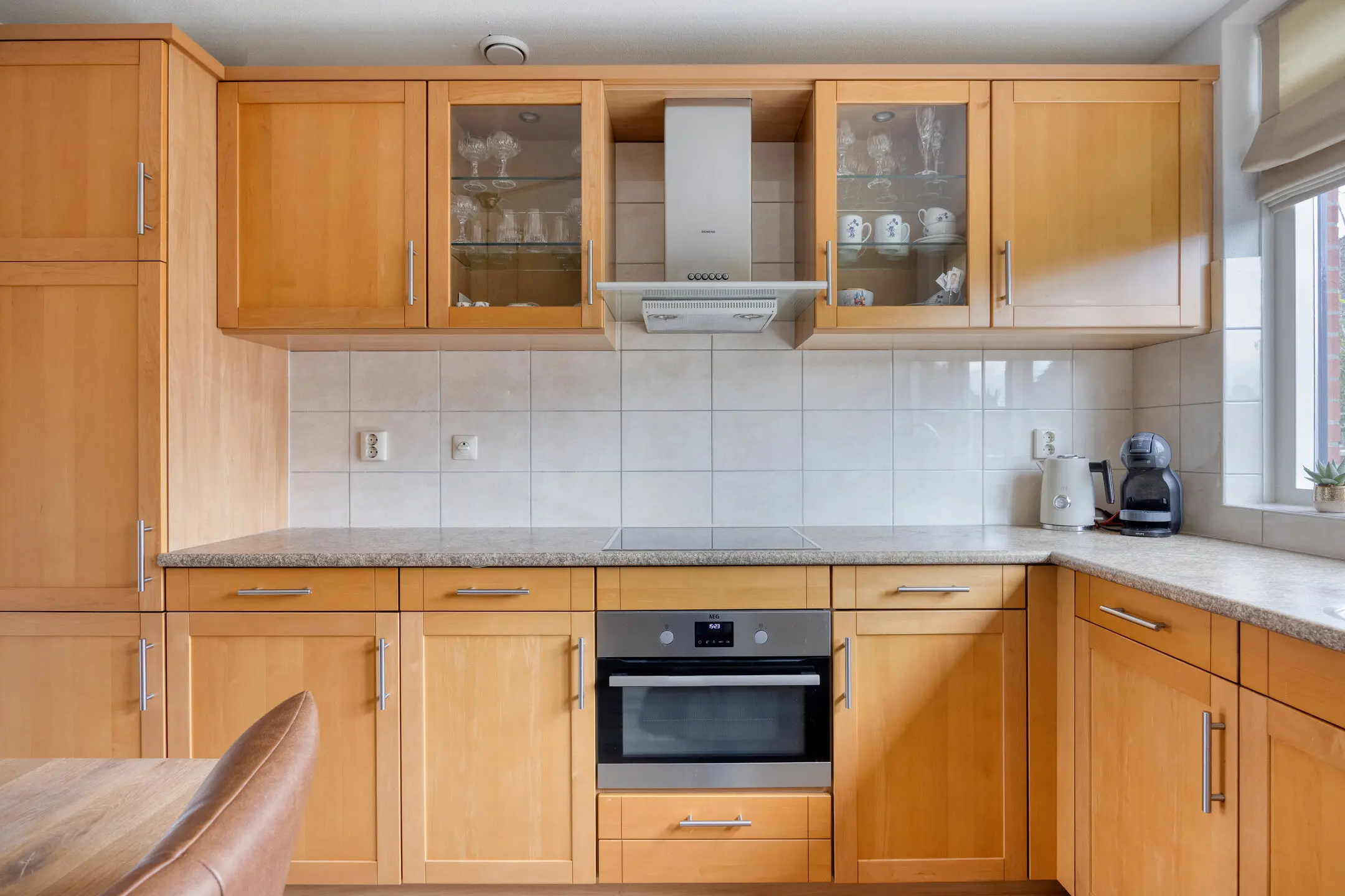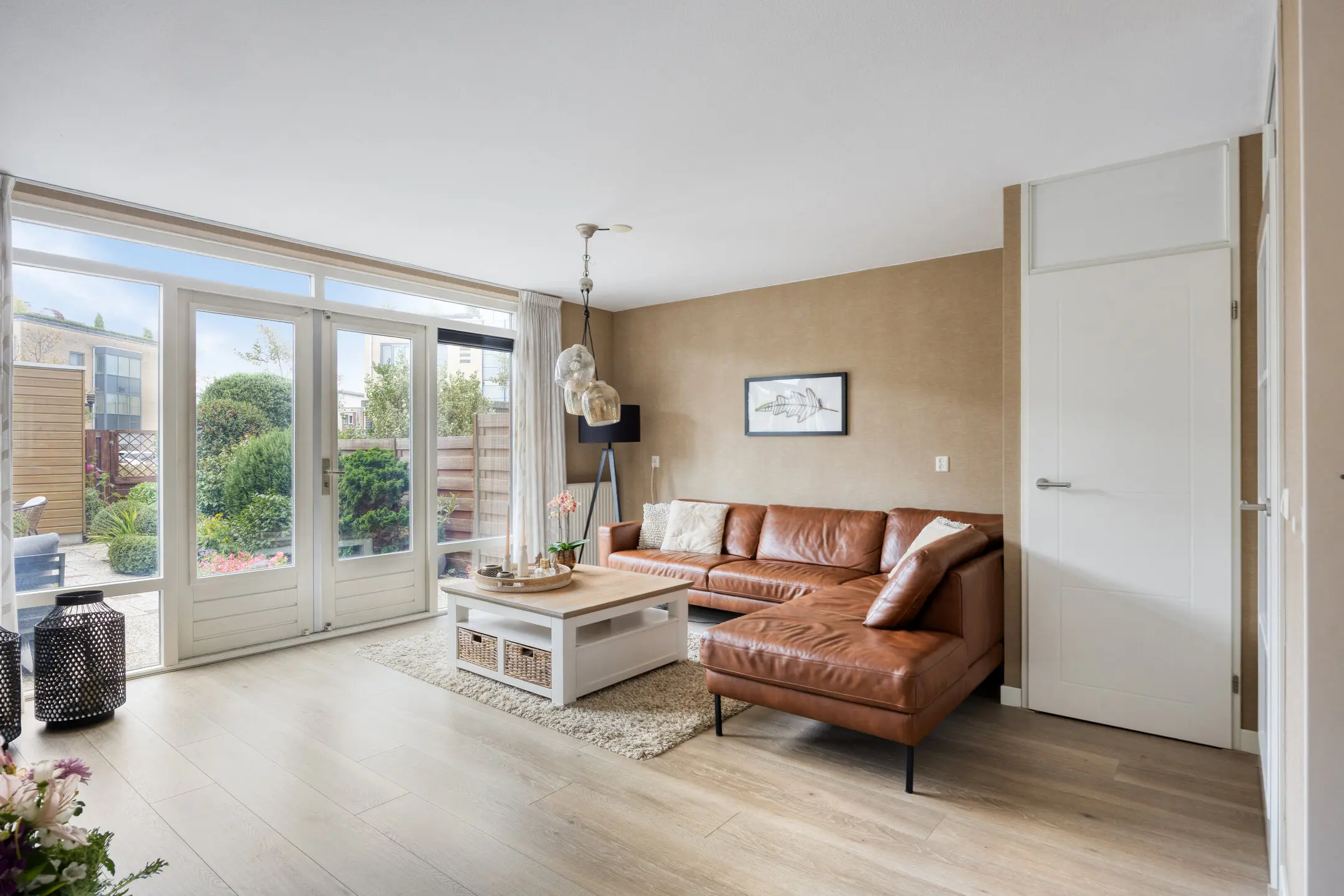 Entree, hal met meterkast en trapopgang. De geheel in lichte kleurstelling betegelde toiletruimte is gemoderniseerd in maart 2025. en is uitgerust met een wandcloset en fonteintje. Via een deur met glas inzet is de living bereikbaar, bestaande uit een open keuken aan de voorzijde en een tuingerichte woonkamer. De keuken is geplaatst in L-opstelling en is voorzien van een keramische kookplaat, RVS afzuigkap, vaatwasmachine, koel-/vriescombinatie, combi-oven en spoelbak onder het raam. In de gezellige woonkamer is een praktische trapkast aanwezig en de openslaande deuren geven toegang tot de achtertuin.