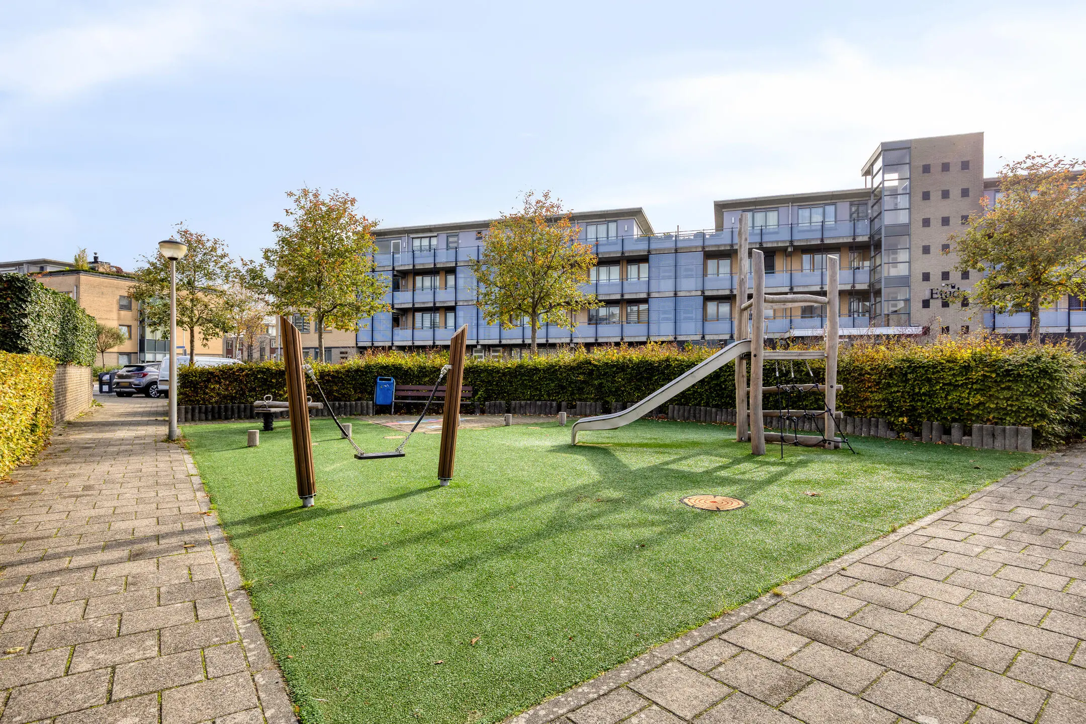 Op het noordwesten gelegen voortuin met buitenkraan en vaste beplanting. De verzorgde achtertuin heeft eveneens een buitenkraan en is bereikbaar vanuit de woonkamer en via de achterpoort. De achtertuin ligt op het zuidoosten en is eveneens aangelegd met vaste beplanting en er is een berging aanwezig met elektra. Het gestreepte zonnescherm (handmatige bediening) houdt de zon uit de woonkamer.