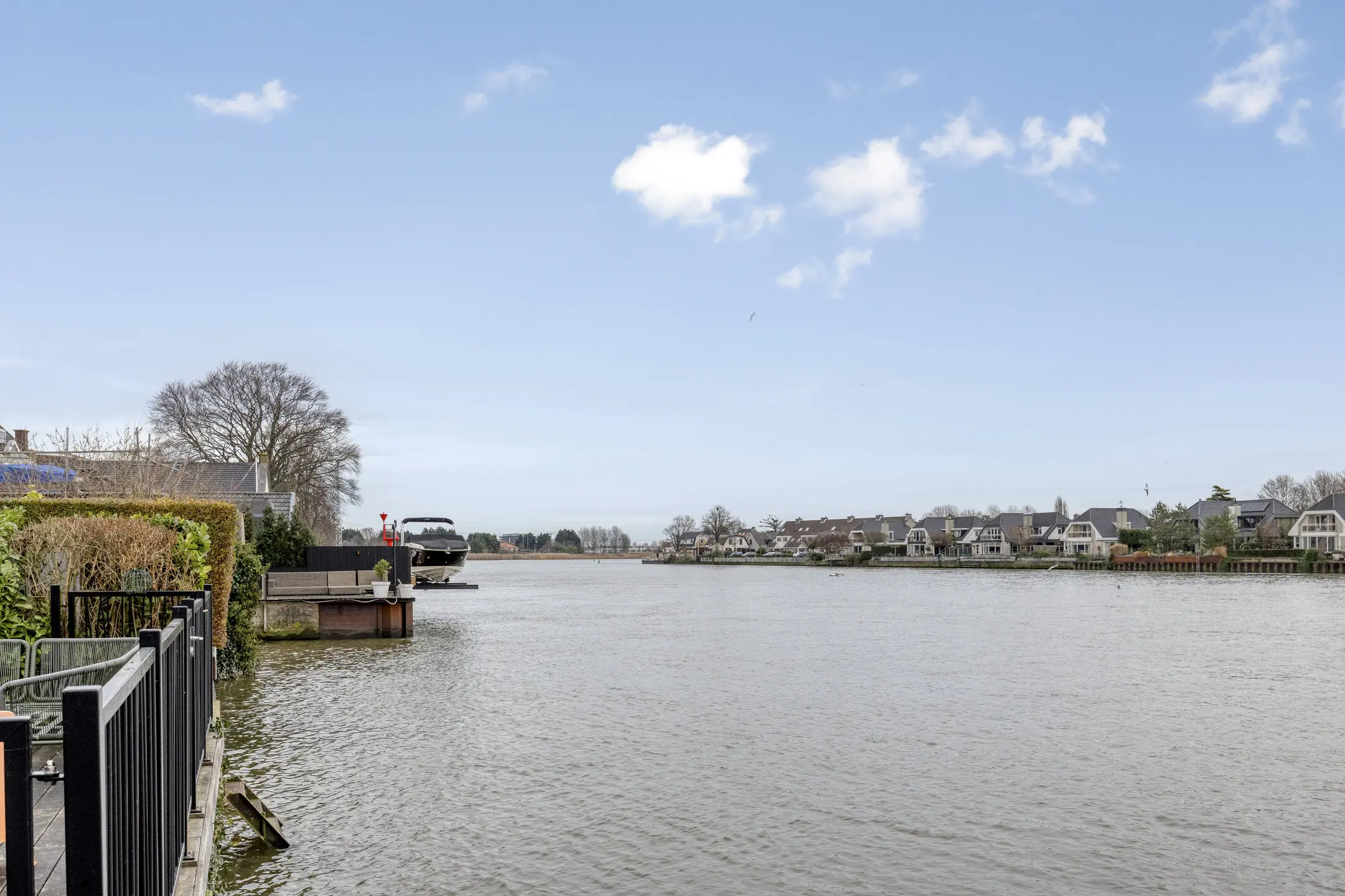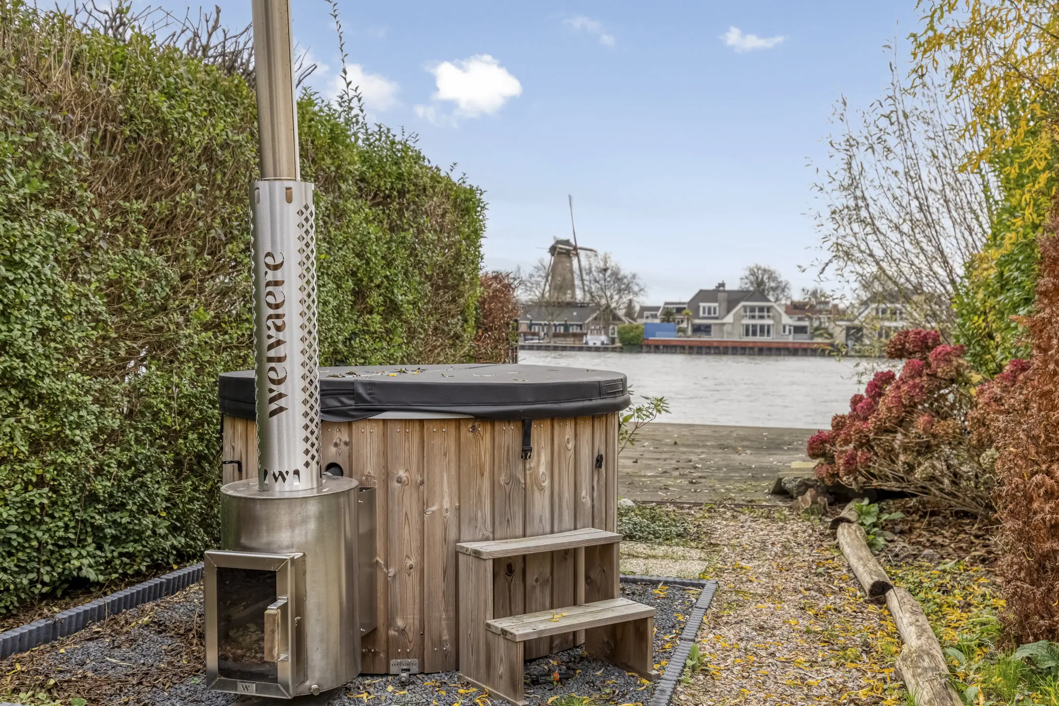 De achtertuin is een absoluut hoogtepunt: professioneel en royaal aangelegd, gelegen op het zuiden, voorzien van meerdere terrassen, een hottub (blijft achter) en directe toegang tot het water. Hier geniet u dagelijks van rust, privacy en een fenomenaal uitzicht. Het is zelfs mogelijk om een boot aan te leggen, mits voorzien van een bootlift.