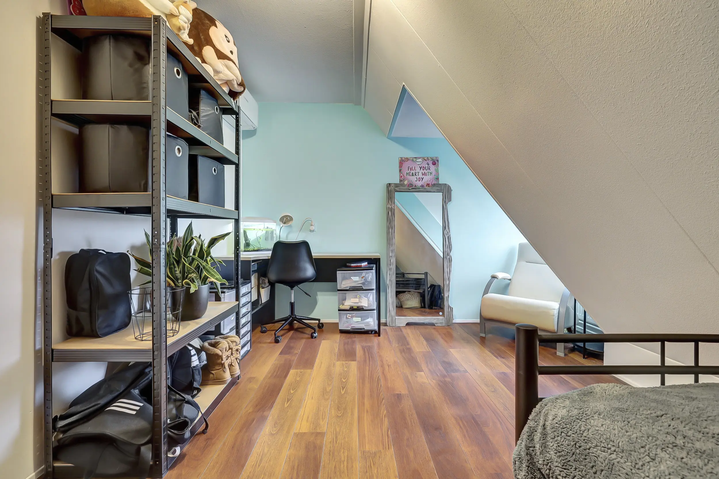 Door de vaste trap kom je op de overloop met toegang tot de twee slaapkamers van deze verdieping. De slaapkamers zijn voorzien van een dakkapel, parketvloer en hebben elk een airco voor warmen en koelen. In de technische ruimte is de opstelplaats voor de CV-ketel (Remeha 2019) en ruimte voor de wasmachine en wasdroger.