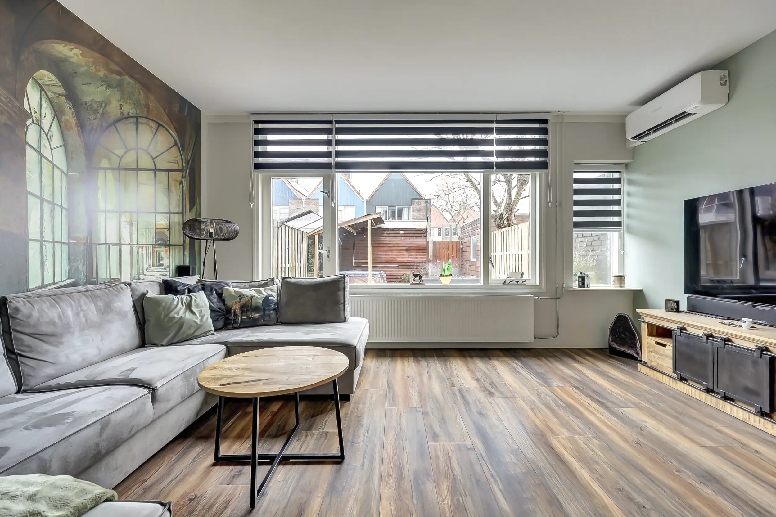 De woning heeft houten ramen en kozijnen en grotendeels dubbele/HR beglazing.