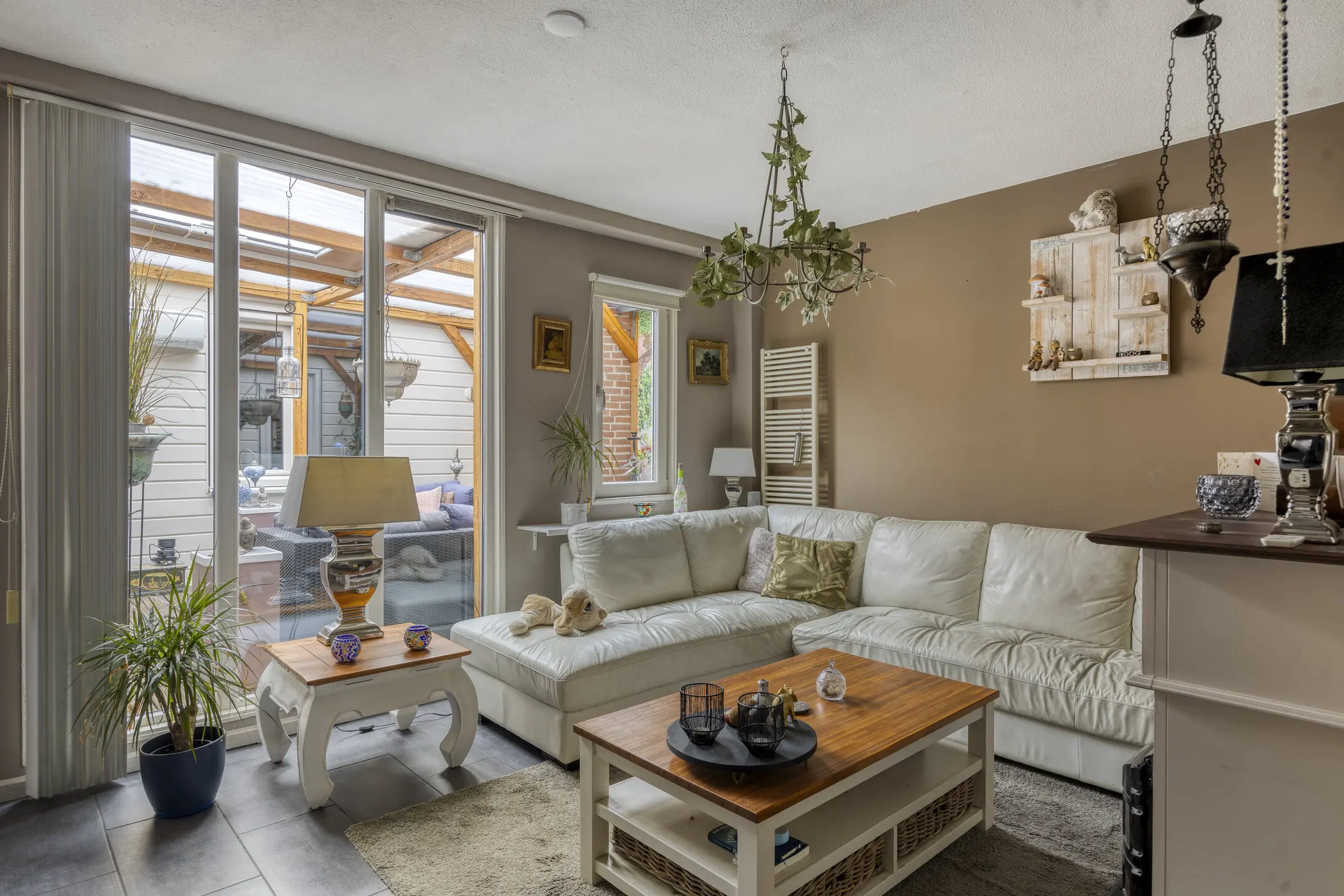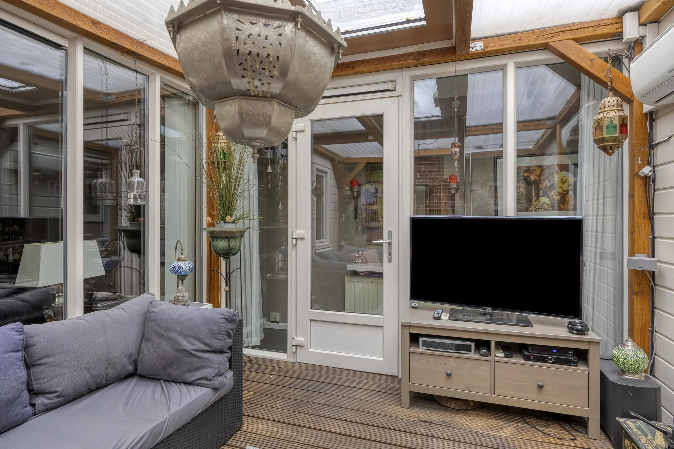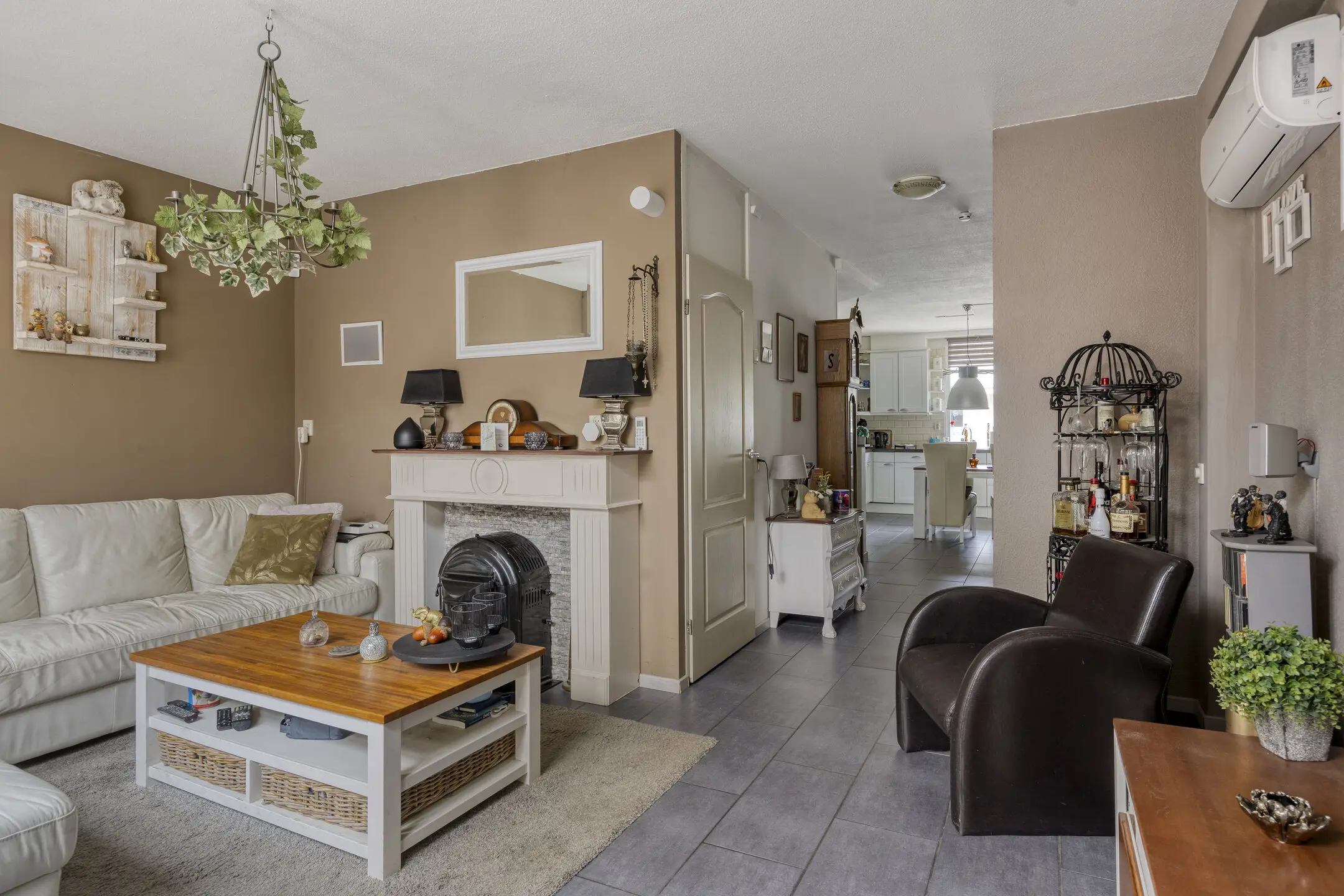 Entree/hal met geheel betegelde toiletruimte met wandcloset en fonteintje. De lichte open keuken met granieten blad is in 2018 geplaatst aan de voorzijde van de woning. De ruime woonkeuken is uitgerust met een keramische kookplaat, RVS afzuigkap (met afvoer naar buiten), combi-oven, koffiemachine, koel-/vriescombinatie en spoelbak (met close in boiler) onder het raam. De gezellige woonkamer (met airco) staat in open verbinding met de keuken en grenst aan de patio. Op de vloer liggen grijze plavuizen. De overdekte patio is een heerlijke ruimte om te verblijven en de houtkachel geeft fijne warmte en veel sfeer. De gang met toegang tot de 2 slaapkamers beiden van een fijn formaat. De grootste van de twee ligt aan de achterzijde en heeft een trap naar de achtertuin. In de hoofdslaapkamer is een airco unit aanwezig. De riante badkamer is geheel in een lichte kleurstelling betegeld en is voorzien van een douche, ligbad, dubbel wastafelmeubel, design radiator, wandcloset en verlaagd plafond met inbouwspots. In de badkamer zijn ook de aansluitingen voor de wasmachine en droger aanwezig.