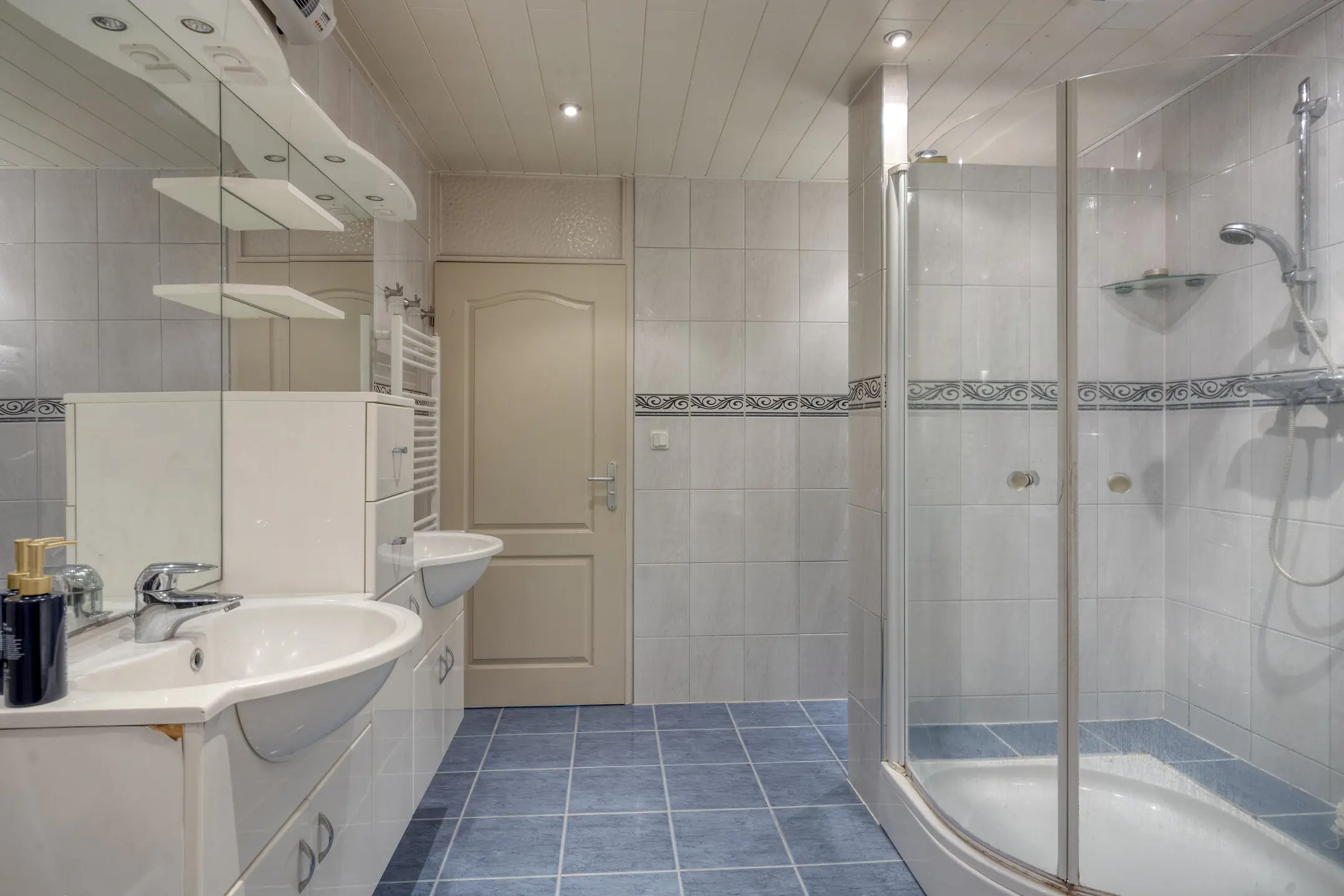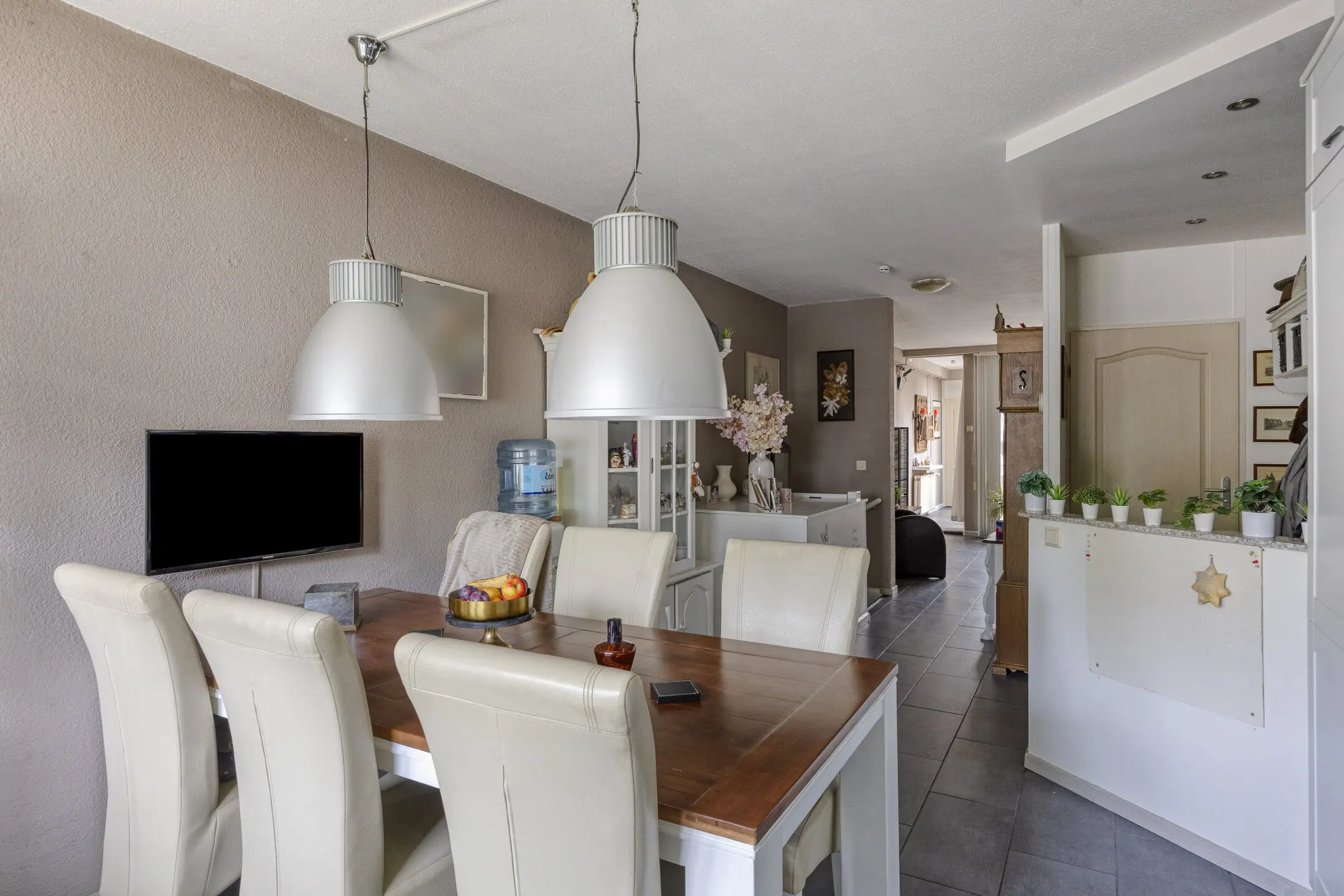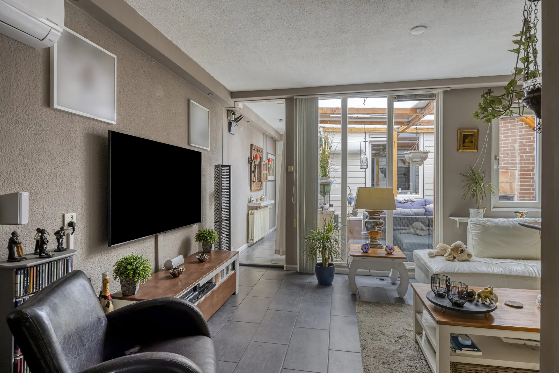 Entree/hal met geheel betegelde toiletruimte met wandcloset en fonteintje. De lichte open keuken met granieten blad is in 2018 geplaatst aan de voorzijde van de woning. De ruime woonkeuken is uitgerust met een keramische kookplaat, RVS afzuigkap (met afvoer naar buiten), combi-oven, koffiemachine, koel-/vriescombinatie en spoelbak (met close in boiler) onder het raam. De gezellige woonkamer (met airco) staat in open verbinding met de keuken en grenst aan de patio. Op de vloer liggen grijze plavuizen. De overdekte patio is een heerlijke ruimte om te verblijven en de houtkachel geeft fijne warmte en veel sfeer. De gang met toegang tot de 2 slaapkamers beiden van een fijn formaat. De grootste van de twee ligt aan de achterzijde en heeft een trap naar de achtertuin. In de hoofdslaapkamer is een airco unit aanwezig. De riante badkamer is geheel in een lichte kleurstelling betegeld en is voorzien van een douche, ligbad, dubbel wastafelmeubel, design radiator, wandcloset en verlaagd plafond met inbouwspots. In de badkamer zijn ook de aansluitingen voor de wasmachine en droger aanwezig.