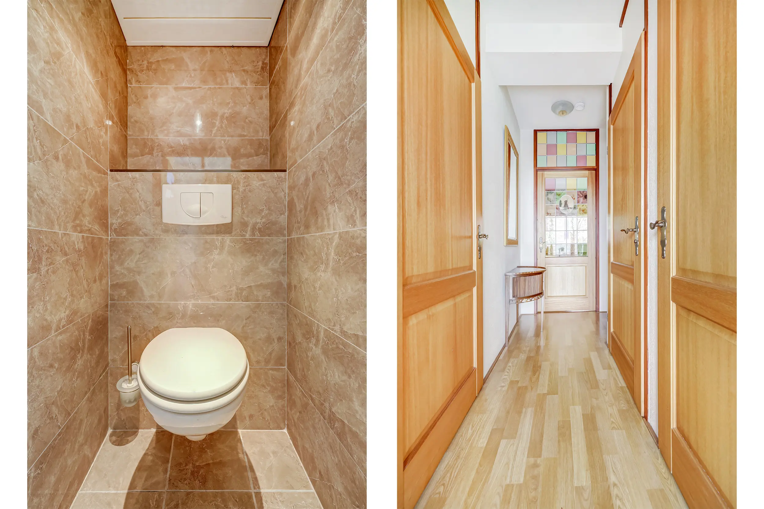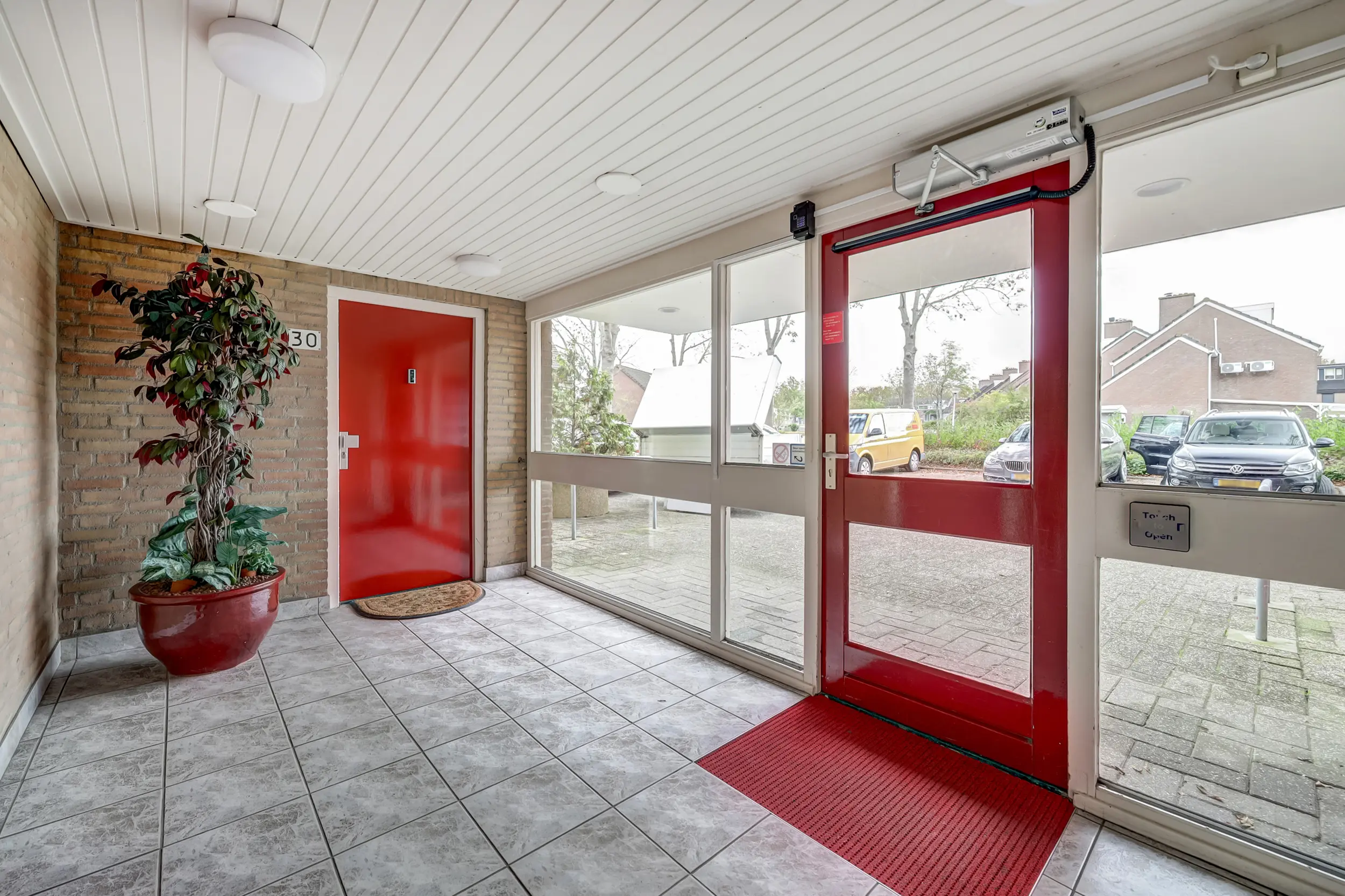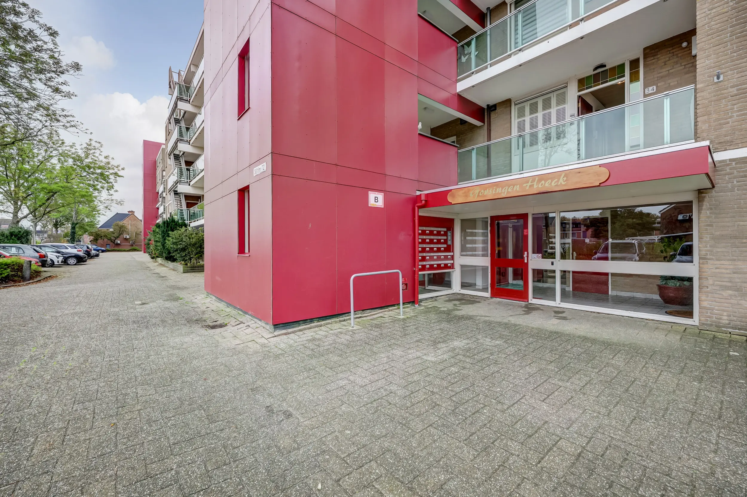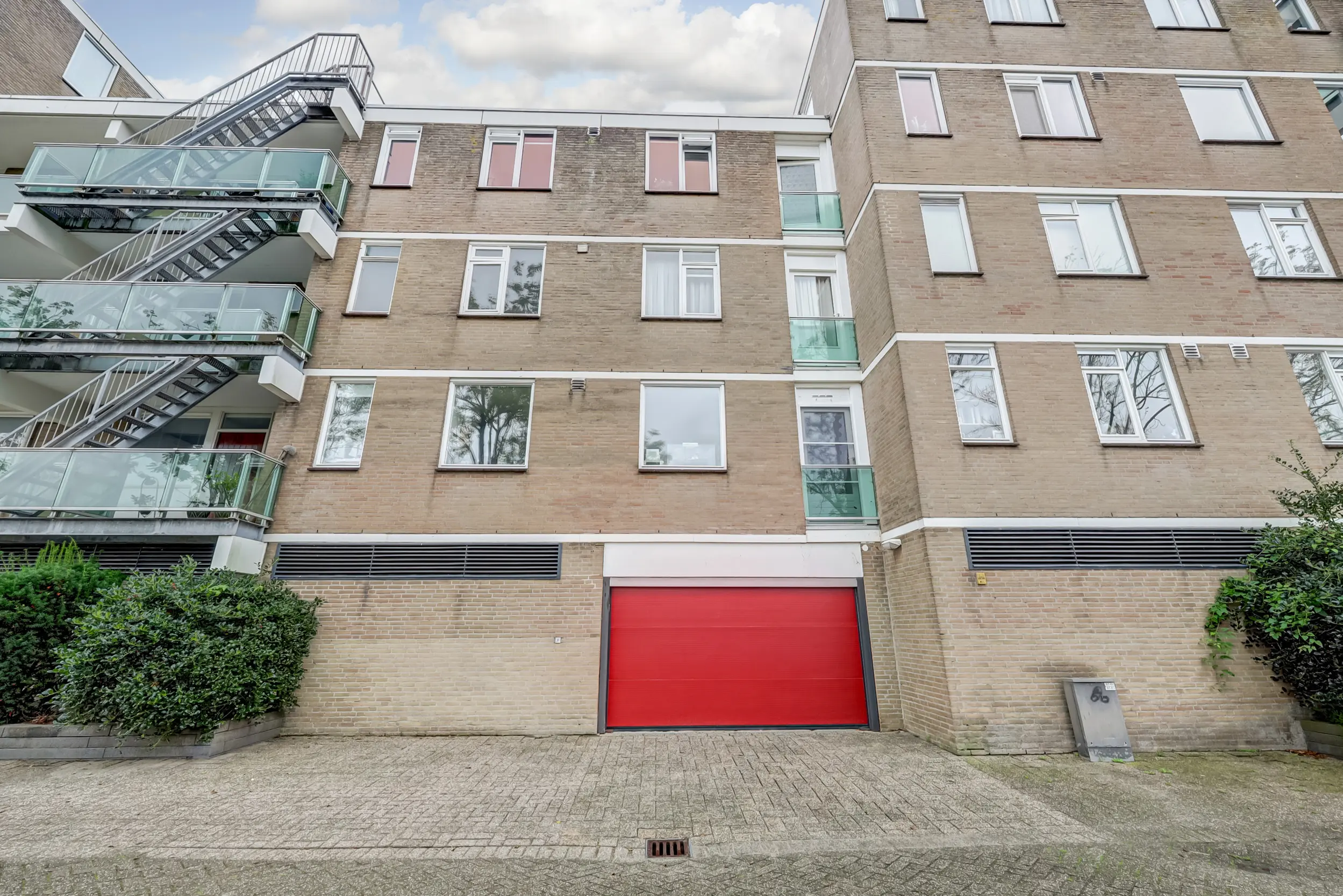 Vanaf de straatzijde kom je in de centrale hal met de postbussen, trappenhuis, lift, toegang tot de parkeerkelder en de bergingen.