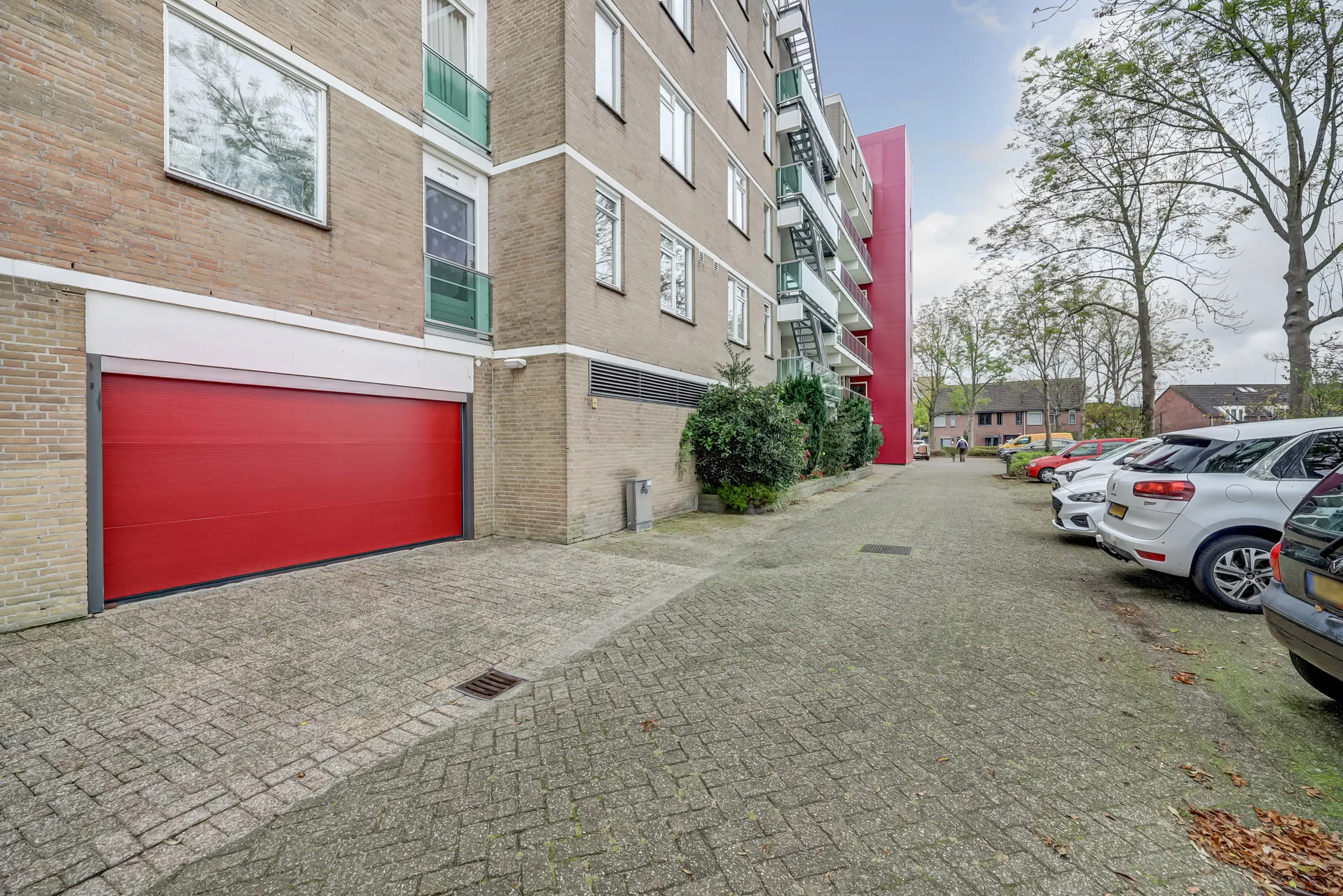 Bij het appartement hoort een eigen parkeerplek in de parkeerkelder onderin het gebouw. Zo staat de auto veilig en kun je inpandig naar de centrale ruimte bij de lift en het trappenhuis.