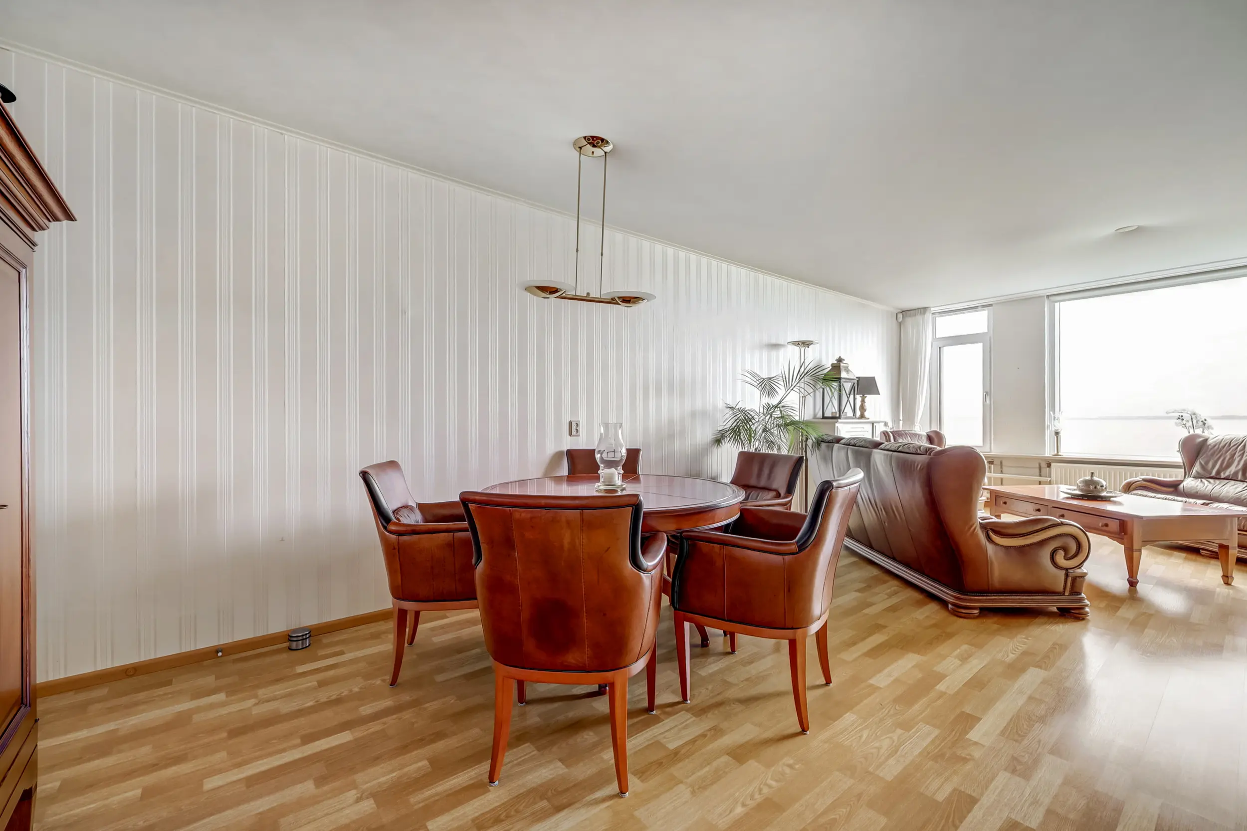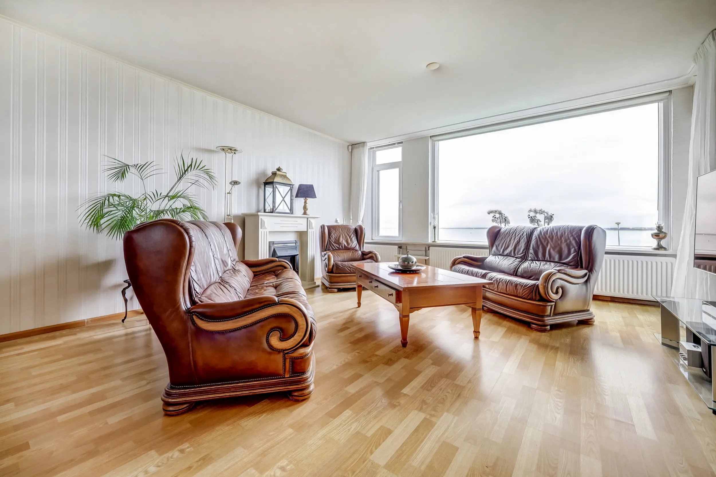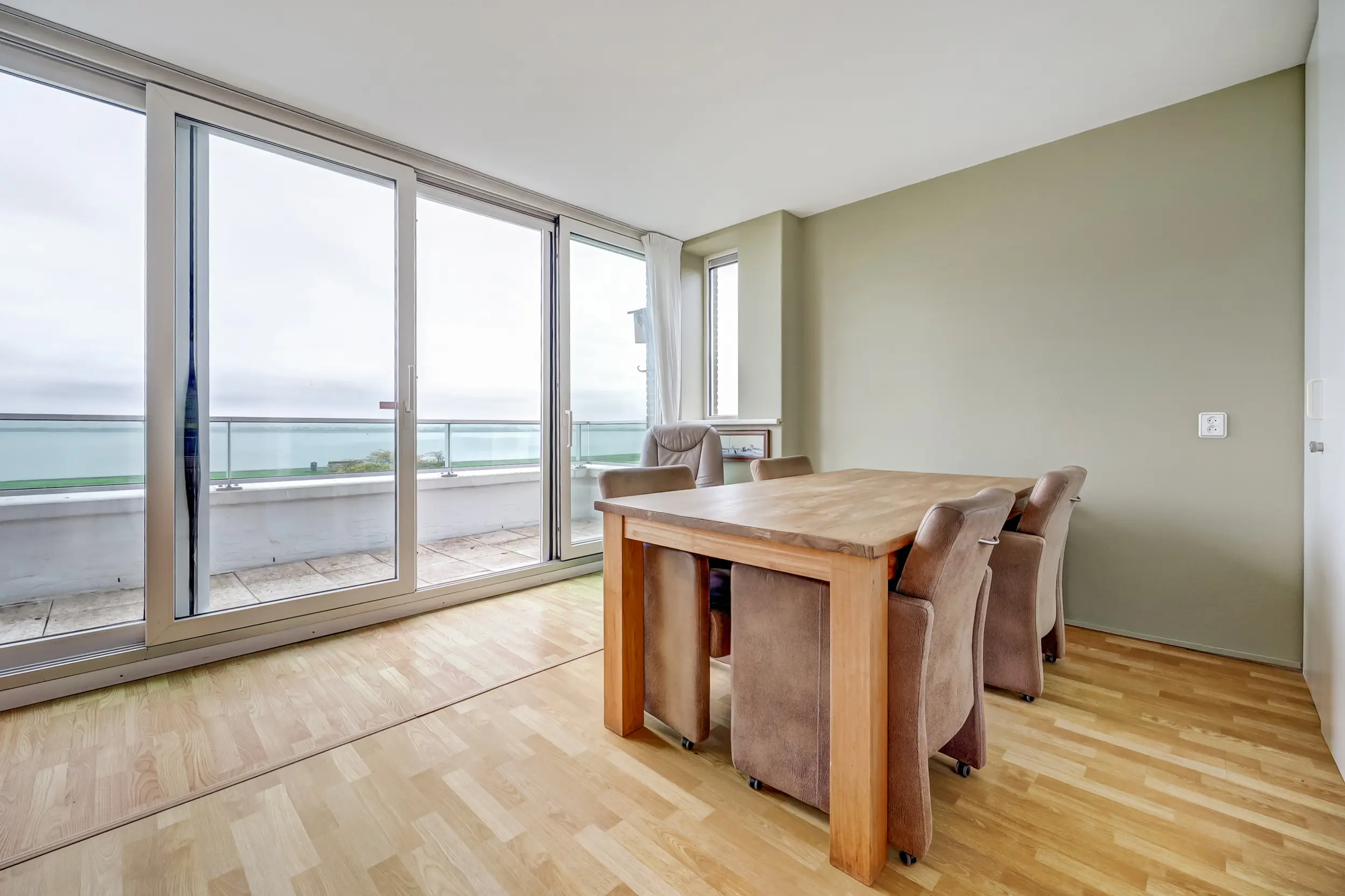 Aan het einde van de galerij, waaraan slechts 2 appartementen zijn, ligt dit hoekappartement. De entree van het appartement is ruim en doet zowel dienst als garderobe als bijkeuken. De wasmachine en droger zijn in het geheel uit zicht geplaatst. Vanuit hier kom je in de woonkamer met zicht op het Haringvliet. Dit uitzicht verveelt nooit! Elk jaargetijde is het anders. Bootjes, flora en fauna voor de deur! De keuken in U-opstelling met inbouwapparatuur is in een neutrale kleurstelling. De open keuken is gelegen aan de voorzijde van het appartement.