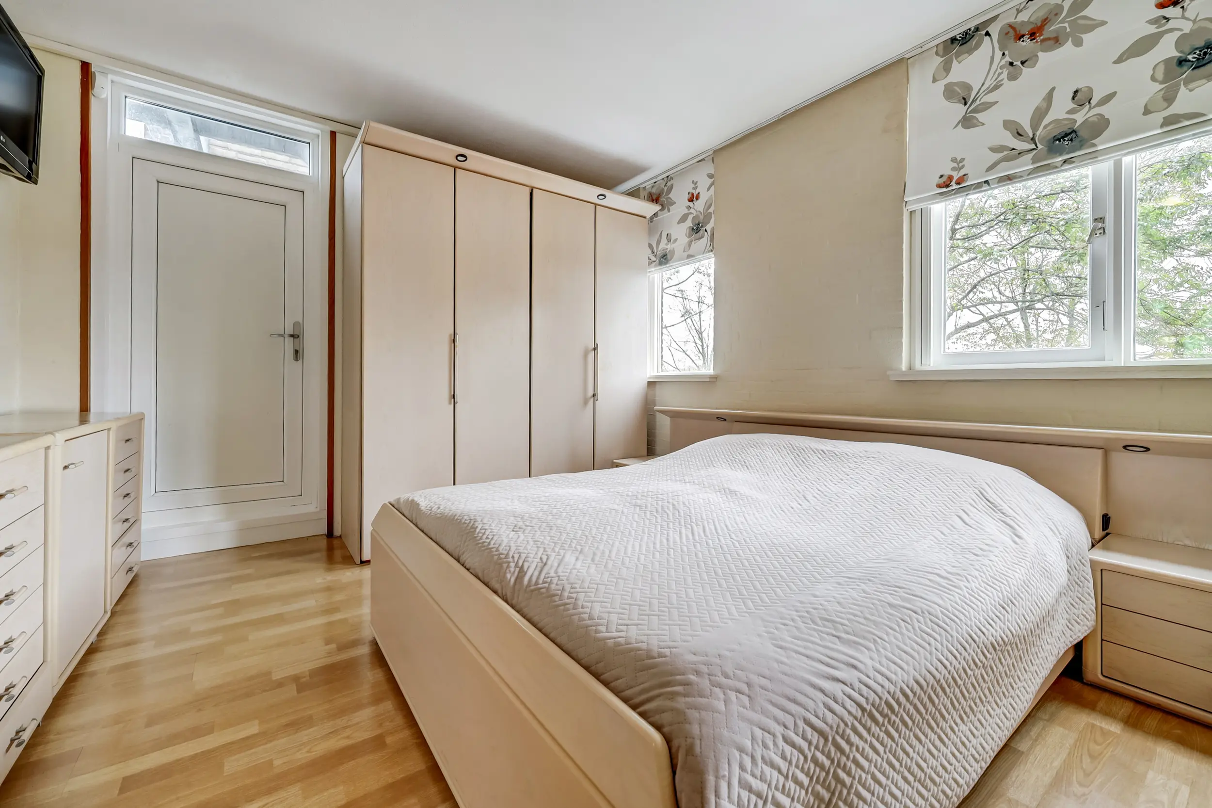 Een gang brengt je bij de 2 slaapkamers, de badkamer en het separate toilet. De badkamer is luxe! Deze is uitgerust met een eigen sauna, stoomdouchecabine, wastafelmeubel en is voorzien van vloerverwarming. Ideaal is dat in dit appartement een separaat toilet aanwezig is. Voor de CV-ketel (Vaillant 2024) en de mechanische ventilatie box is een aparte bergruimte. De slaapkamers zijn ruim. De slaapkamer aan de voorzijde heeft een deur naar de noodtrap en de andere slaapkamer met kastenwand grenst aan het dakterras. Deze kamer is vergroot waardoor er nog meer woonruimte is gecreëerd.