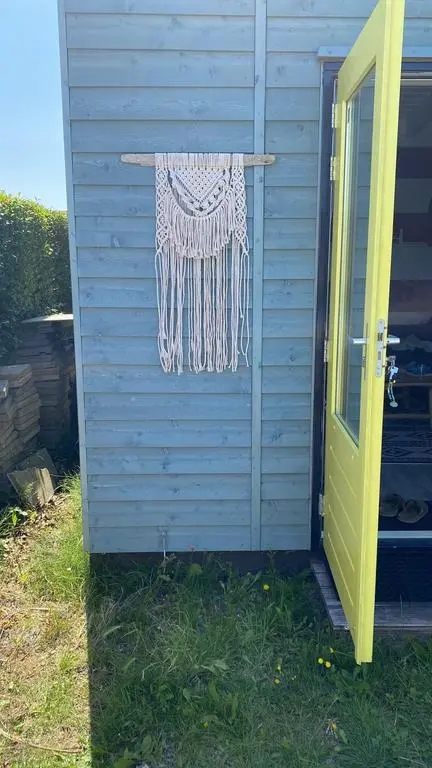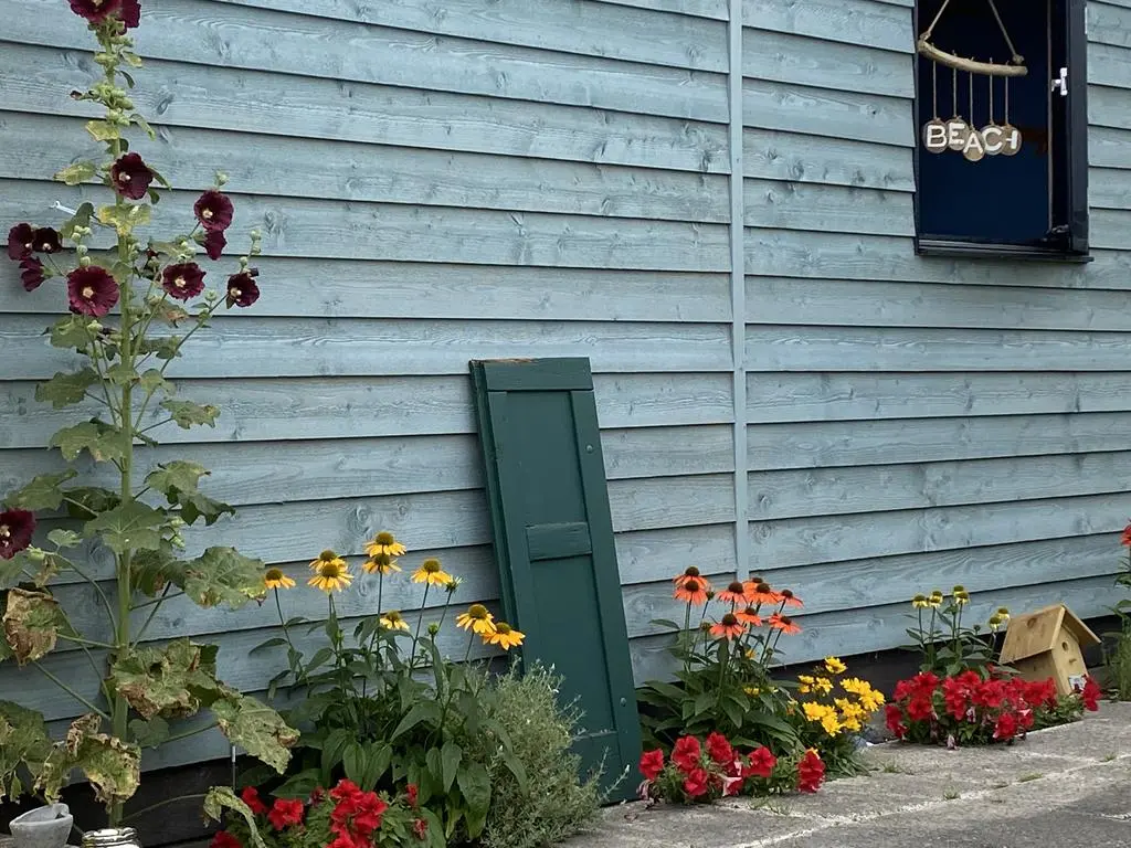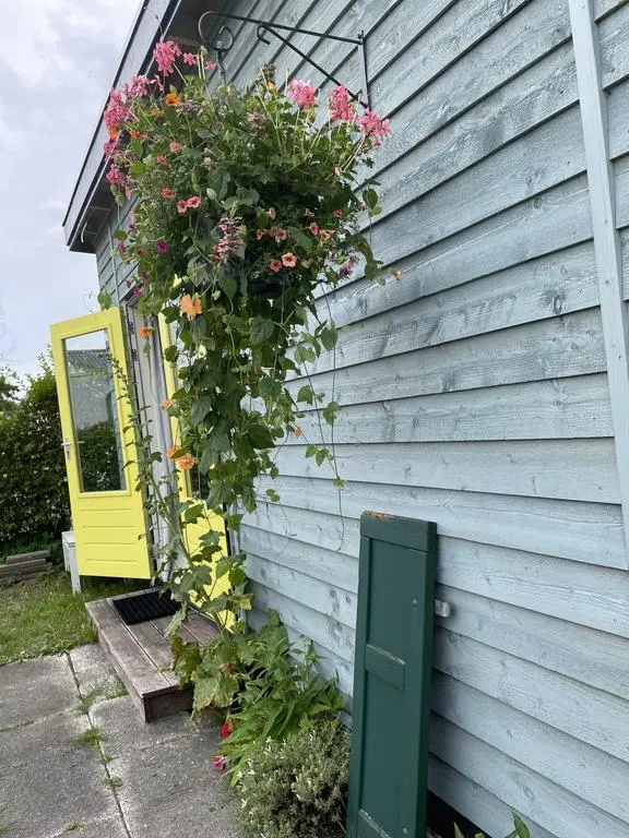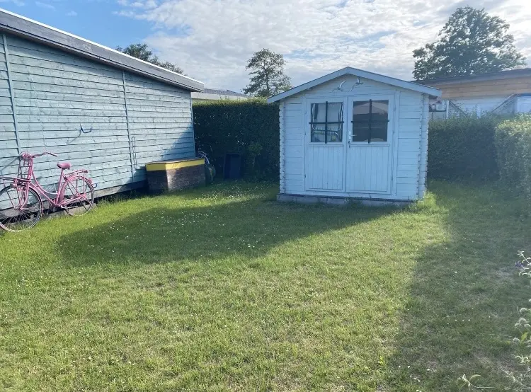 In de tuin is een houten vrijstaande berging. Ideaal voor fietsen en bijvoorbeeld de watersportuitrusting.