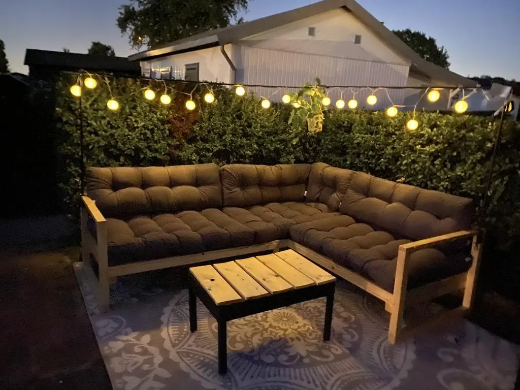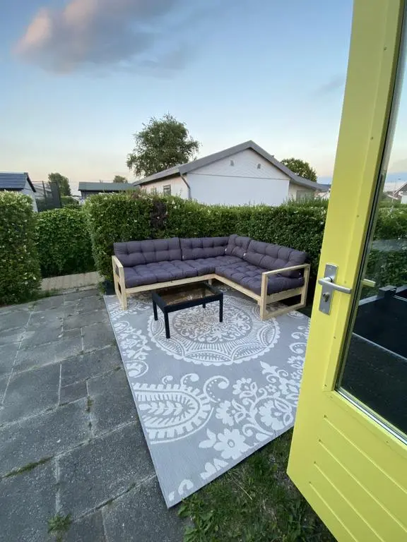 Aan de woonkamerzijde is een terras met daarop een loungehoek, eethoek en barbecue. Fijne plek om mooie herinneringen te maken! De overige buitenruimte is voorzien van gras en is omheind door heggen.