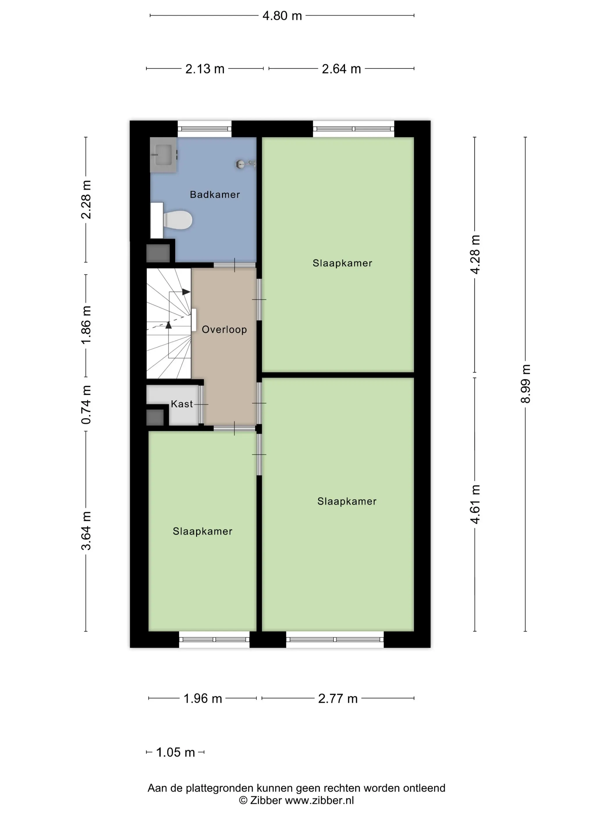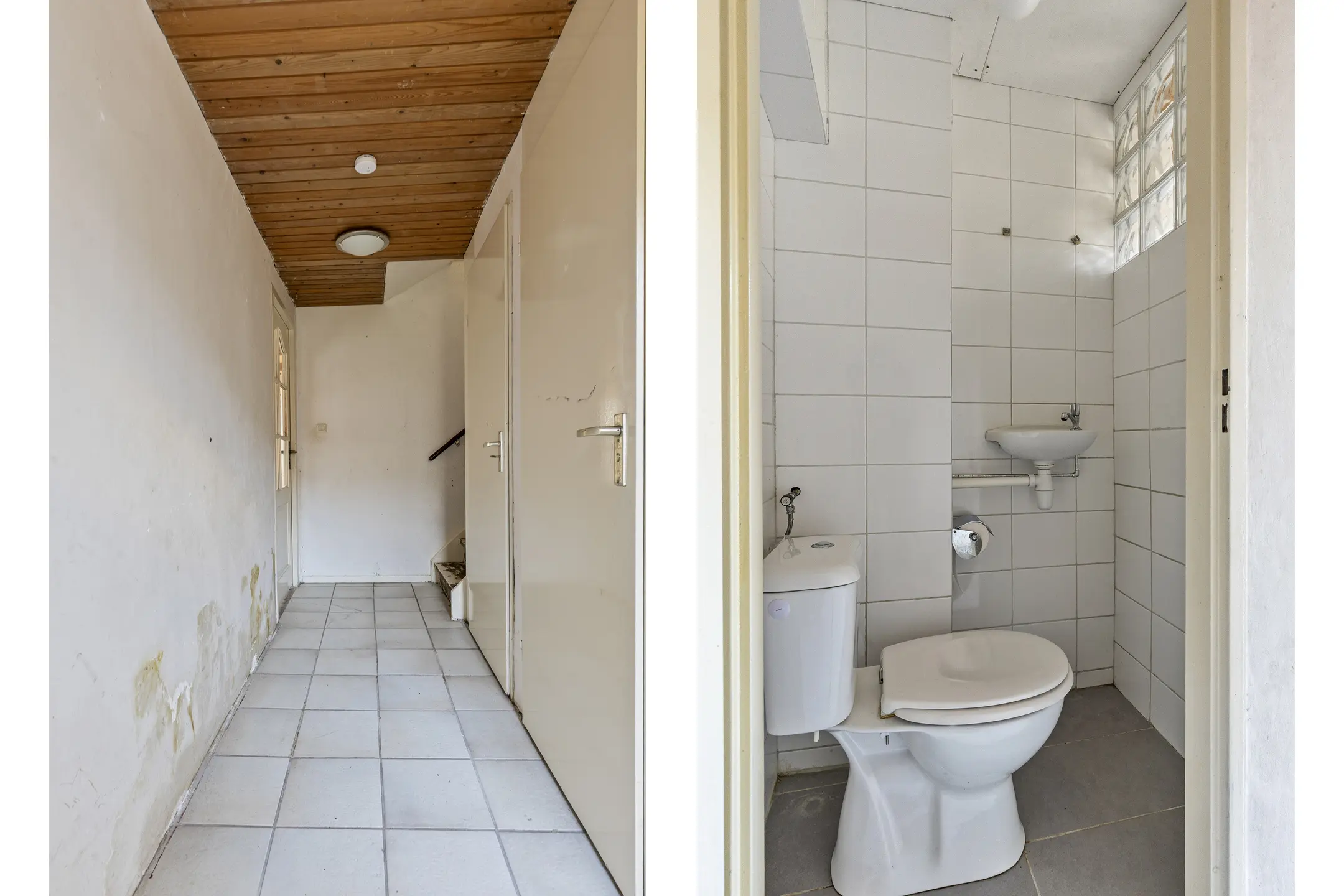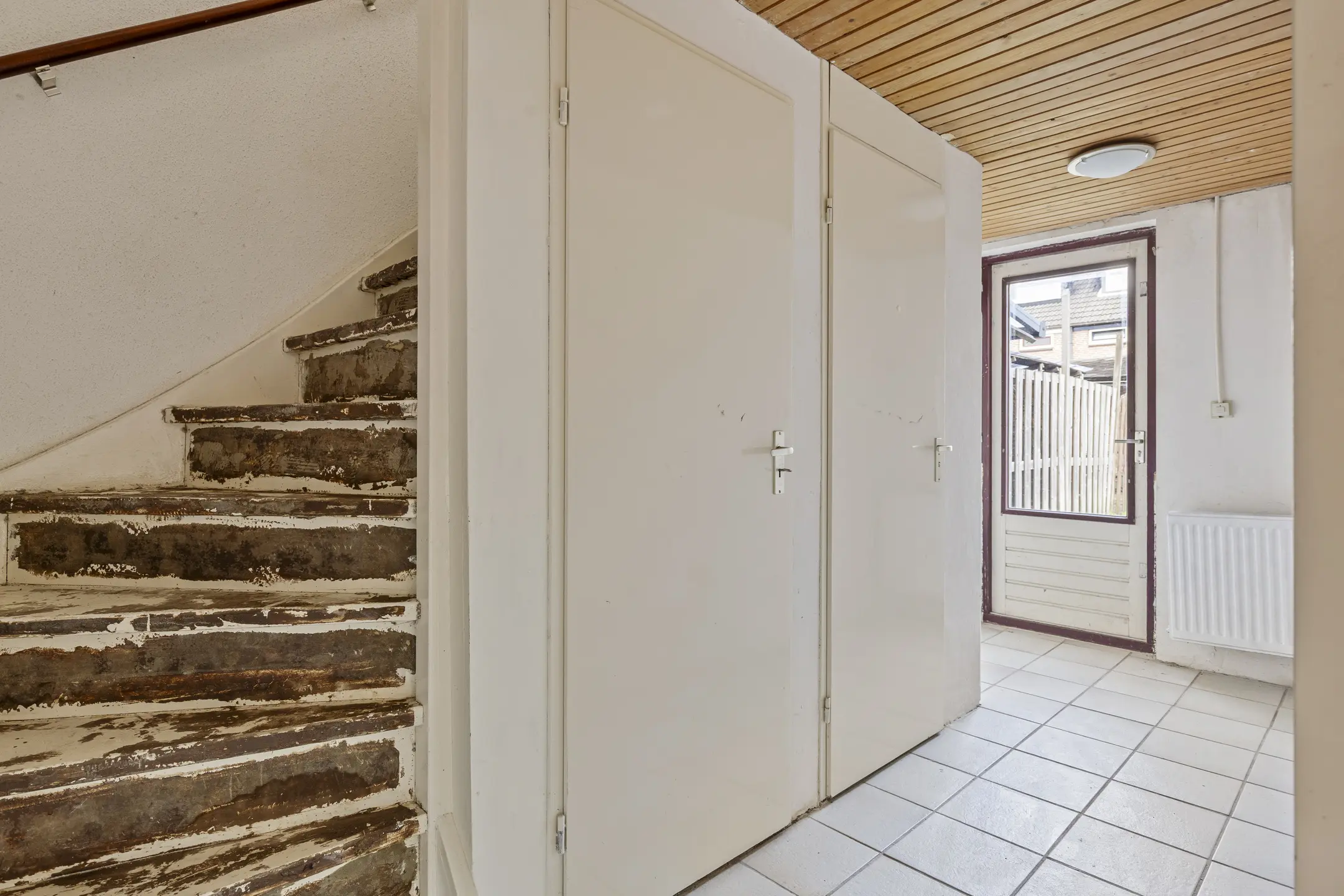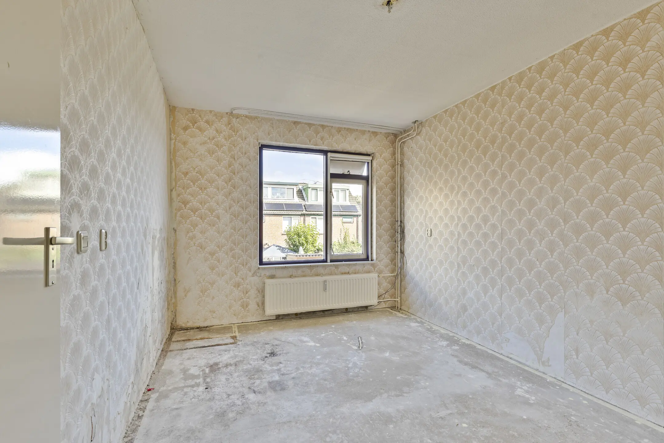 Overloop met toegang tot de vertrekken. Riante hoofdslaapkamer en een wat kleinere tweede slaapkamer aan de voorzijde van het huis. Slaapkamer drie is eveneens een kamer van een fijn formaat en bevindt zich aan de achterzijde. Geheel in lichte kleurstelling betegelde badkamer met een douche, wastafelmeubel, wandcloset. Er is een raam aanwezig zodat er op een natuurlijke manier geventileerd kan worden.