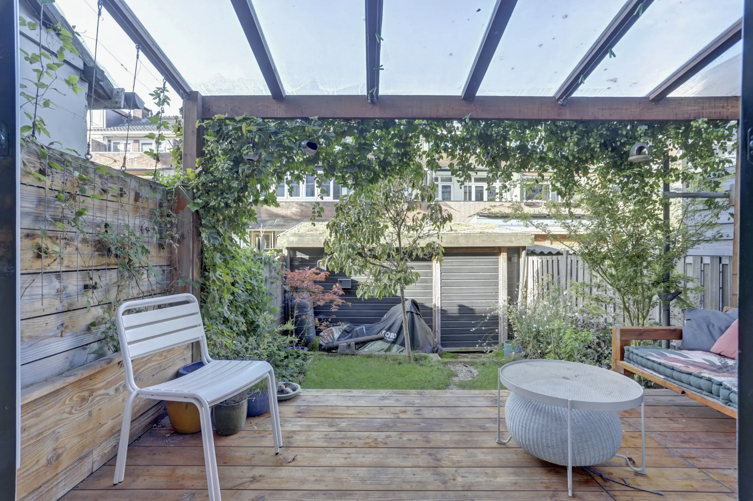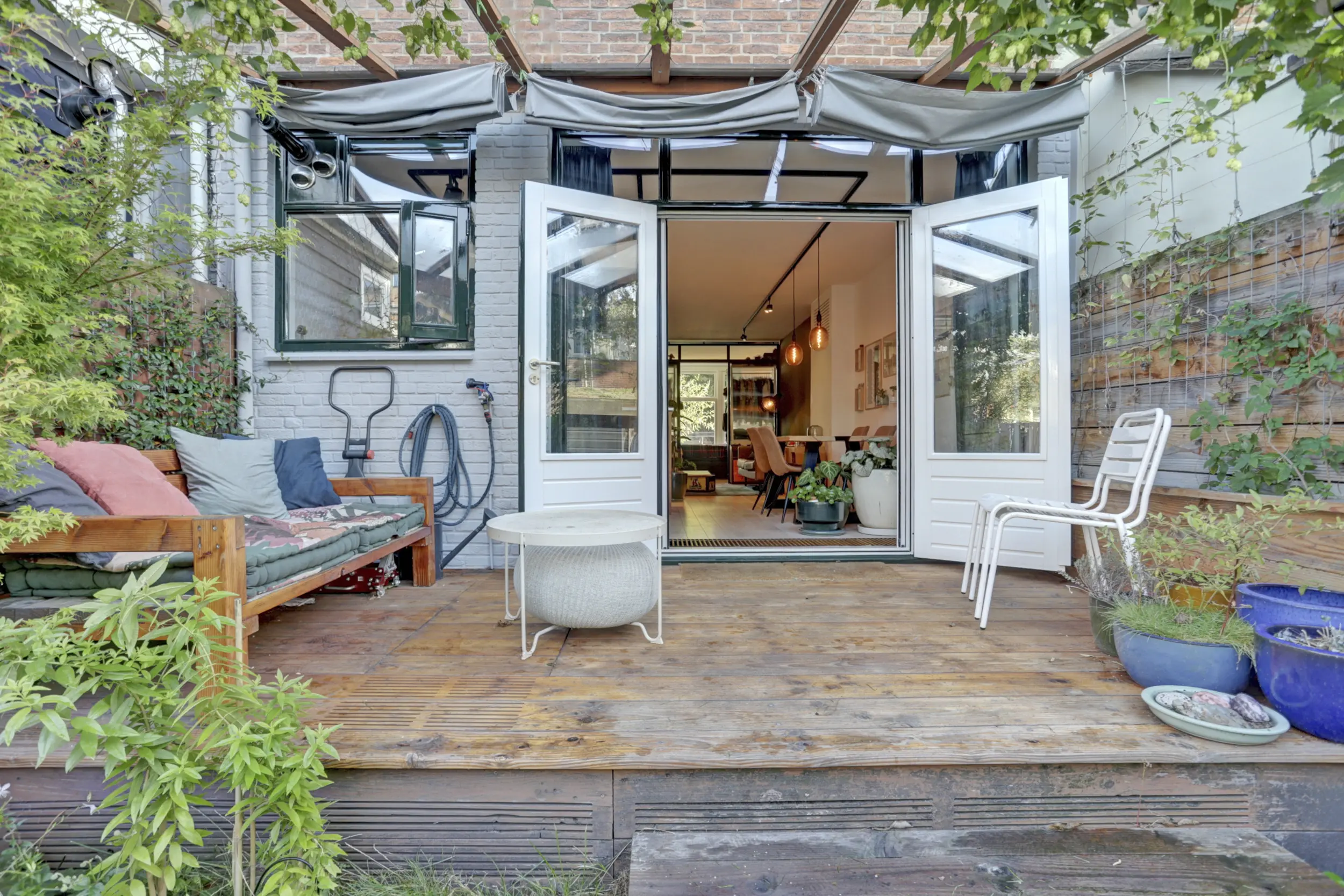 Een absoluut pluspunt is de ruime achtertuin van circa 33 m², gelegen op het zonnige zuidwesten. Hier geniet je volop van de middag- en avondzon. De tuin beschikt daarnaast over een terras met overkapping, een handige berging én achterom is mogelijk.