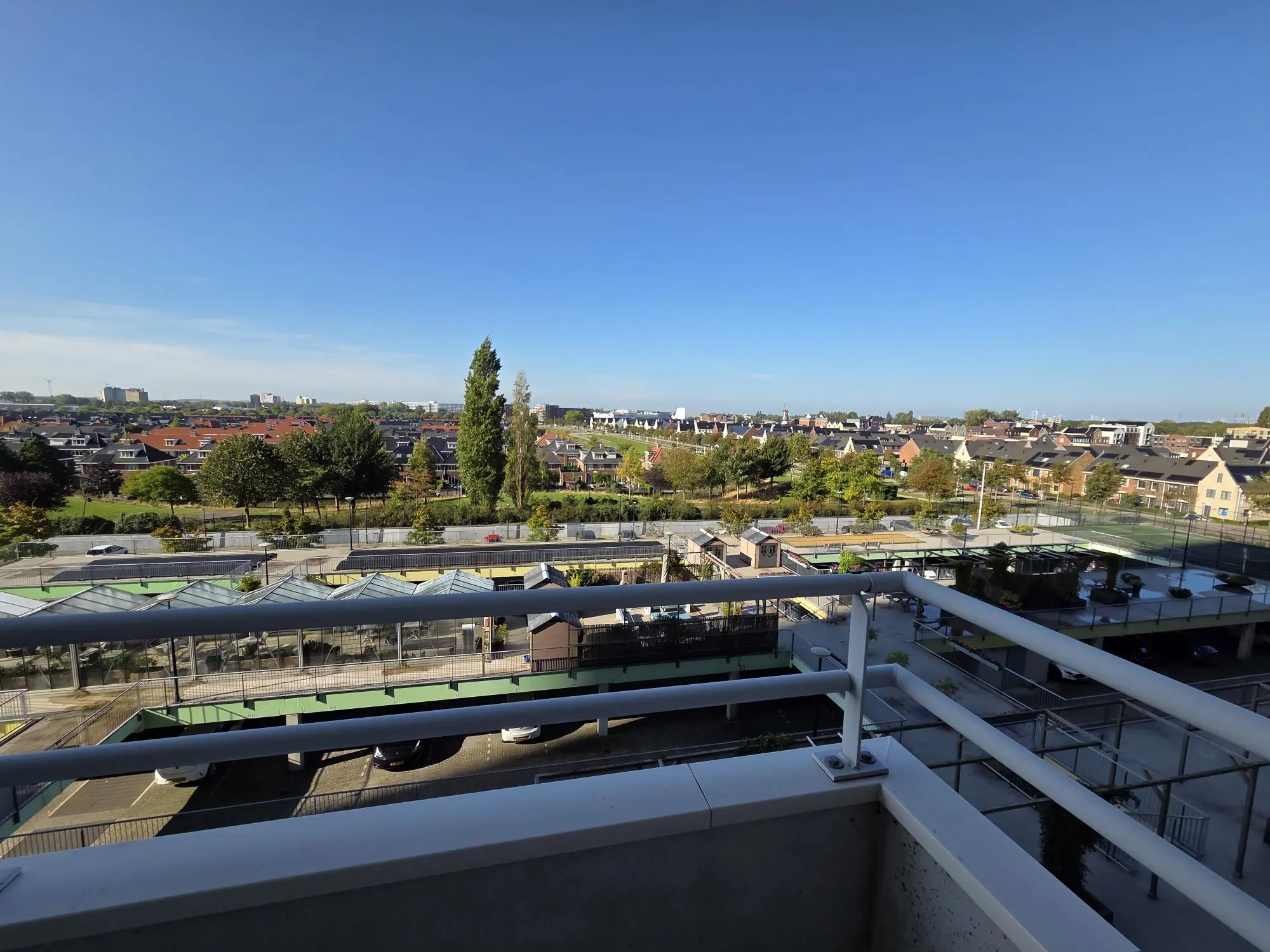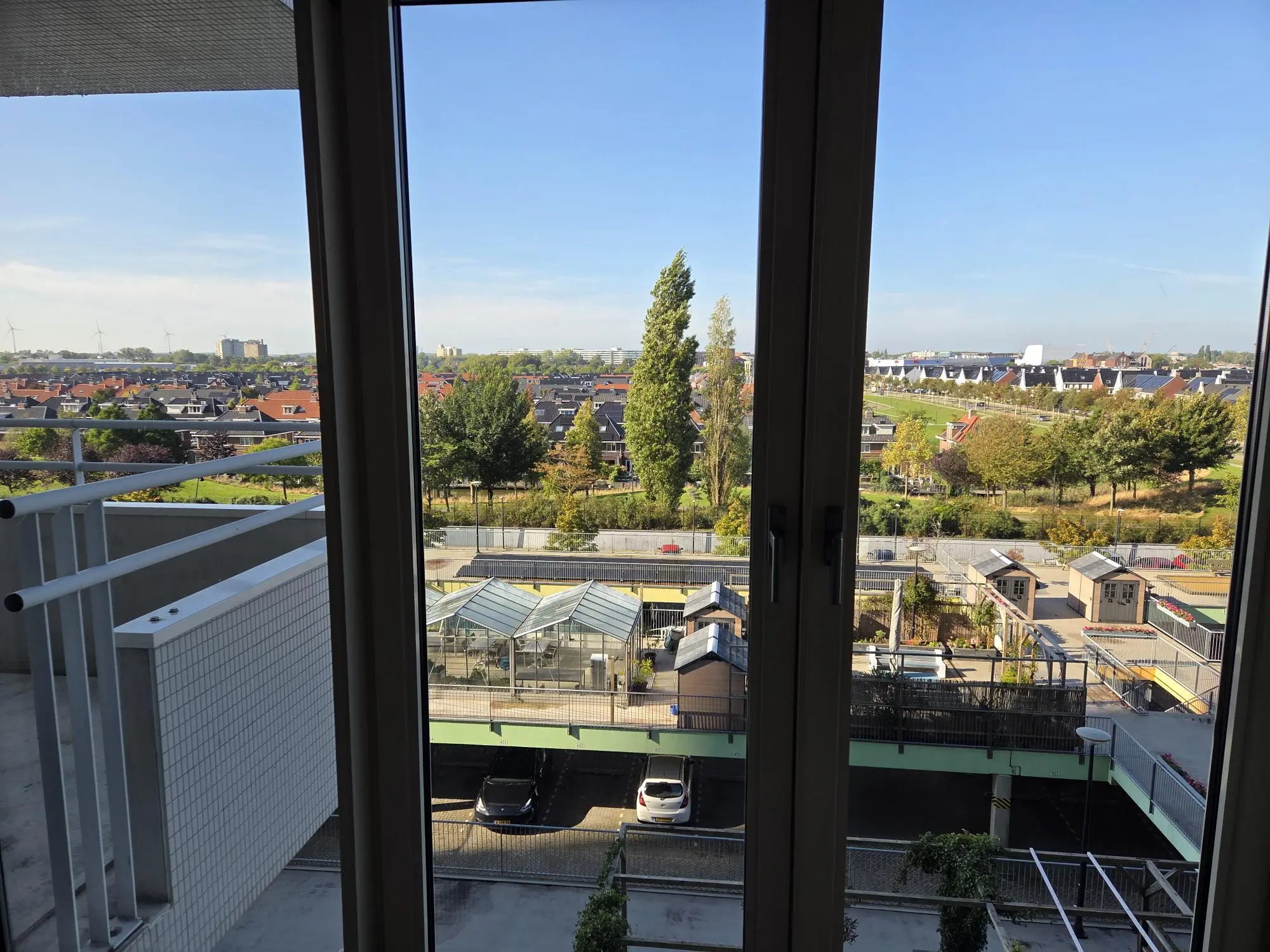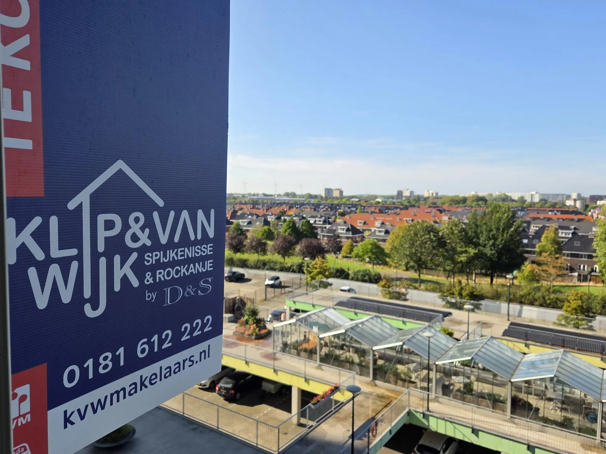 De ruim 10 meter diepe woonkamer is uitgevoerd met grote raampartijen welke uitzicht geven op het achtergelegen park en Spijkenisse. De open keuken is voorzien van koelkast, inductie kookplaat en afzuigkap.