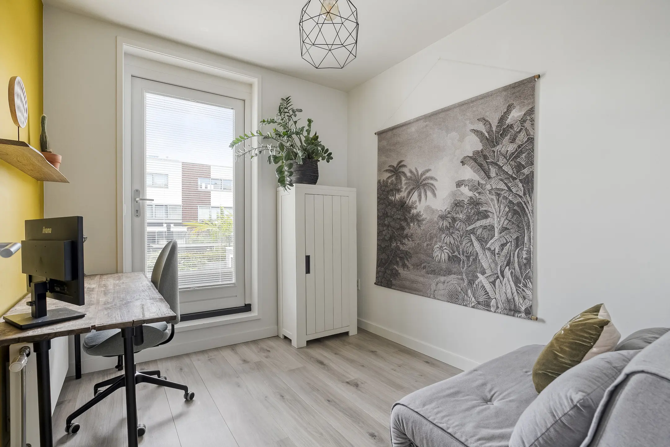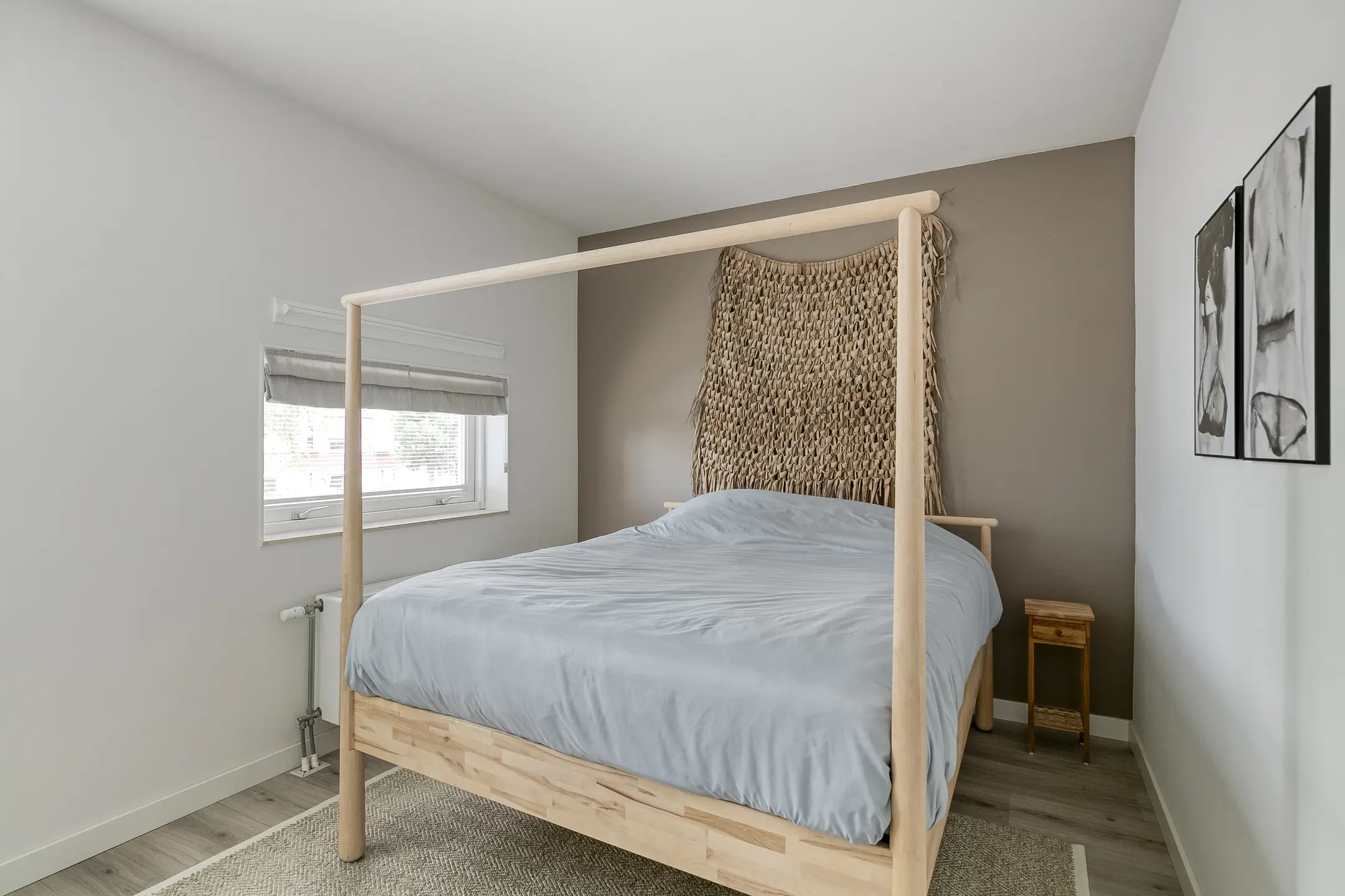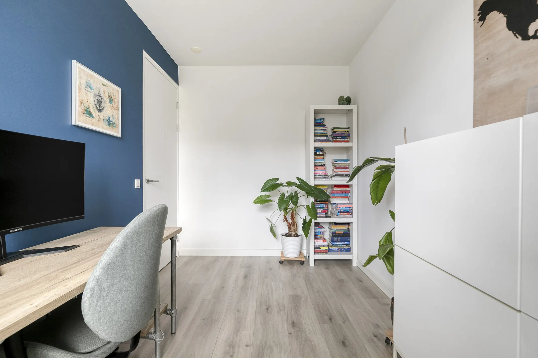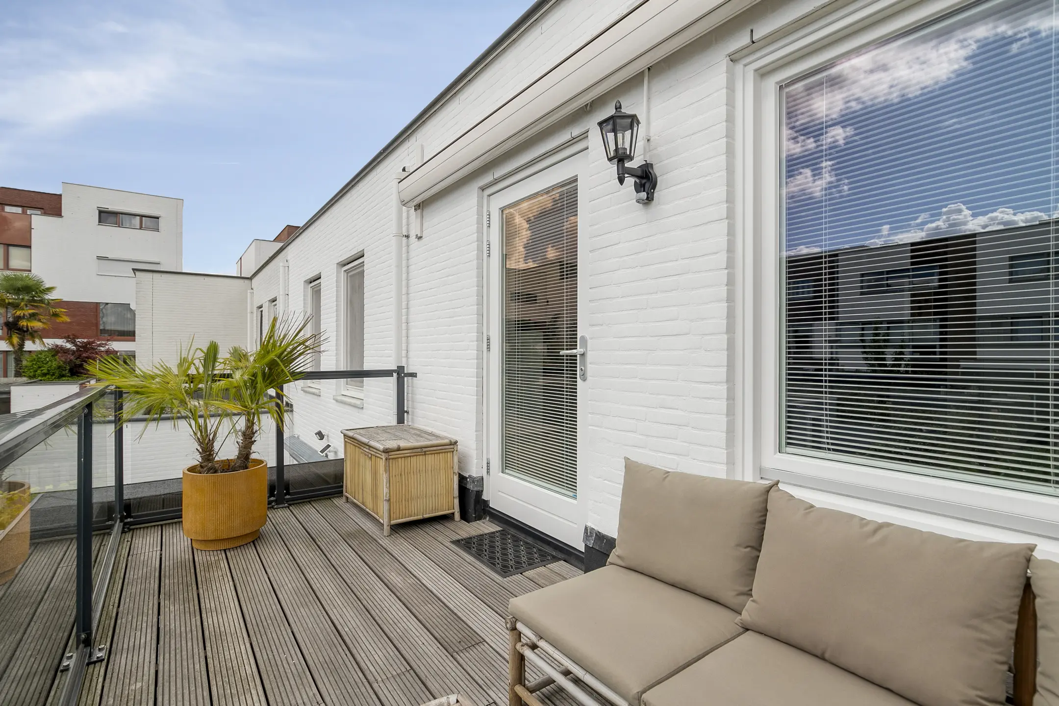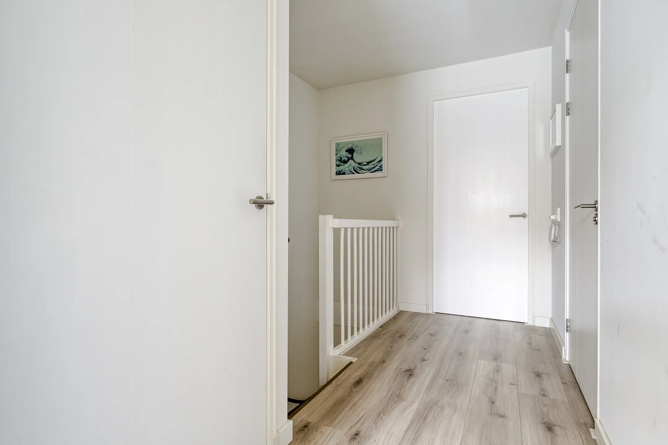 Verzorgde trapopgang met verlichting. Overloop met toegang tot de vertrekken en vaste kast met daarin de aansluitingen voor de wasmachine en droger (kunnen gelijktijdig aan), de mechanische ventilatie unit en de omvormer van de zonnpanelen. Aan de voorzijde van het huis ligt de riante hoofdslaapkamer, deze is voorzien van een fraaie inloopkast met kastinrichting en verlichting. De badkamer (2016) is een mooie ruimte welke is uitgerust met een ligbad, inloopdouche, wandcloset, dubbel wastafelmeubel, praktische kast en een verwarmde spiegel. Slaapkamer twee en drie bevinden zich aan de achterzijde van de woning, dit zijn beide ook kamers van een fijn formaat. Eén van de twee kamers heeft een deur naar het zonnige op het zuiden gesitueerde dakterras, dit is een heerlijke plek om te vertroeven. Het zonnescherm met elektrische bediening zorgt voor schaduw. Op de overloop en in de slaapkamers ligt een drempelloos doorgelegde laminaatvloer.