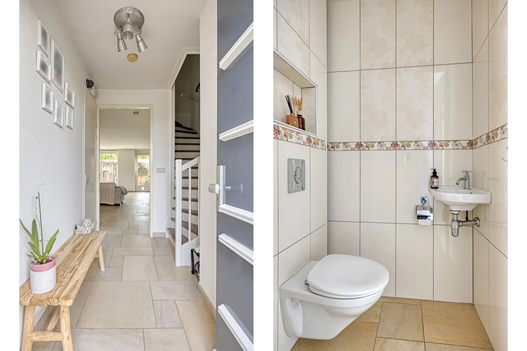 U betreedt de woning via de entree met hal, voorzien van meterkast, trapopgang en een toilet met fonteintje. De ruime en tuingerichte woonkamer is strak afgewerkt en is heerlijk licht. De woning is voorzien van vloerverwarming op de begane grond en in de badkamer.