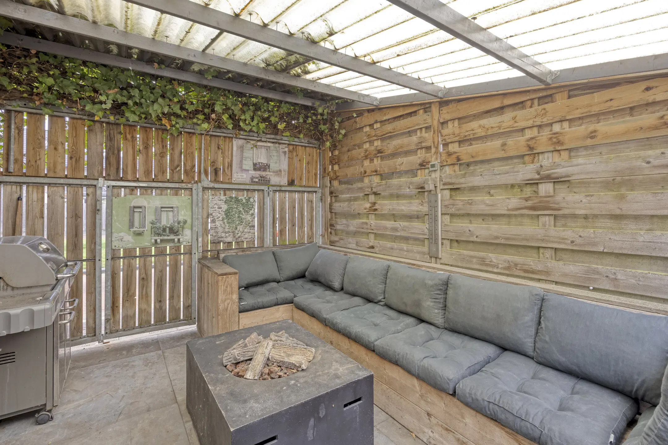 Via de woonkeuken bereik je de zonnige, diepe achtertuin met ruime houten berging en overkapping met een zitplek- een perfecte plek om te ontspannen of gezellig buiten te eten.
