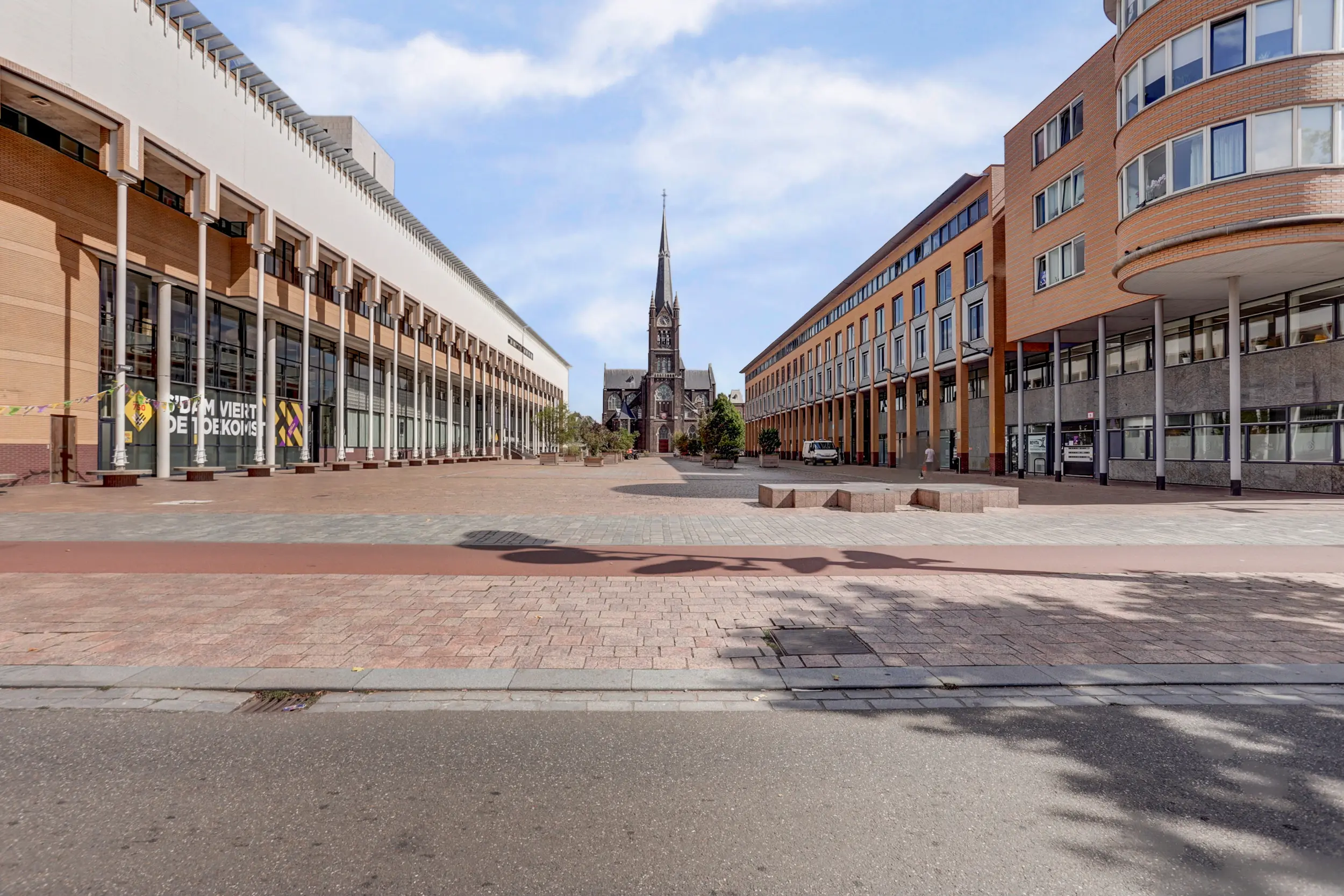 Het Land van Belofte bevindt zich midden in het hart van Schiedam, een centrum dat volop in ontwikkeling is. Direct om de hoek vind je het Stadskantoor en het theater, terwijl bus- en tramhaltes binnen handbereik liggen. Voor wie verder reist, is ook het station – met trein- en metroverbindingen – in slechts tien minuten lopen bereikbaar.
