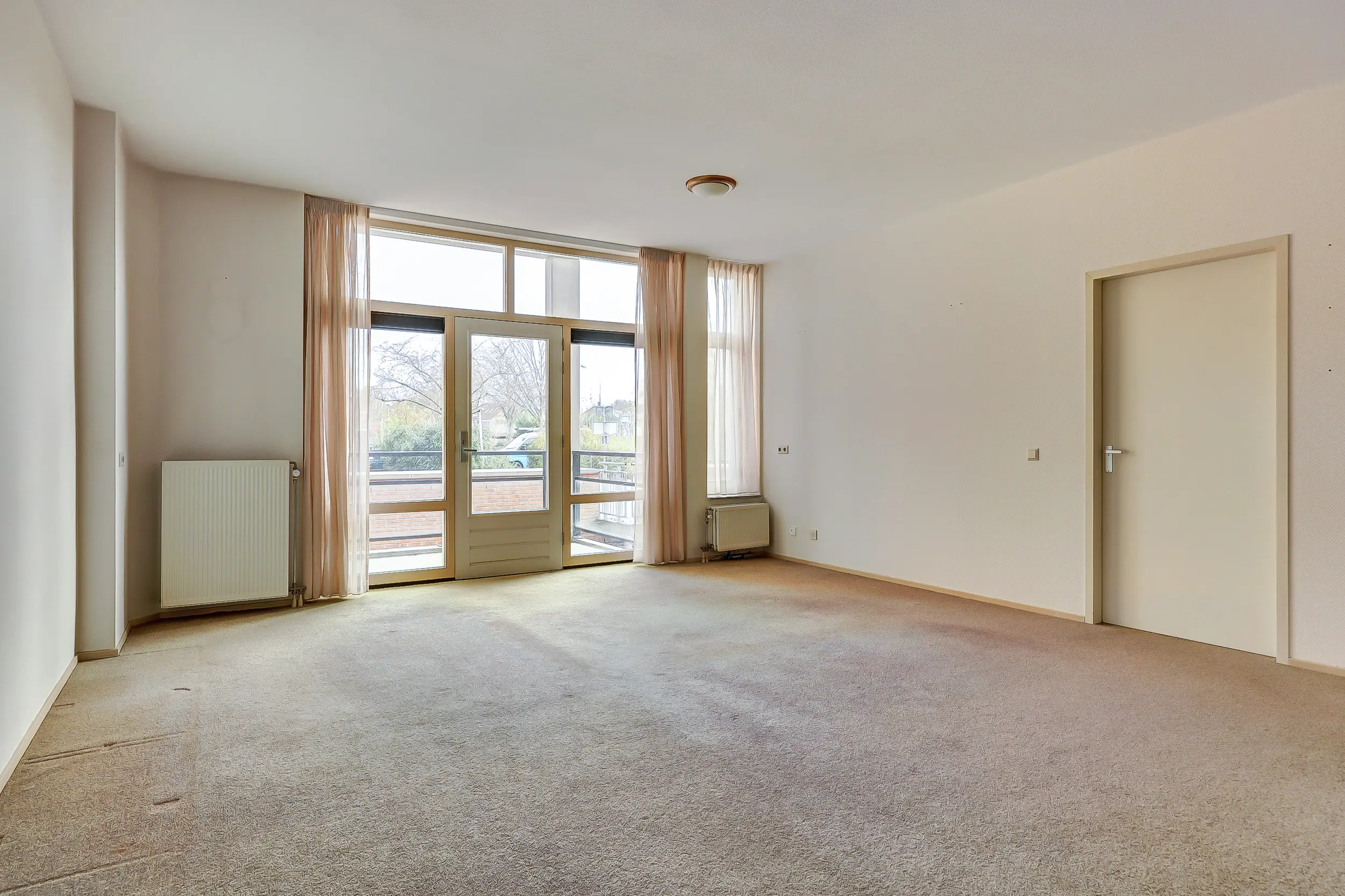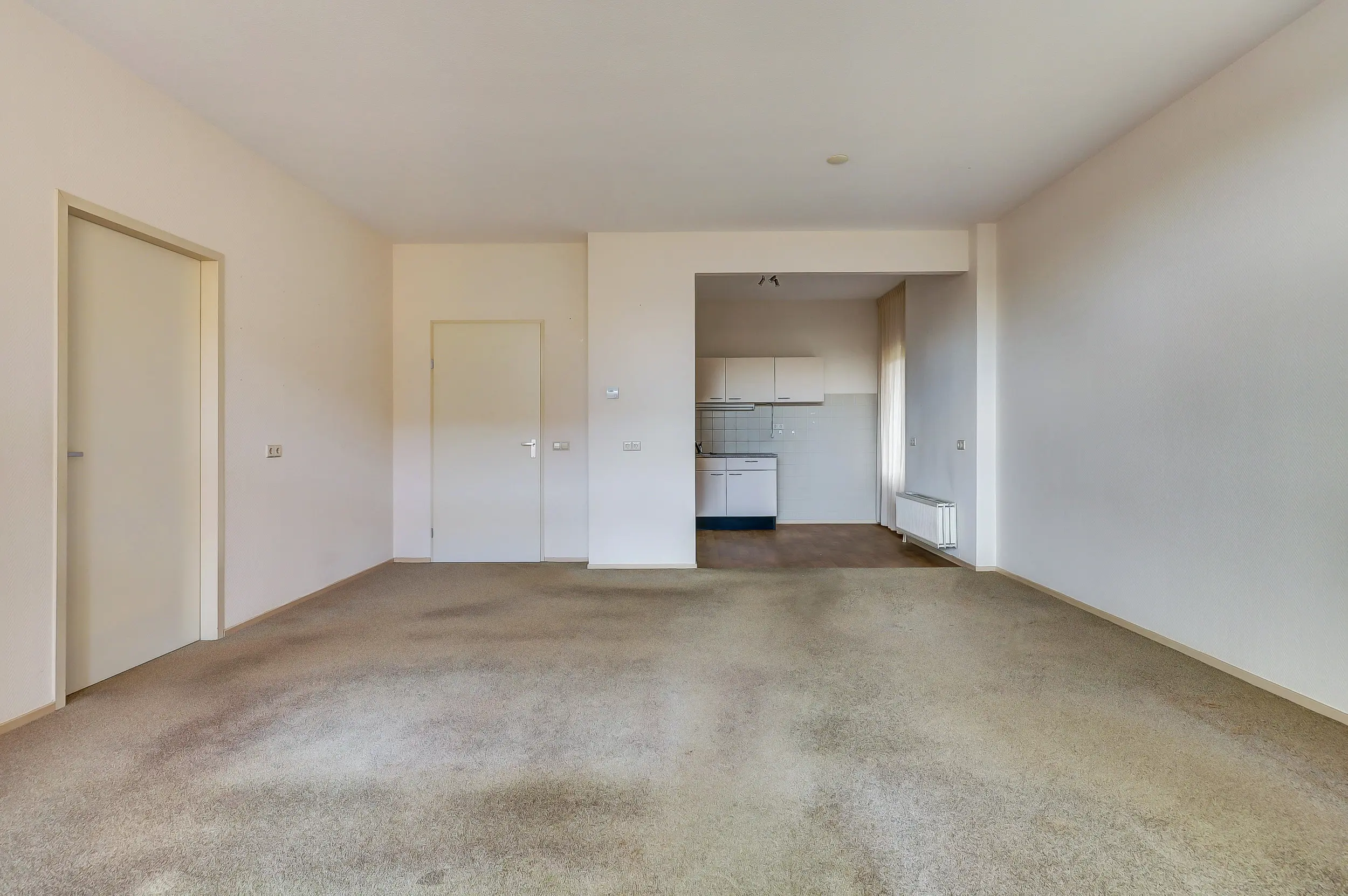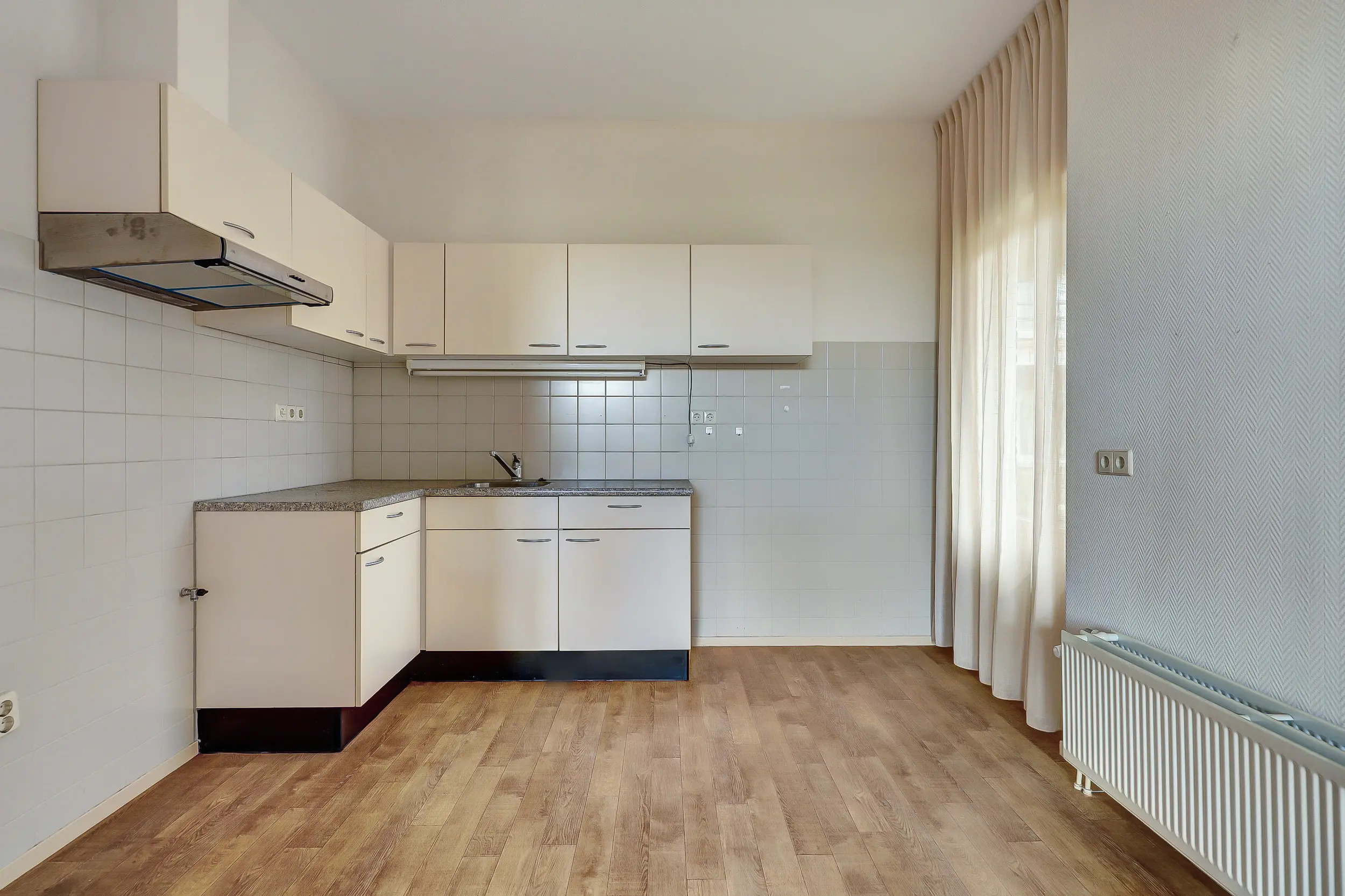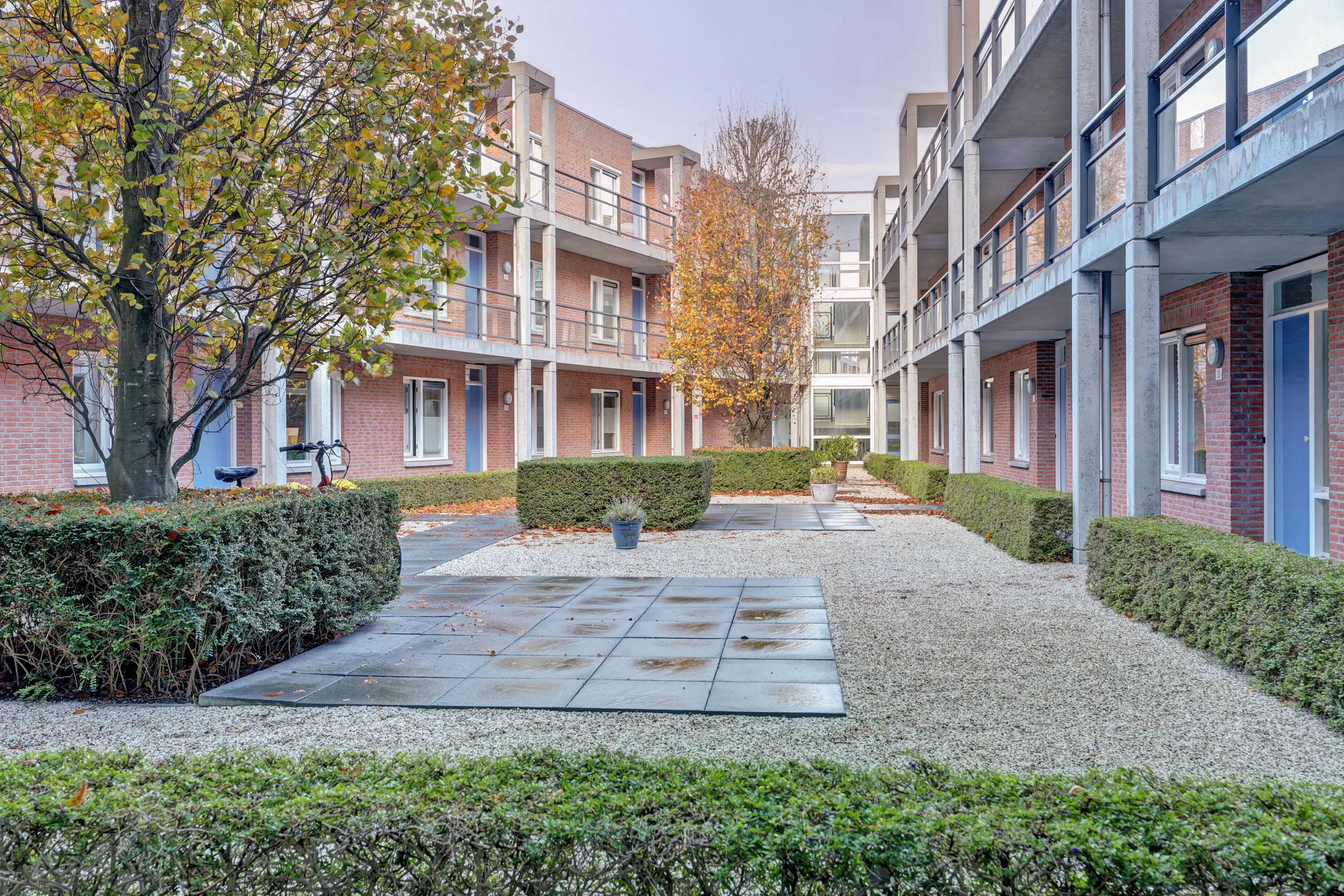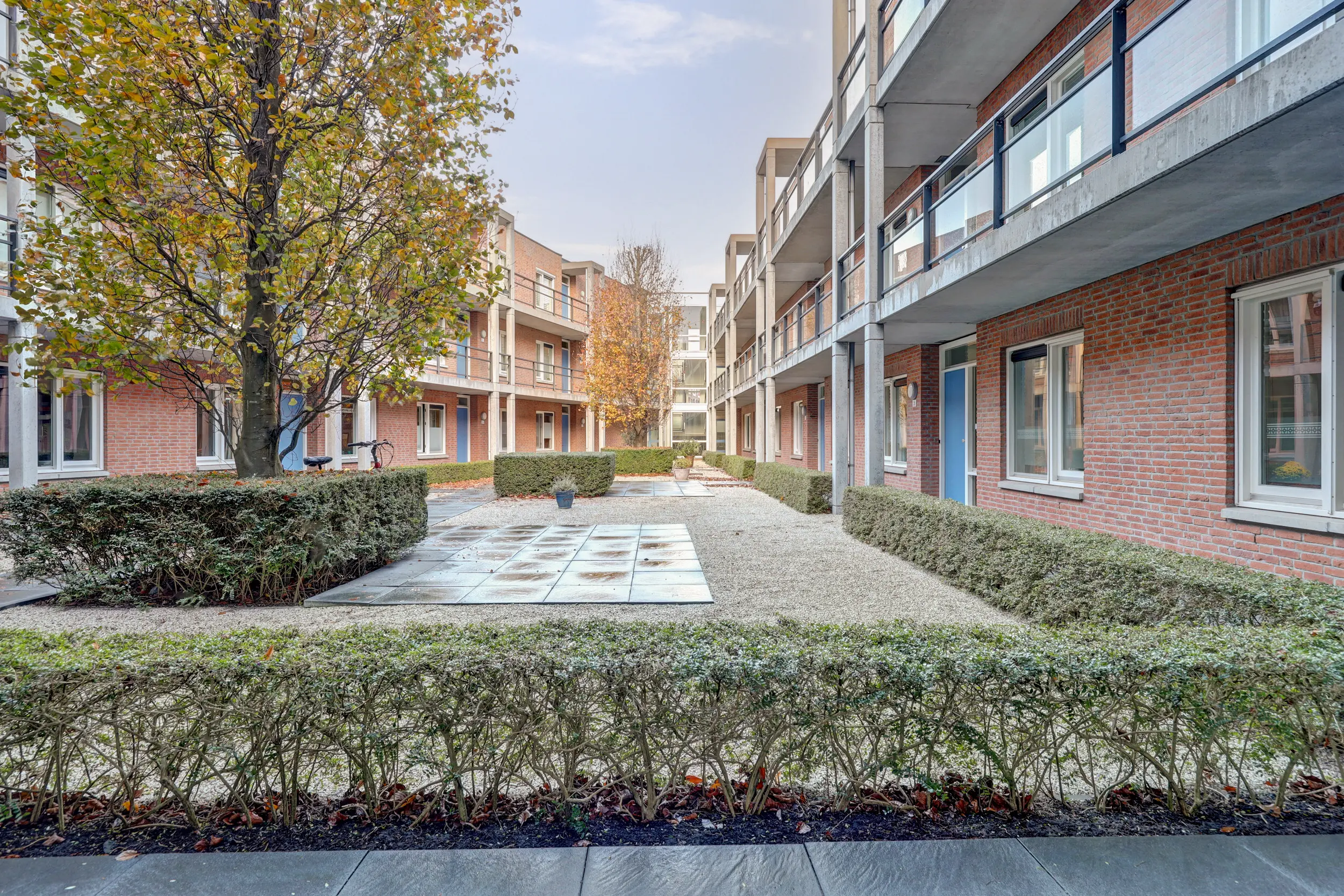 De ruime woonkamer ligt centraal in het huis en is voorzien van een fijn balkon. De open keuken (Bruynzeel) in L-vormige opstelling is voorzien van voldoende bergkasten. Vanaf hier een leuk zicht op de binnentuin. Grenzend aan de woonkamer is een van de twee slaapkamers gelegen. De badkamer is vanuit de hal en slaapkamer bereikbaar. De ruime betegelde badkamer is voorzien van een douche en wastafel. De 2e slaapkamer grenst aan de entree/hal en kijk uit op de binnentuin.