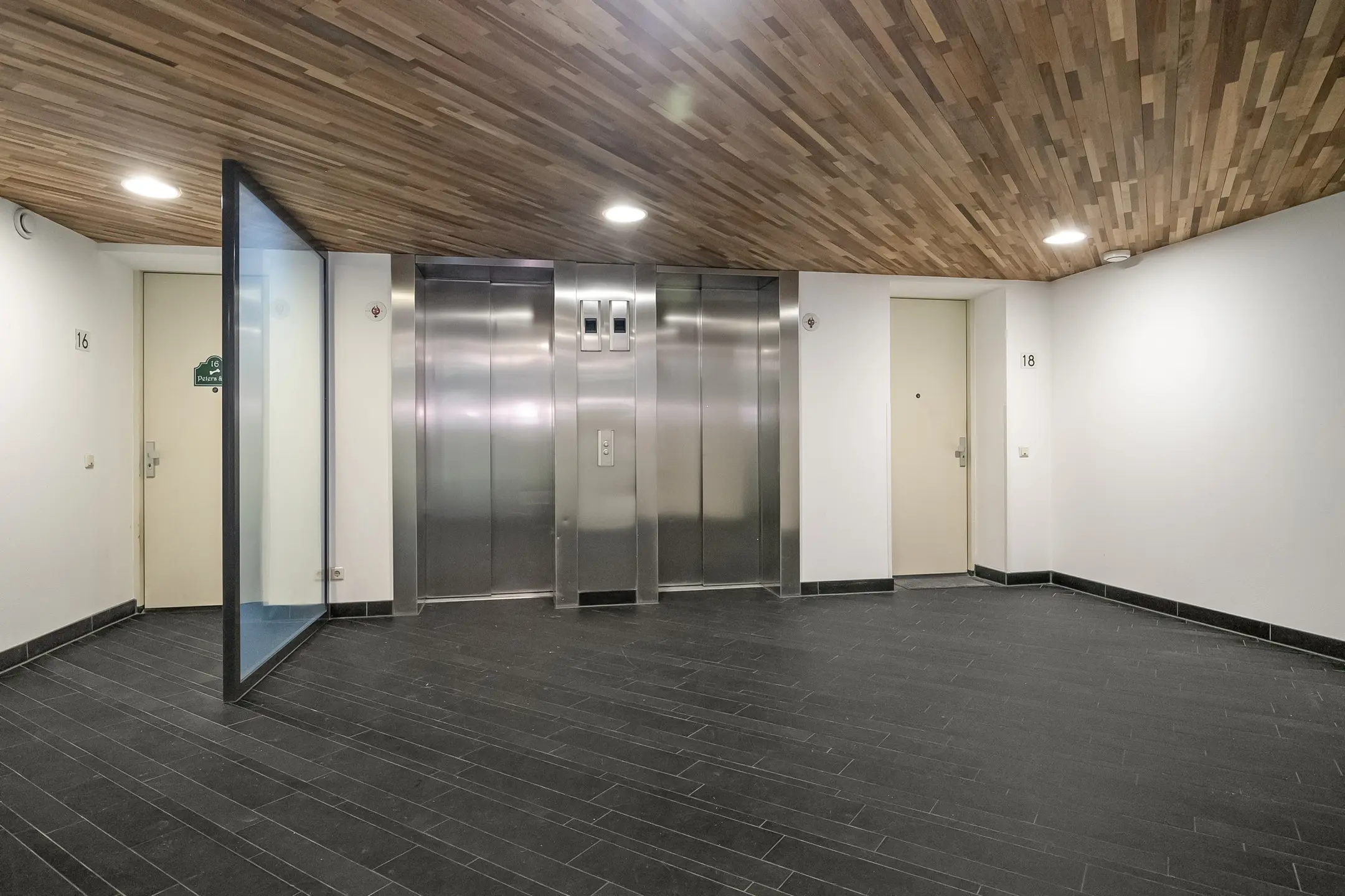 Begane grond: De indrukwekkende entree van 'Het Oosterbaken' straalt luxe uit, met een hoogte van twee verdiepingen en gebruik van hoogwaardige materialen zoals glas en hout. De afgesloten entree heeft een brievenbussentableau en biedt toegang tot een dubbele liftinstallatie, die automatisch bediend wordt. De entreehal, corridor en de lift zijn keurig verzorgd en goed onderhouden.