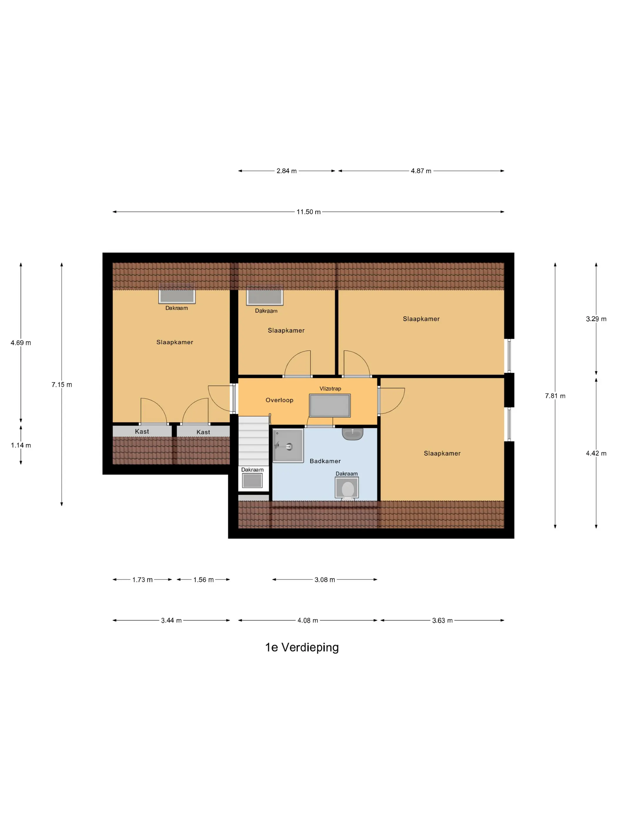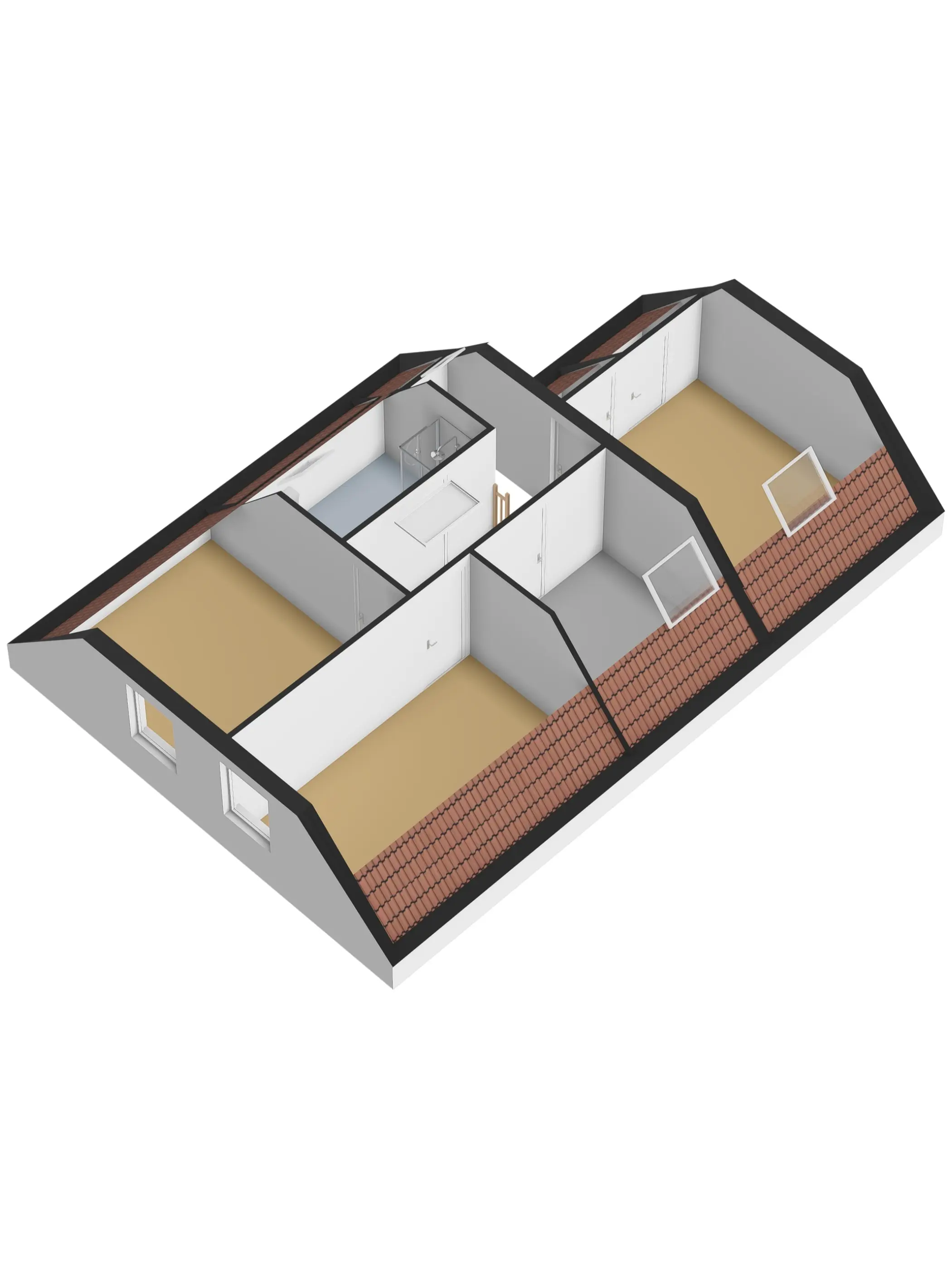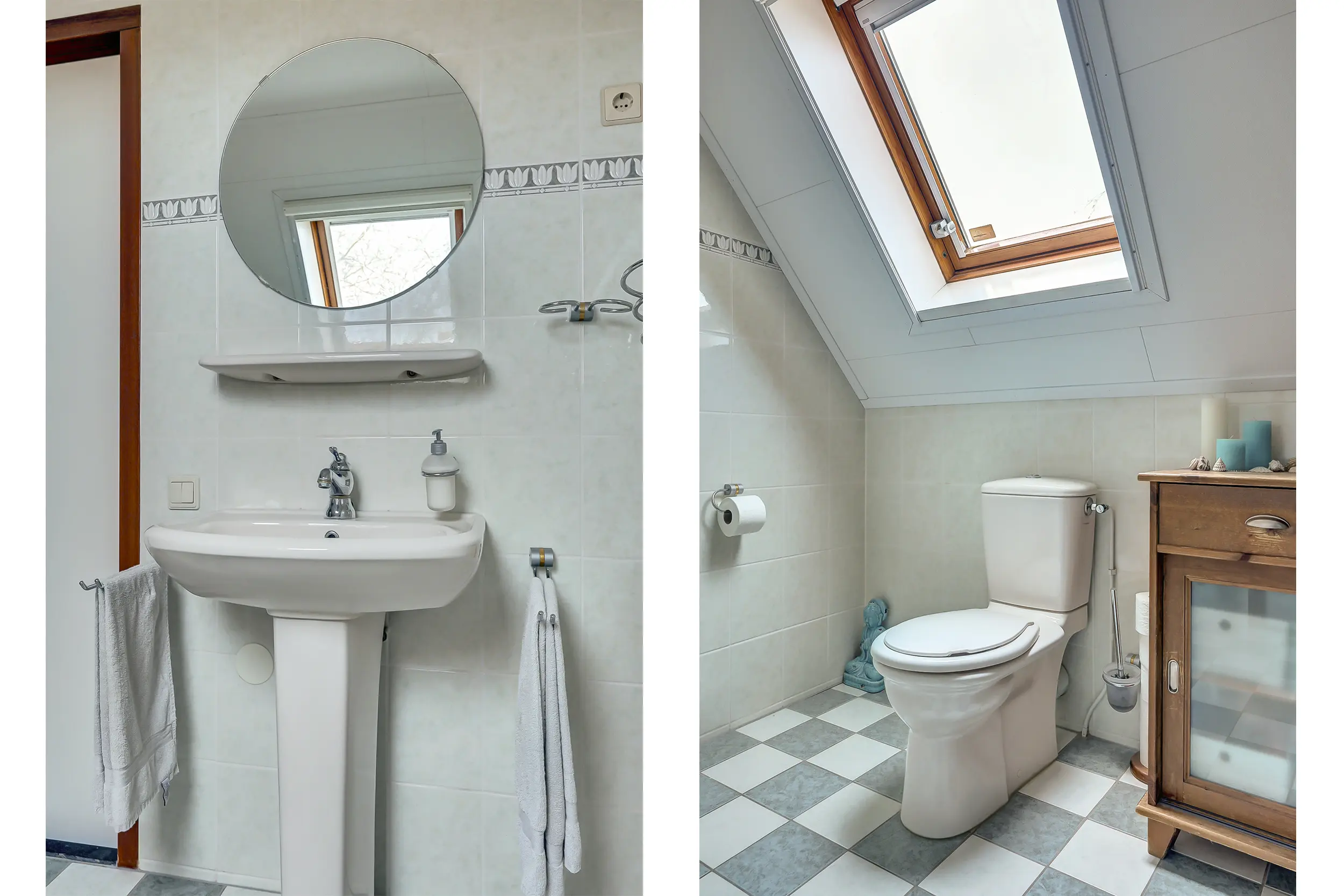 Hier tref je 4 ruime slaapkamers waarvan 1 met vaste kasten. De badkamer is voorzien van douche, toilet en wastafel.