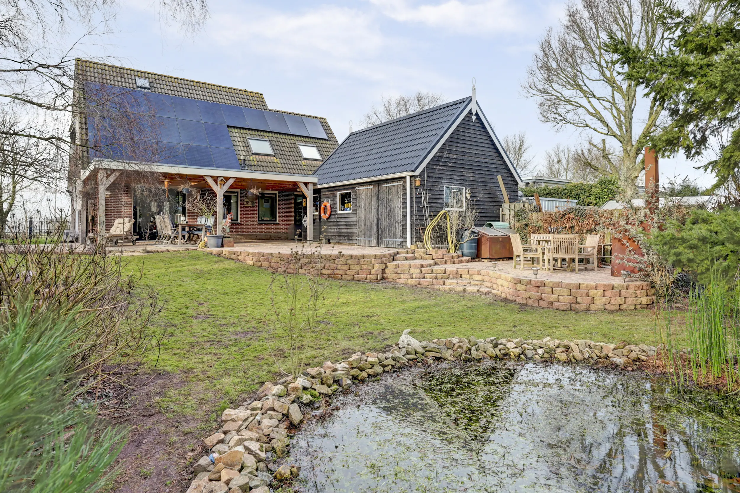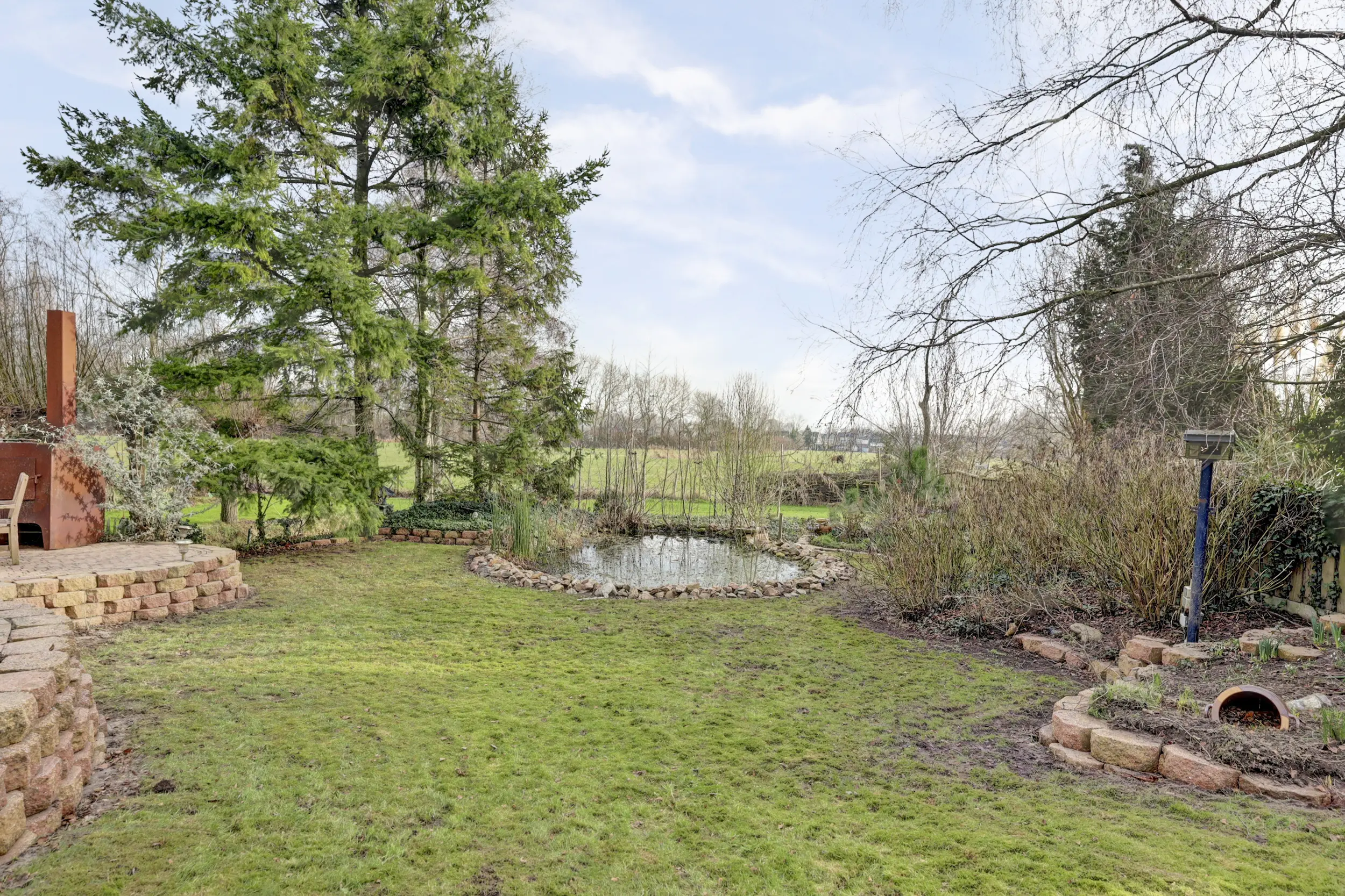Vanuit de woonkamer heb je schitterend zicht op je eigen stuk grond van 2.720m2 aan de voorzijde, de openslaande deuren aan de achterzijde geven toegang tot de grote tuin met overkapping.