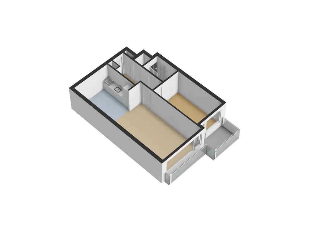Aan de achterzijde van de woning bevindt zich de slaapkamer, die direct toegang biedt tot het balkon.