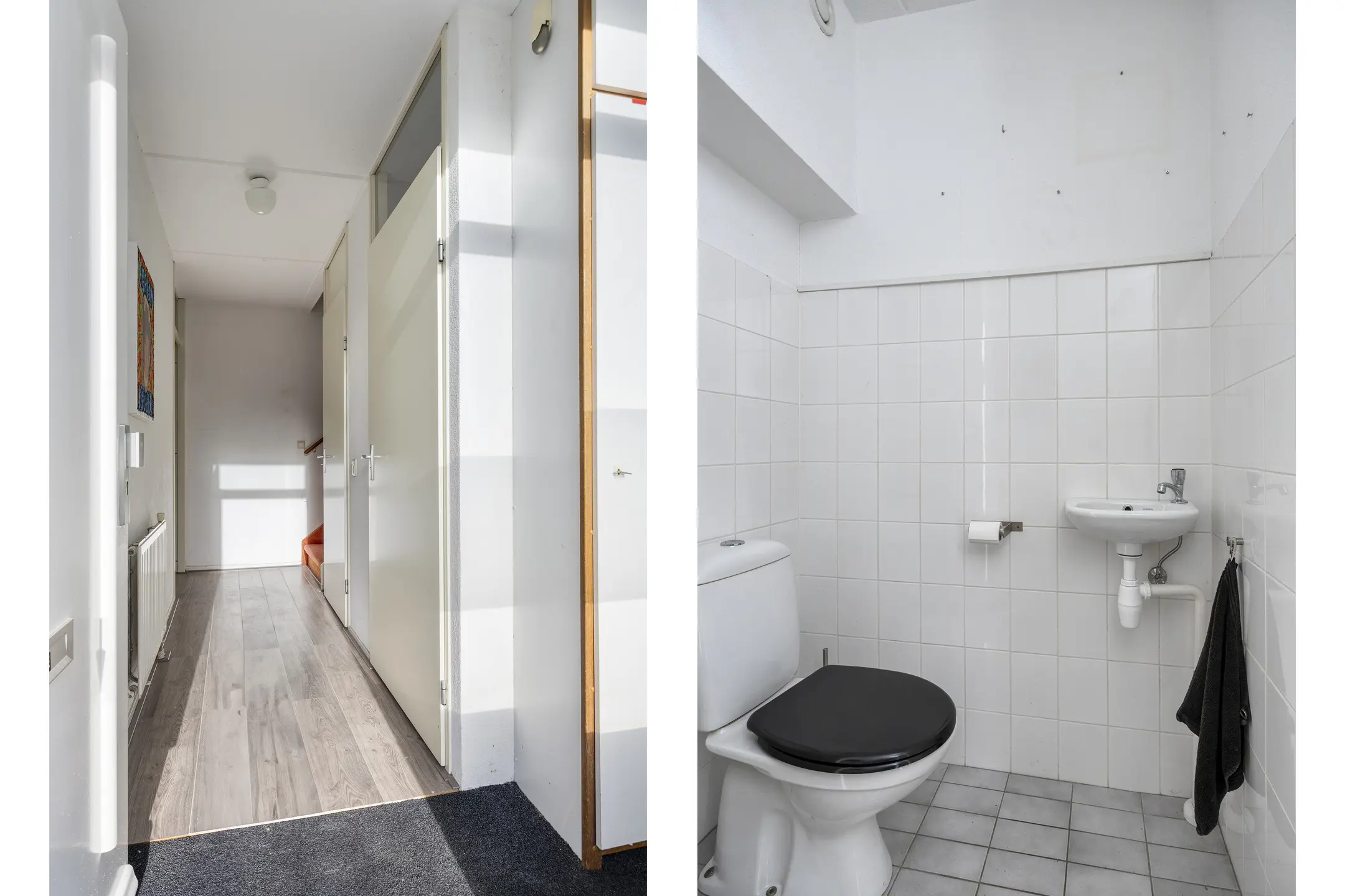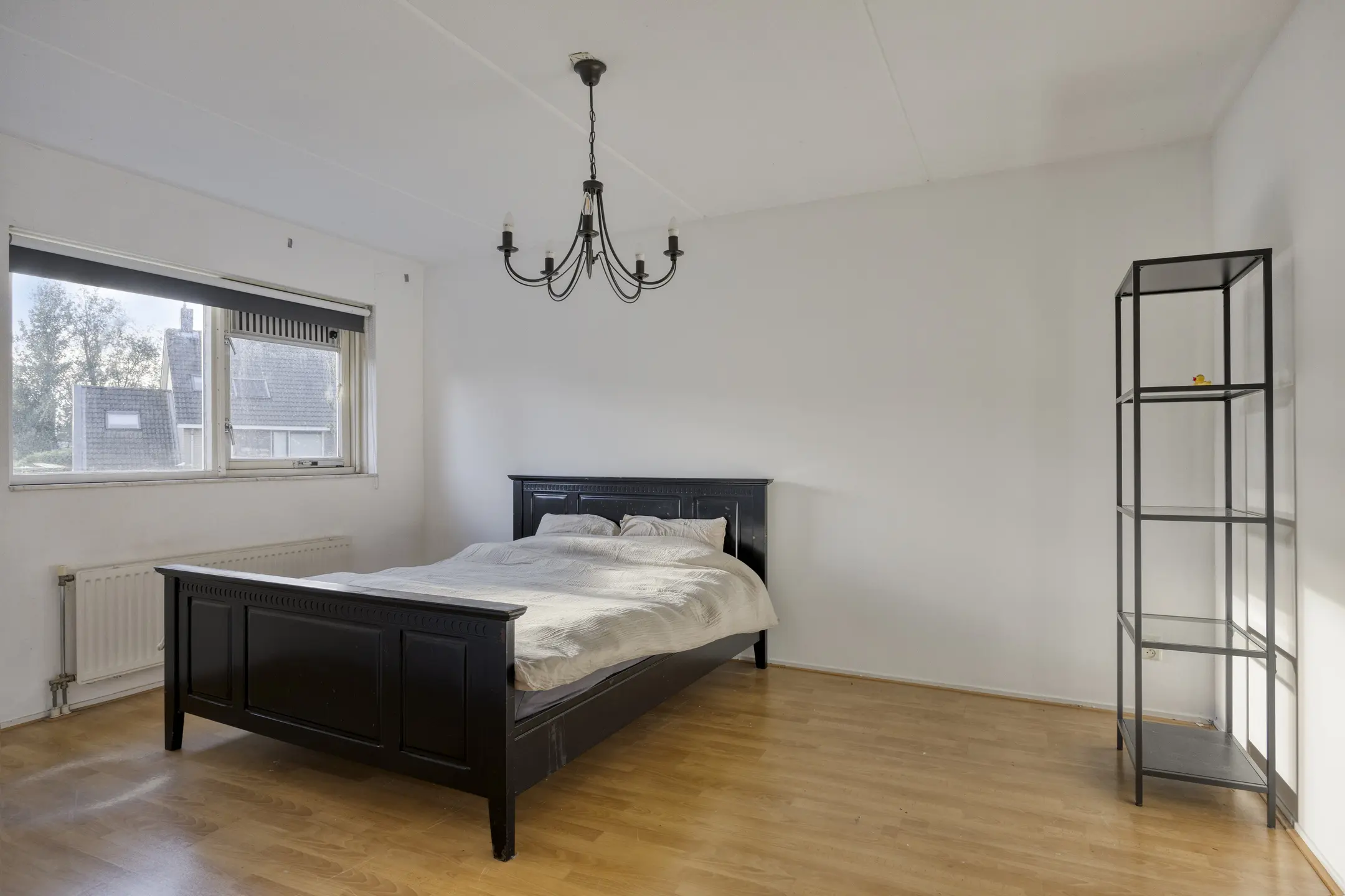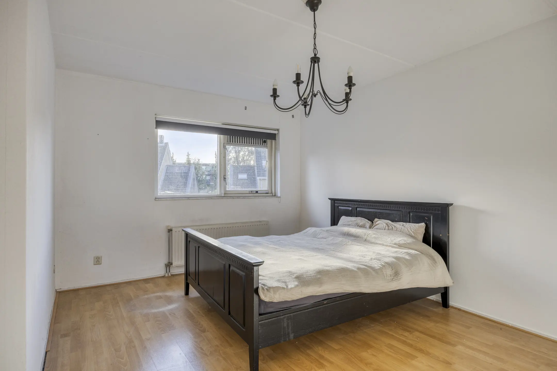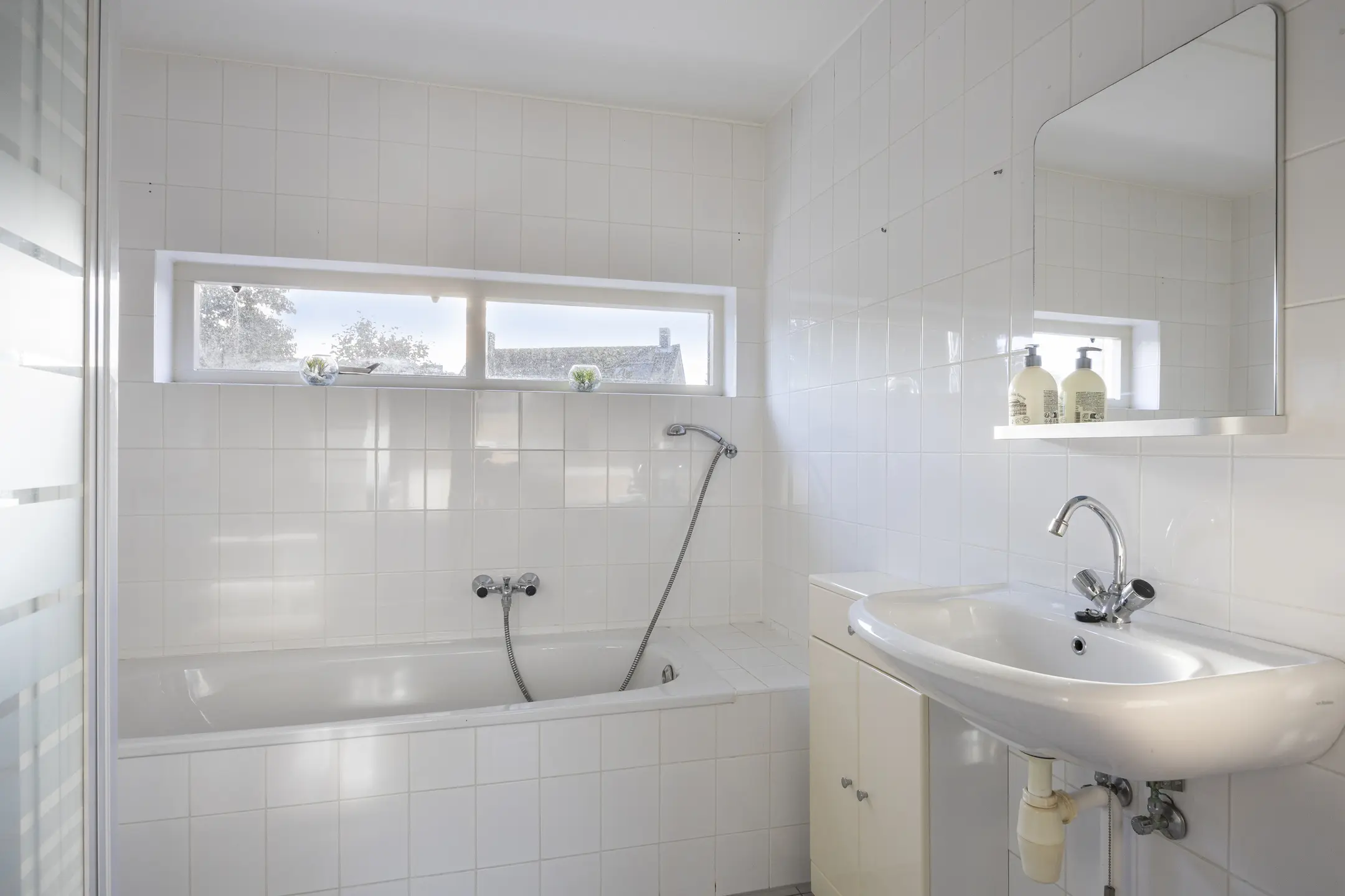 Overloop met separate toiletruimte met fonteintje. De badkamer is geheel betegeld en is voorzien van een ligbad, douche en wastafel. Prettig is het raam dat open kan zodat er naast de mechanische ventilatie ook op een natuurlijke manier geventileerd kan worden. Ruime slaapkamer aan de voorzijde van de woning. Slaapkamer twee en drie liggen aan de achterzijde en zijn eveneens kamers van een fijn formaat.