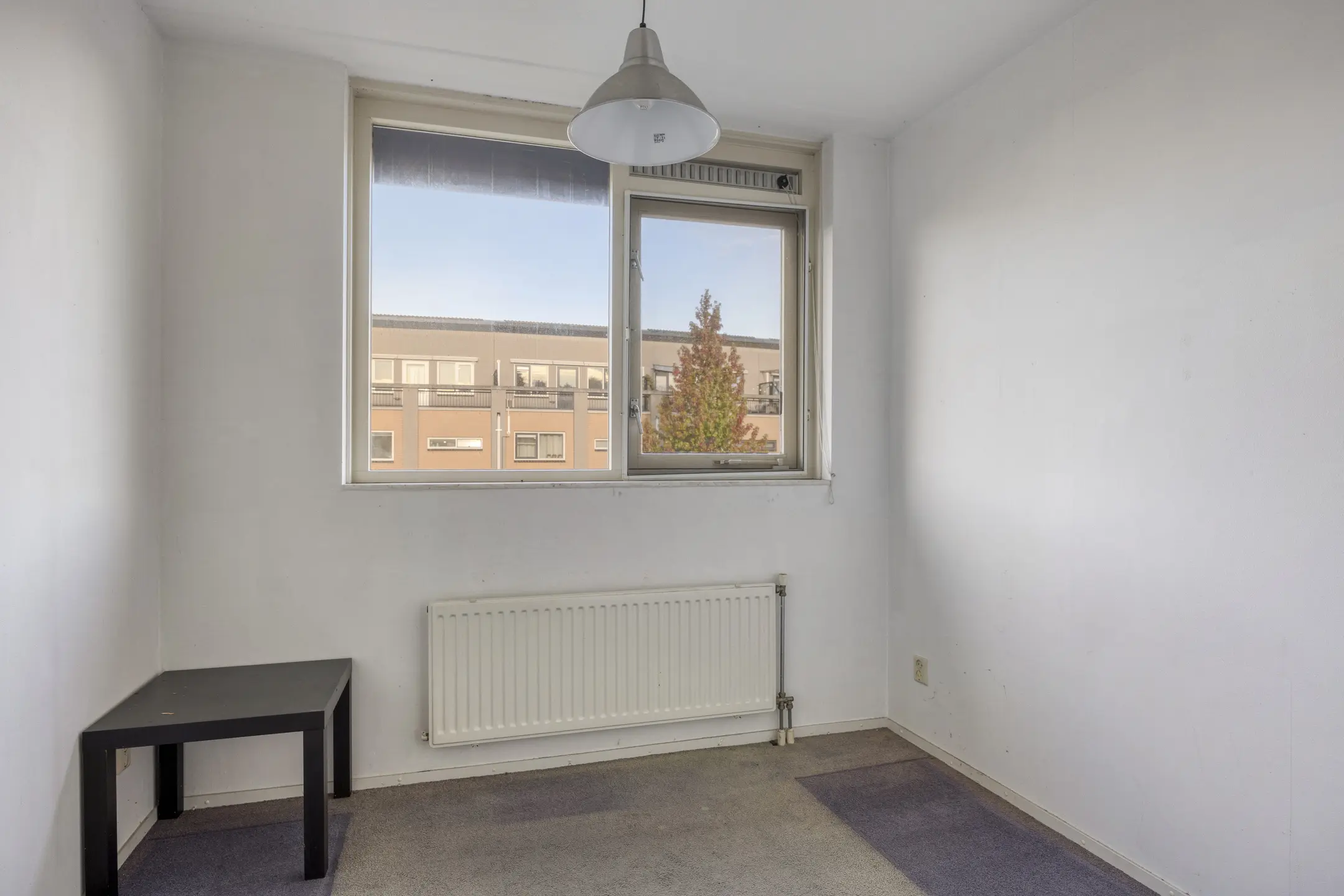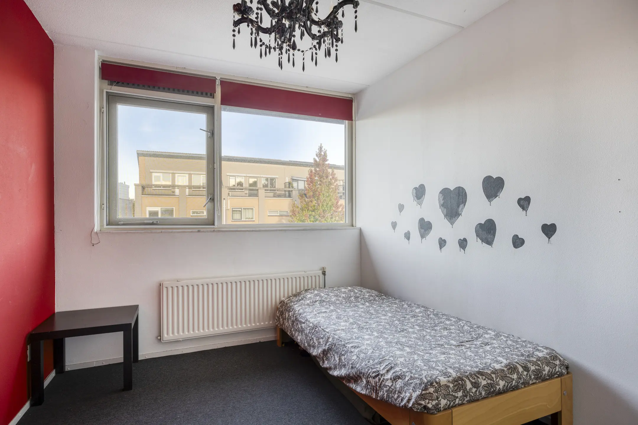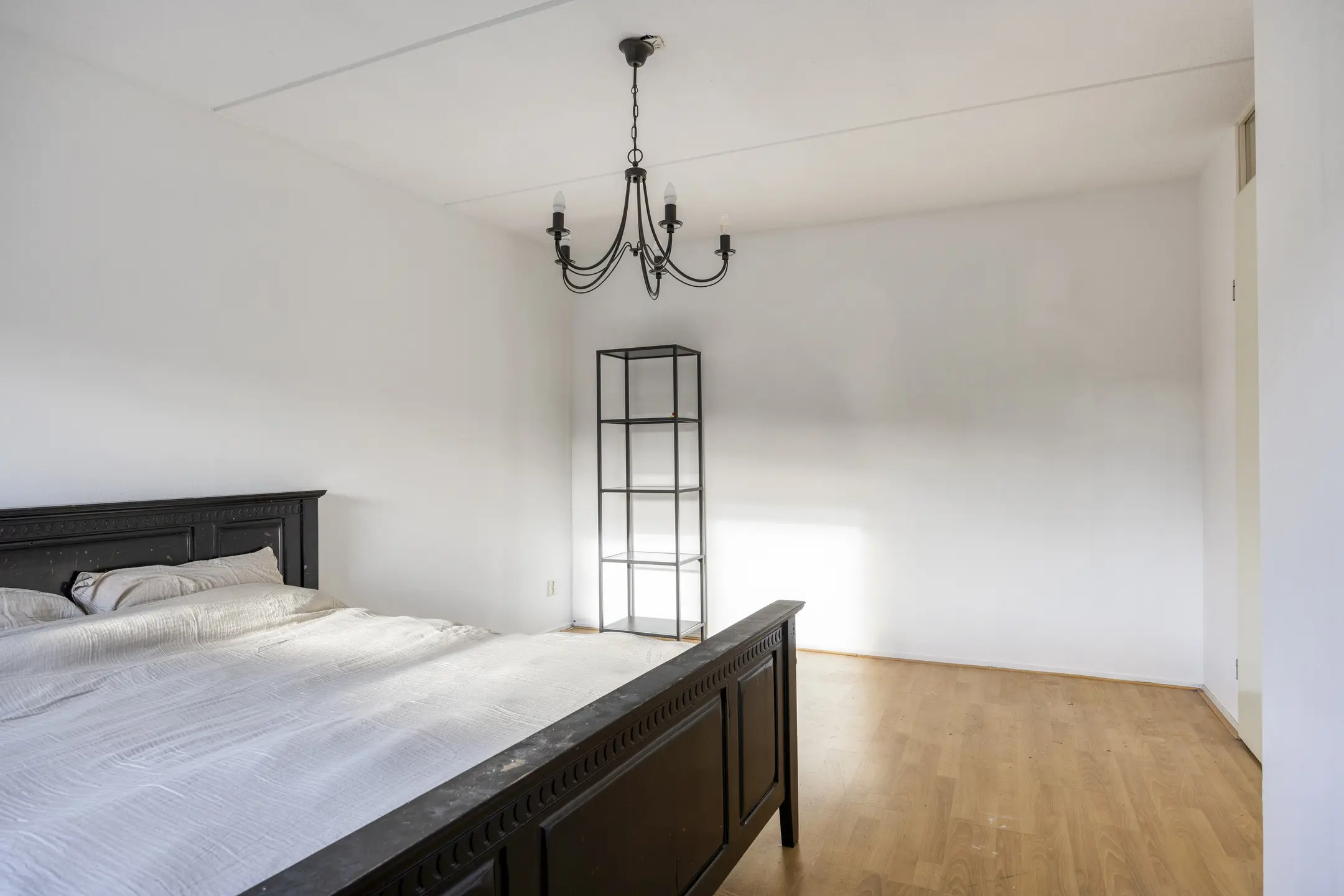 Overloop met separate toiletruimte met fonteintje. De badkamer is geheel betegeld en is voorzien van een ligbad, douche en wastafel. Prettig is het raam dat open kan zodat er naast de mechanische ventilatie ook op een natuurlijke manier geventileerd kan worden. Ruime slaapkamer aan de voorzijde van de woning. Slaapkamer twee en drie liggen aan de achterzijde en zijn eveneens kamers van een fijn formaat.