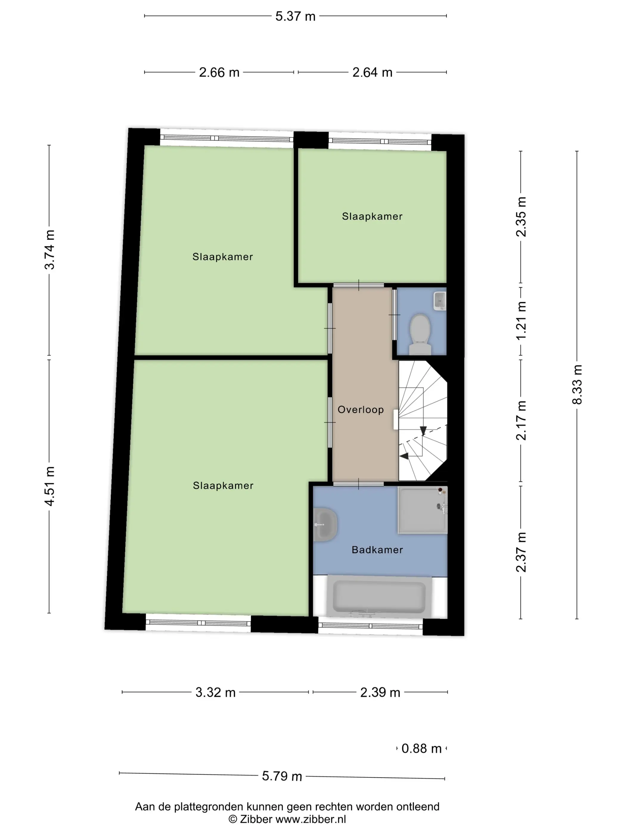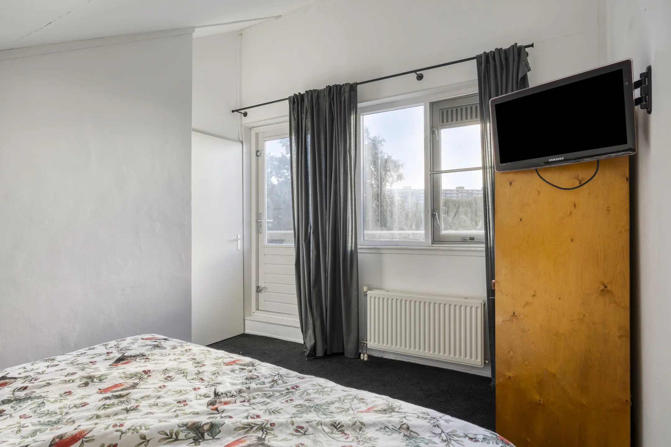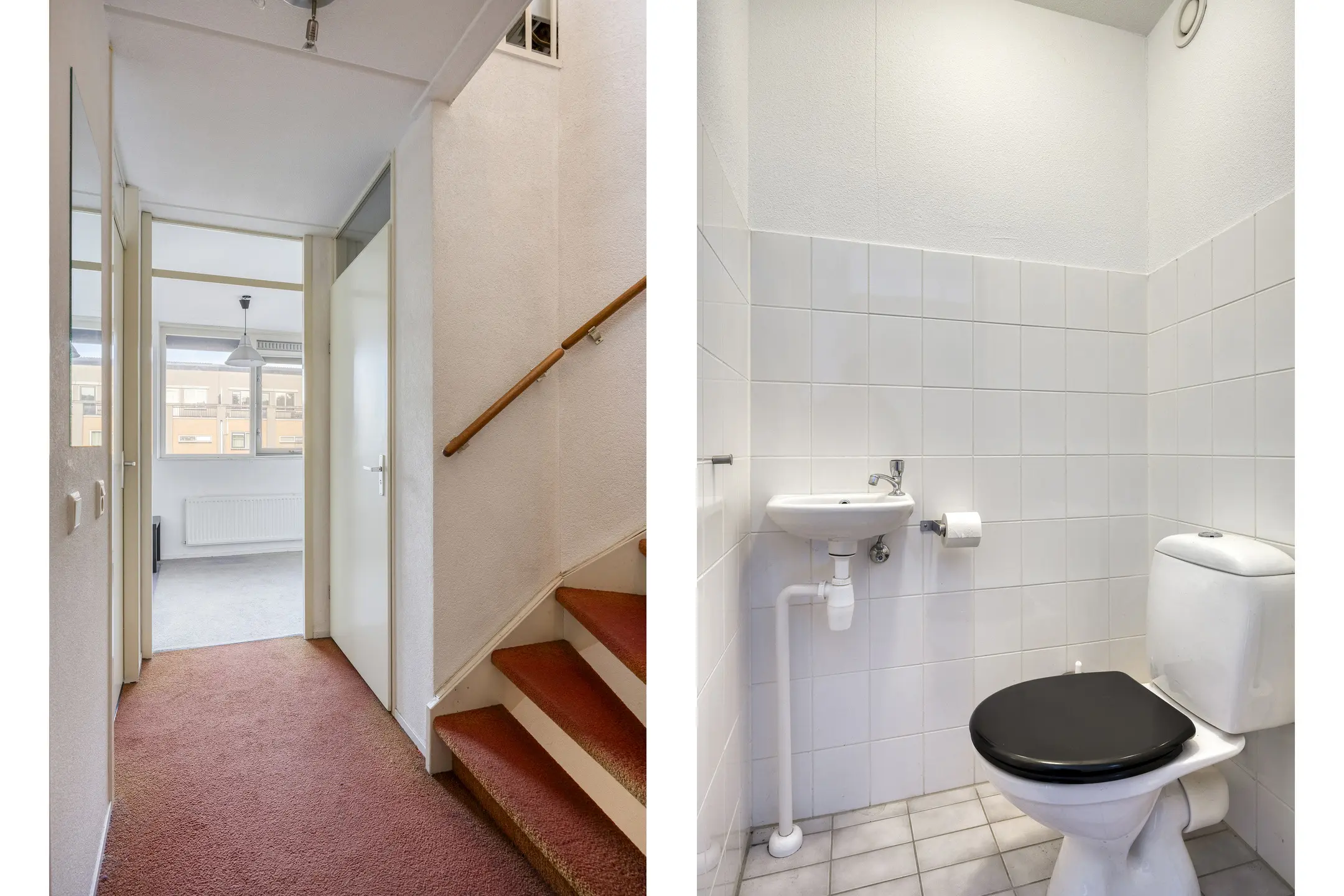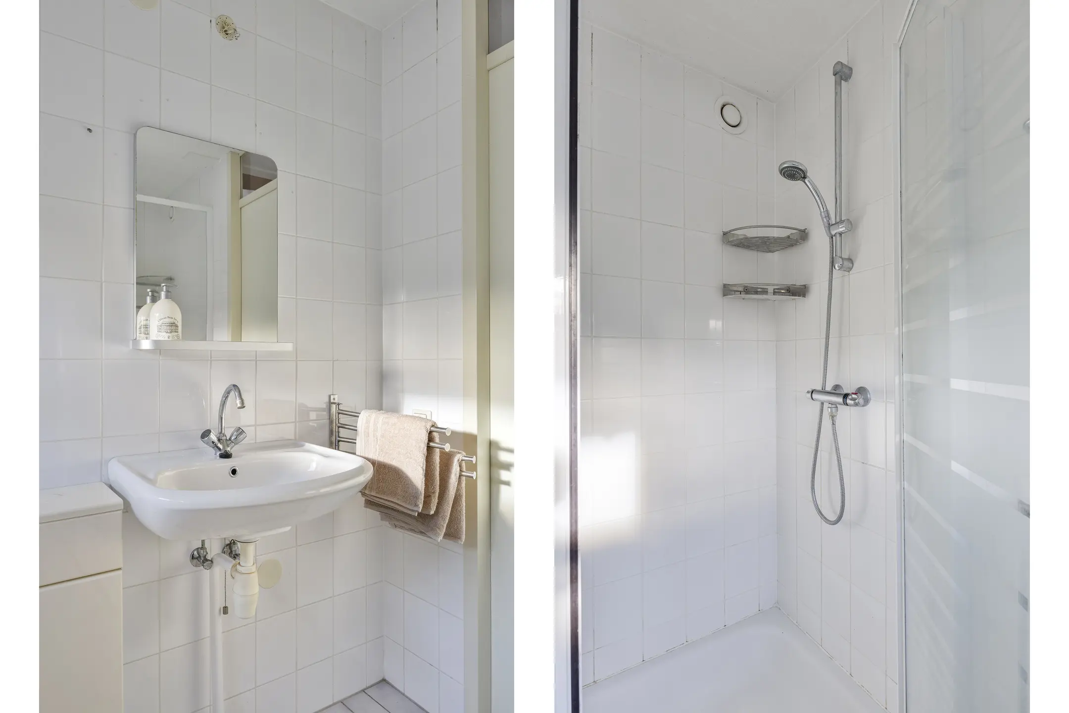 Overloop met separate toiletruimte met fonteintje. De badkamer is geheel betegeld en is voorzien van een ligbad, douche en wastafel. Prettig is het raam dat open kan zodat er naast de mechanische ventilatie ook op een natuurlijke manier geventileerd kan worden. Ruime slaapkamer aan de voorzijde van de woning. Slaapkamer twee en drie liggen aan de achterzijde en zijn eveneens kamers van een fijn formaat.