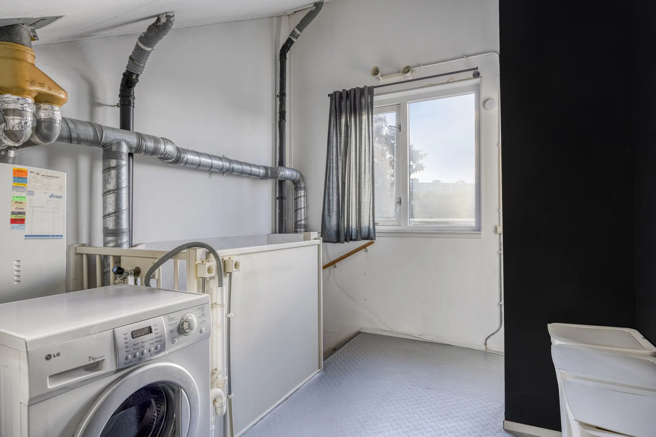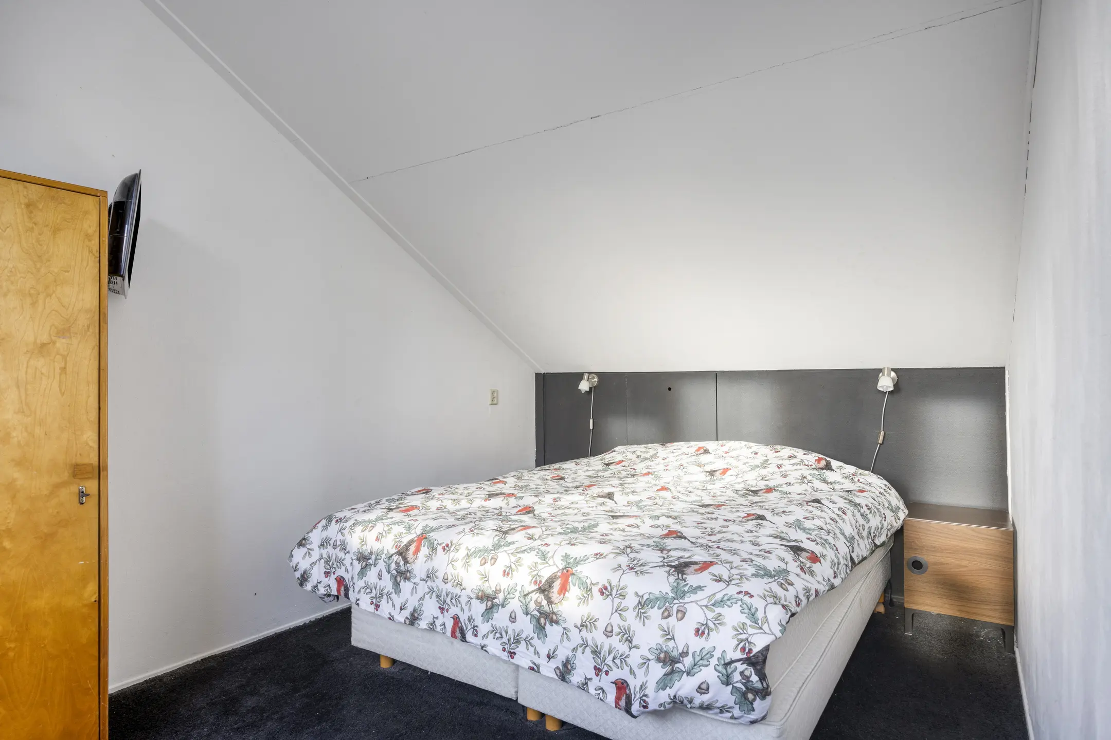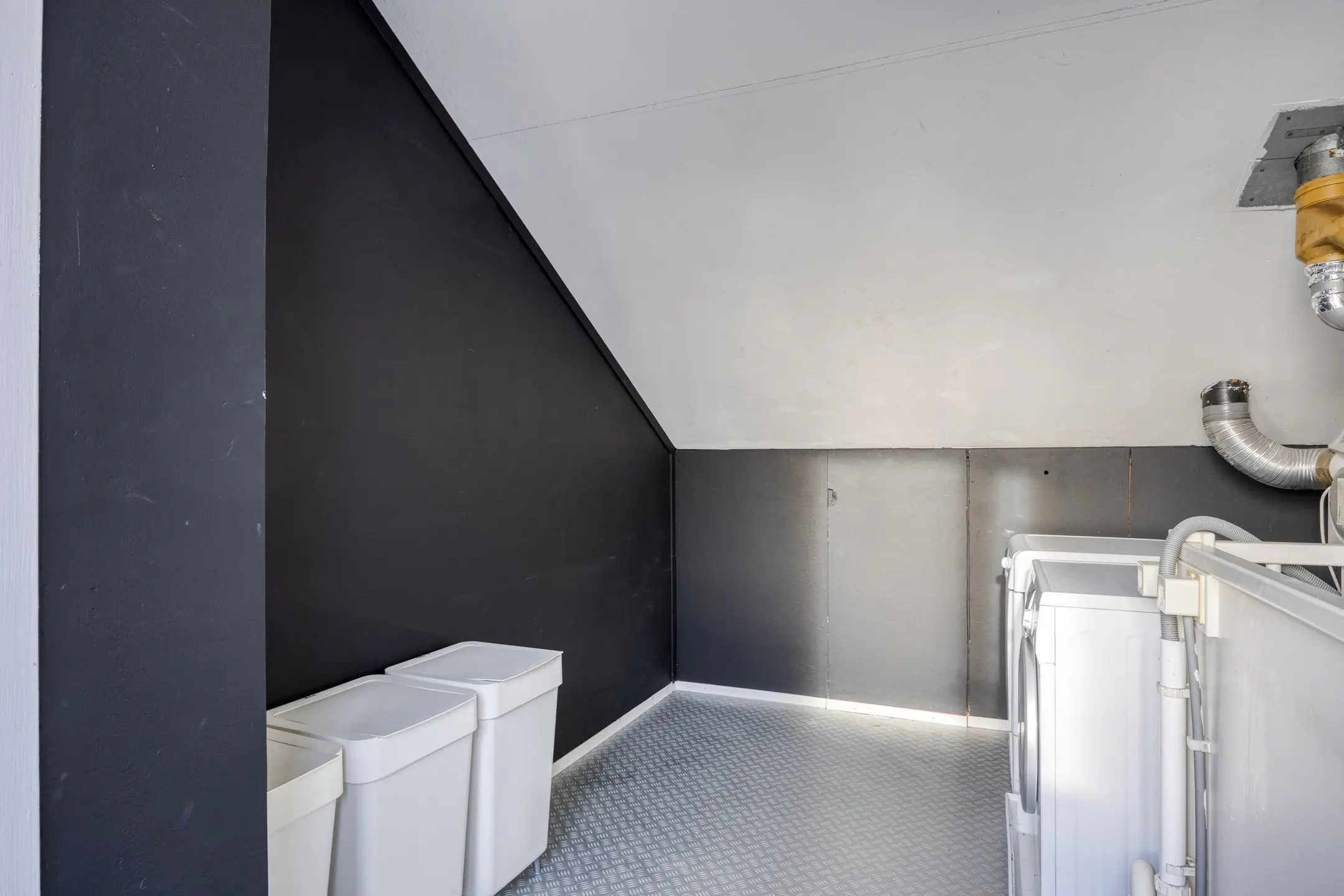 Overloop met de aansluitingen voor de wasmachine, de mechanische ventilatie unit en de C.V.-combiketel. Ruime vierde slaapkamer met een deur naar het op het zuid oosten gelegen dakterras. waar u heerlijk van de ochtendzon kunt genieten.