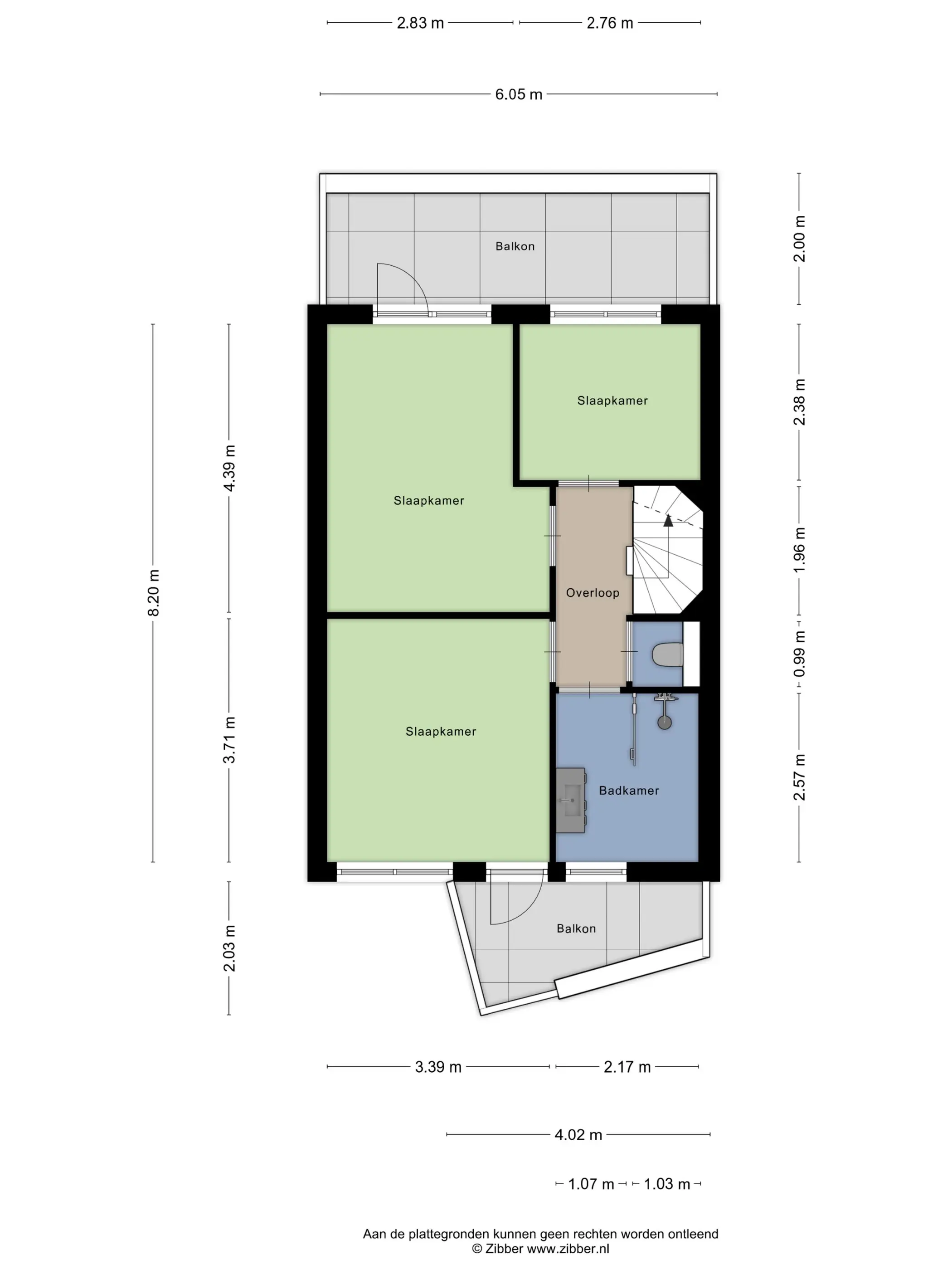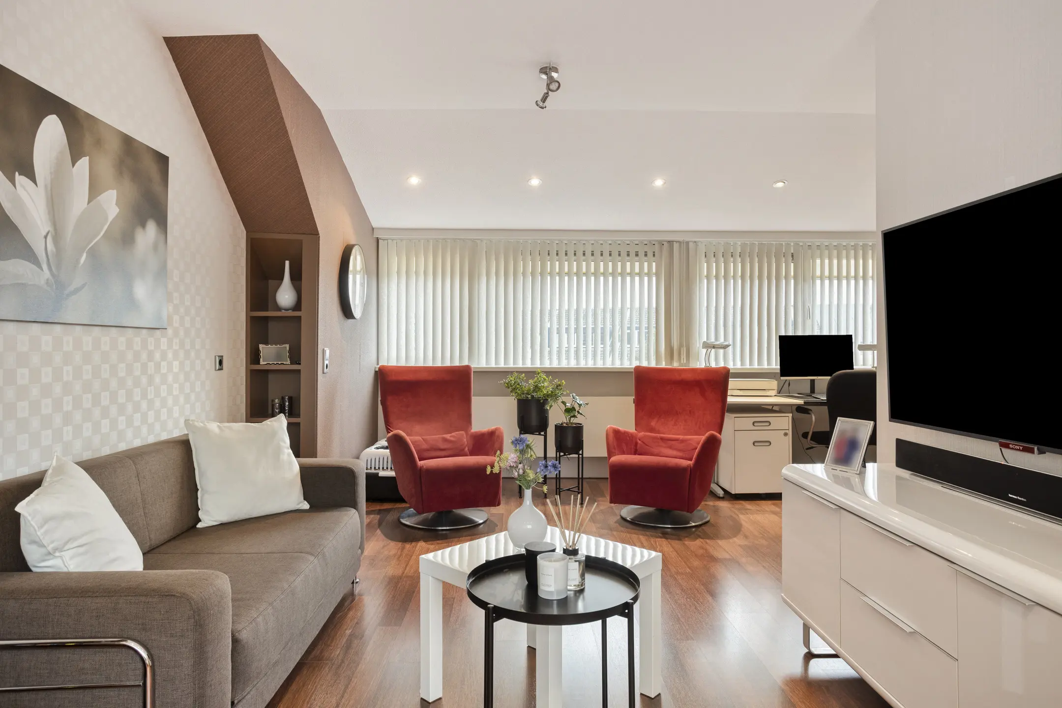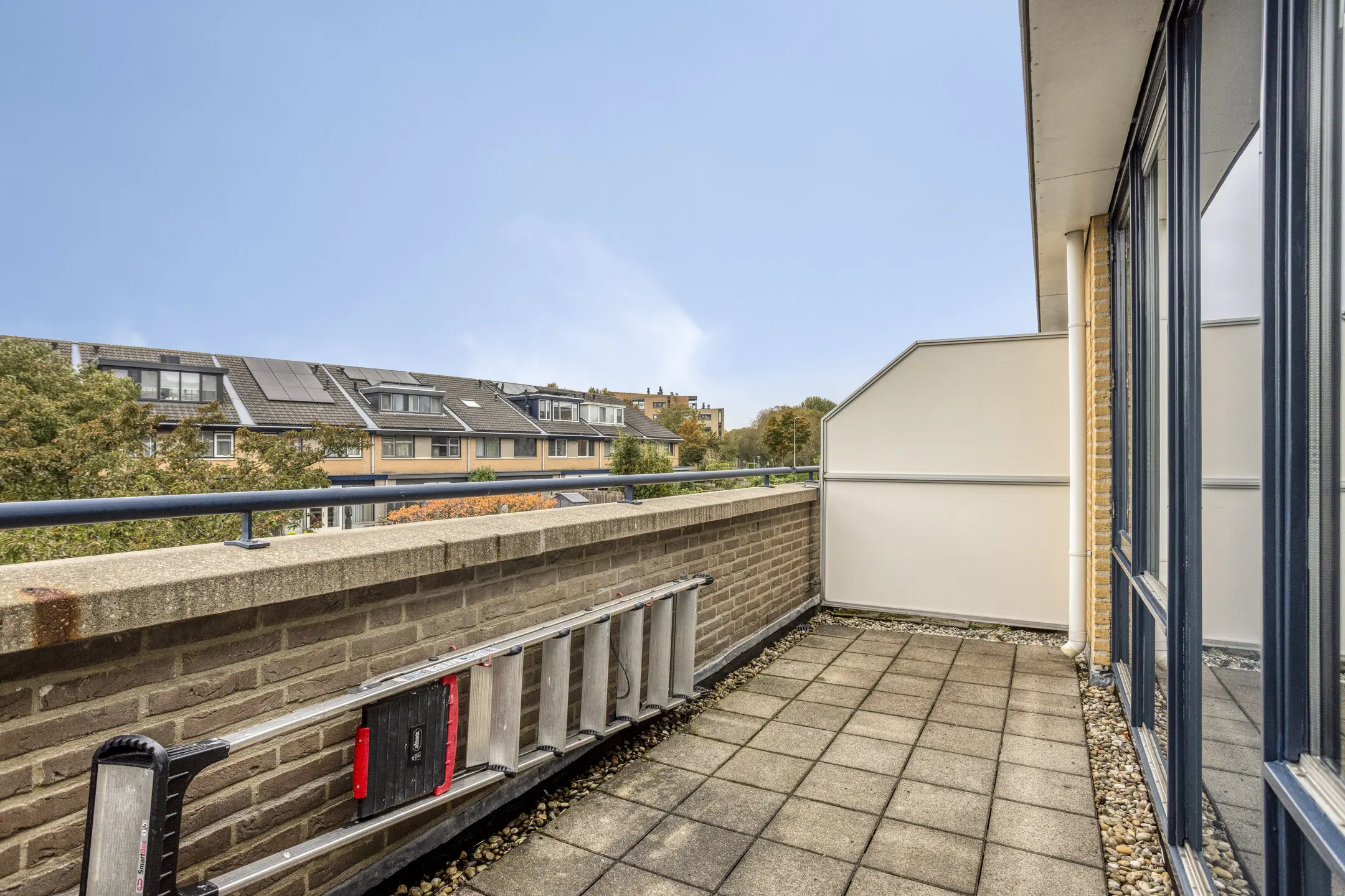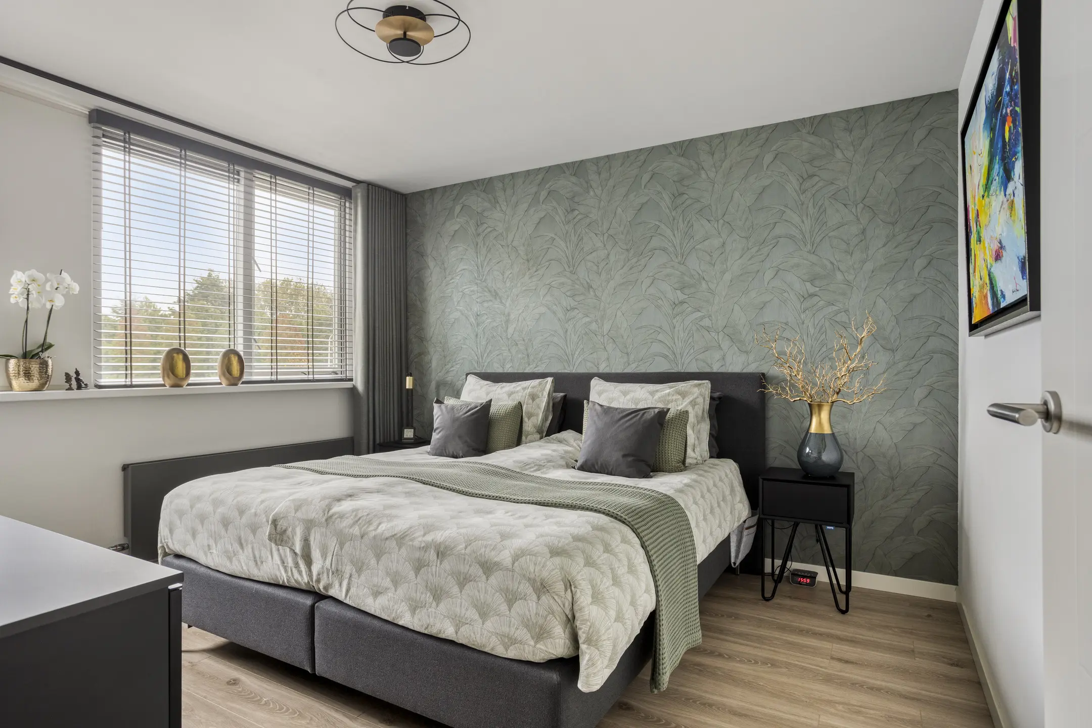 Overloop met toegang tot de vertrekken, ruime hoofdslaapkamer aan de voorzijde van het huis met deur naar het balkon. Aan de achterzijde van de woning bevinden zich nog twee slaapkamers, beiden van een fijn formaat. De grootste van de twee heeft toegang tot een riant balkon over de gehele breedte van de woning. Op de overloop en in de slaapkamers ligt een drempelloos doorgelegde laminaatvloer en de wanden zijn voorzien van behang.
