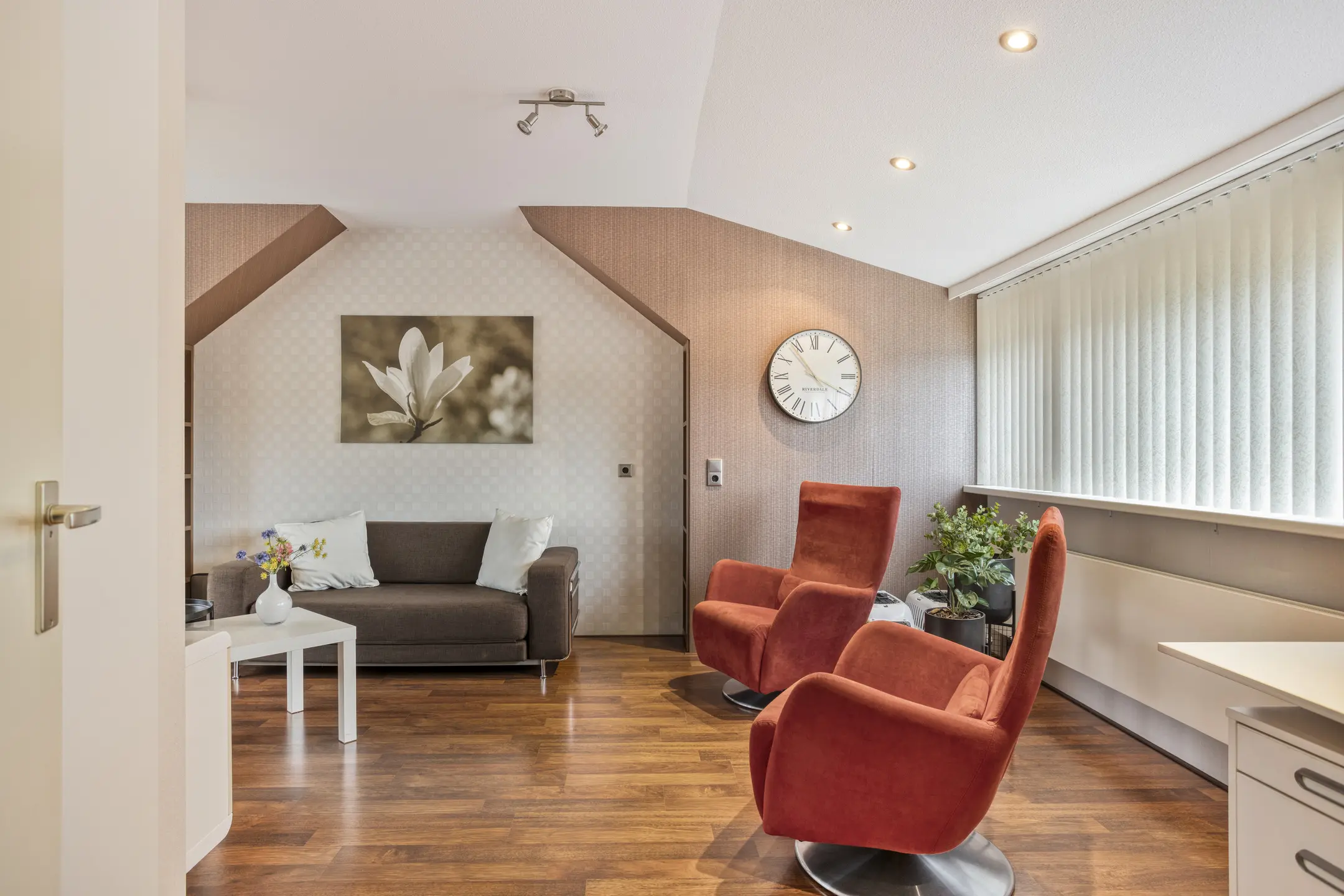 Binnen in huis voelt het licht en ruim, met fijne kamers en een grote zolder, een bijna zelfstandige woonruimte, waaraan je iedere invulling kan geven.