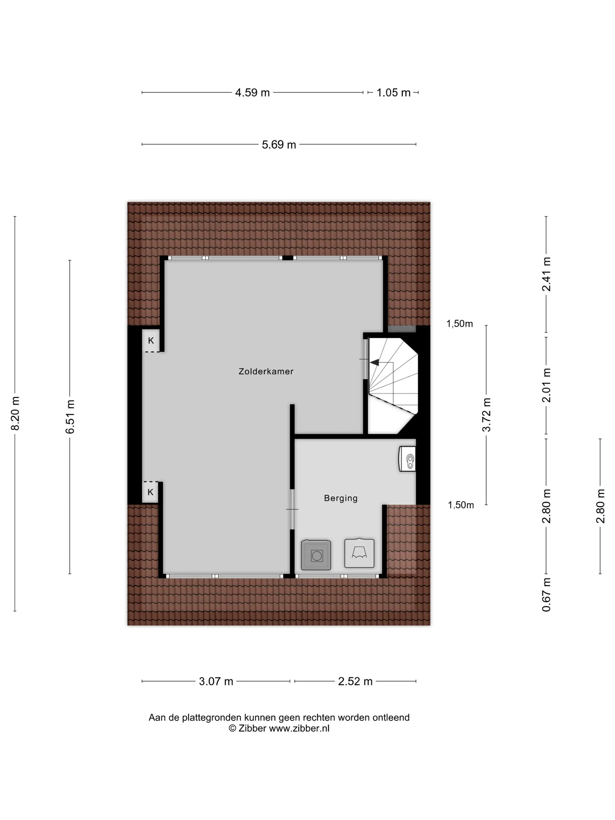 Ruime zolderverdieping welke door de aan twee zijden geplaatste dakkapellen is vergroot. De dakkapel aan de achterzijde is voorzien van een screen (handmatige bediening). Door de ramen aan beide zijden is dit een prettig lichte ruimte en op de vloer ligt laminaat. Er is een wasruimte aanwezig met de aansluitingen voor de wasmachine en droger. In deze ruimte hangt ook de in oktober 2025 vernieuwde C.V.-combiketel en de mechanische ventilatie unit. Het is desgewenst mogelijk om op deze verdieping een extra slaapkamer en badkamer te realiseren.