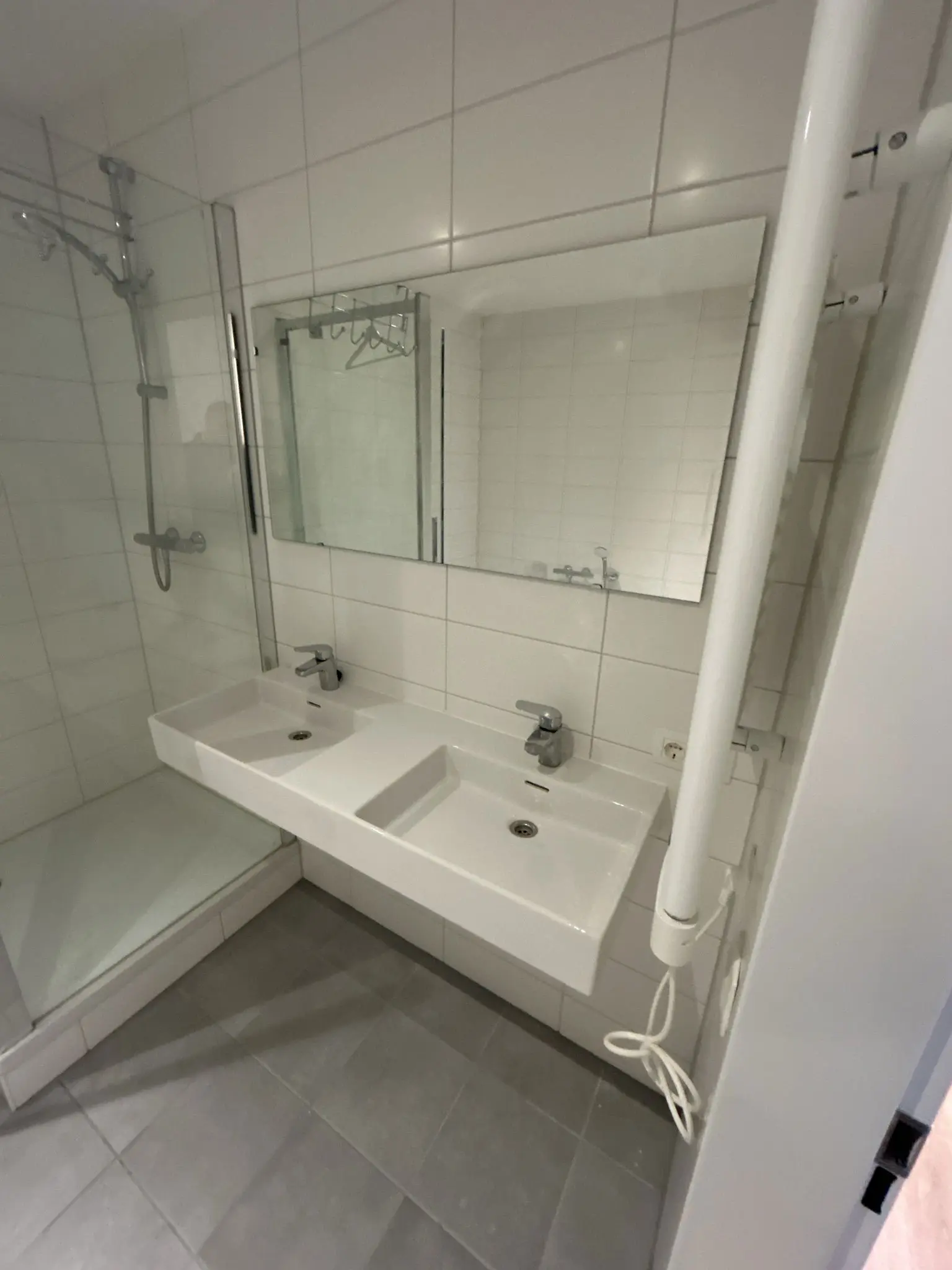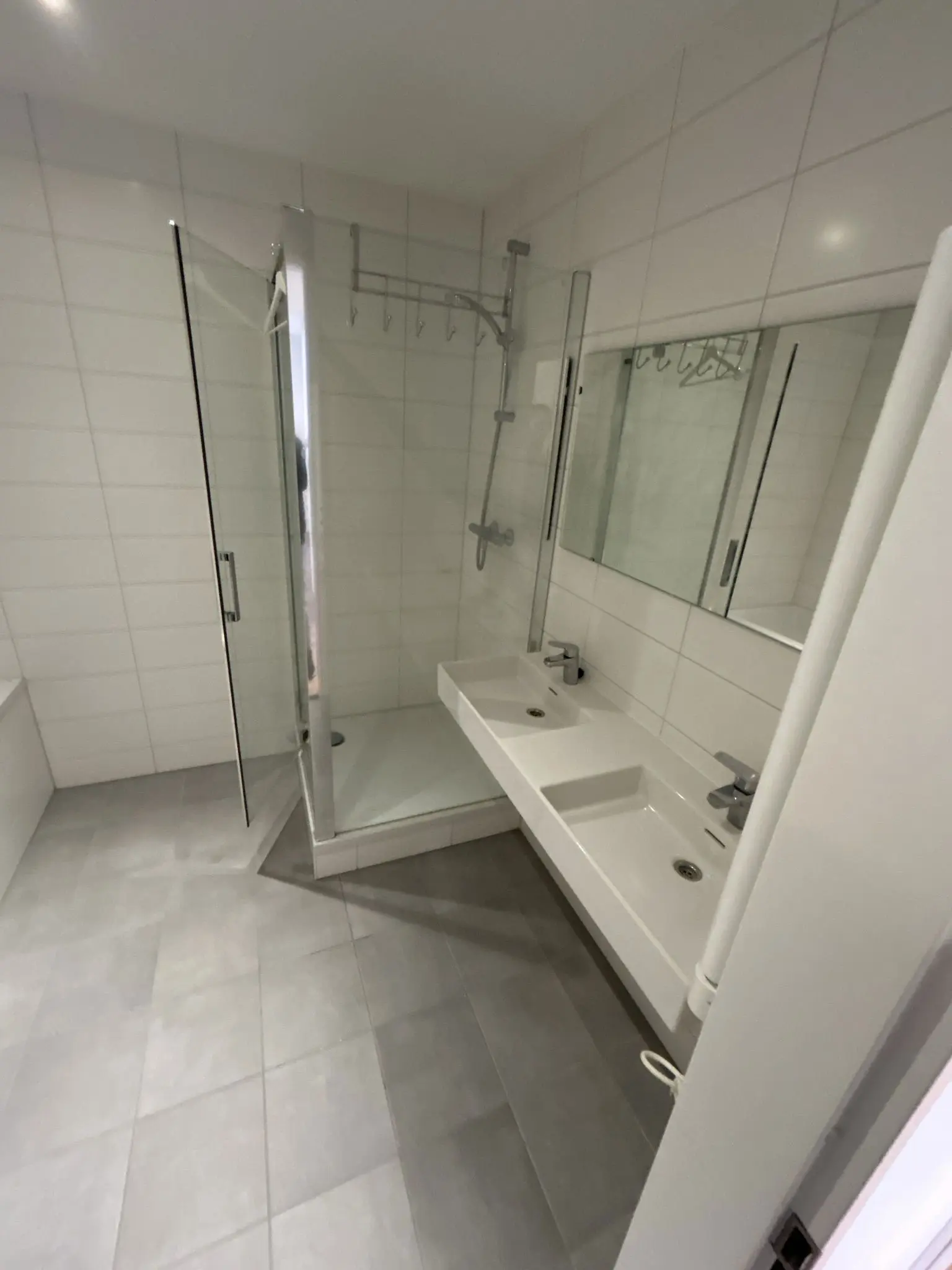 In de badkamer geniet je de luxe van een dubbele wastafel, een ruime douche en een heerlijk ligbad. Het toilet bevindt zich separaat in de woning.