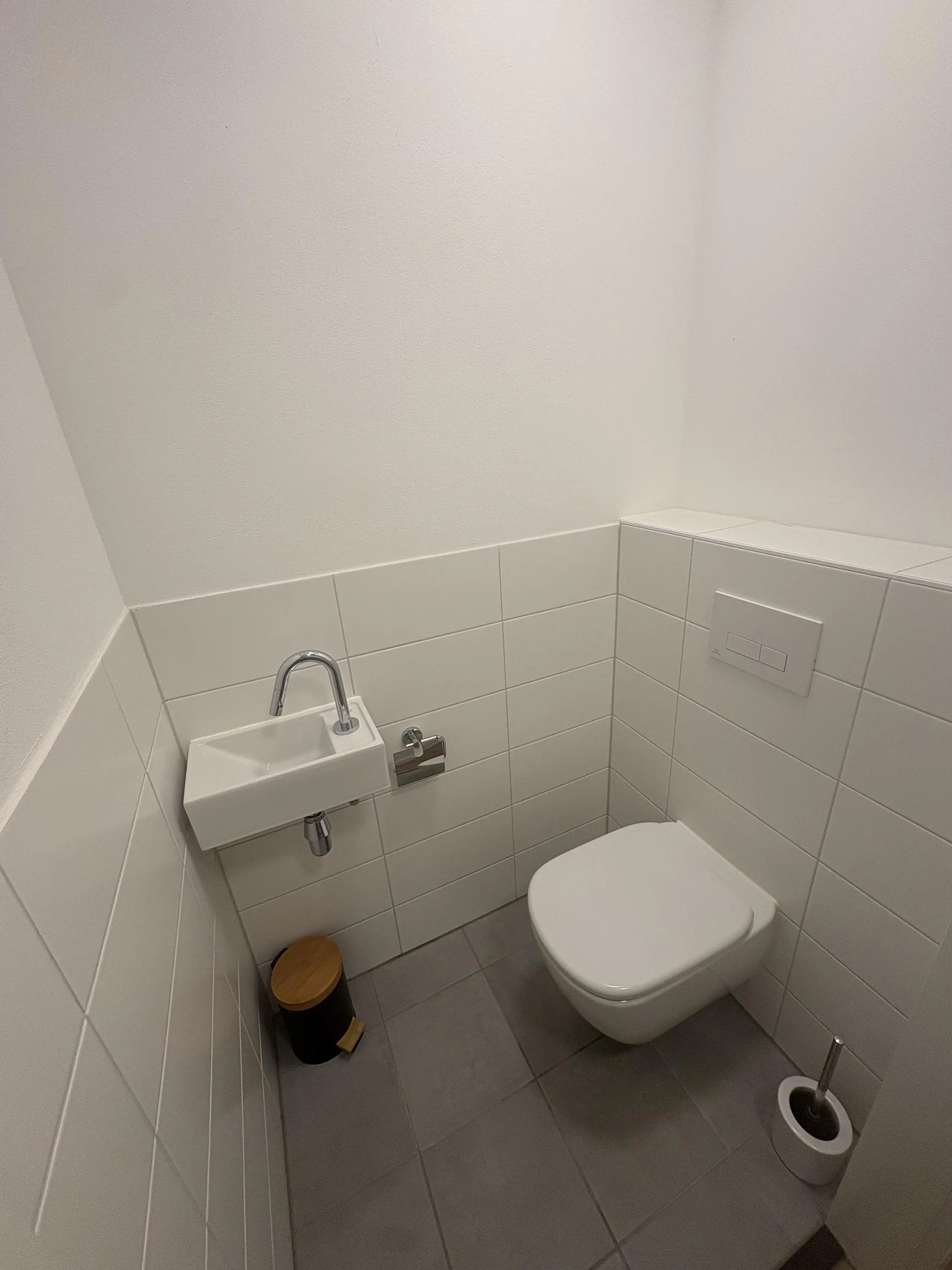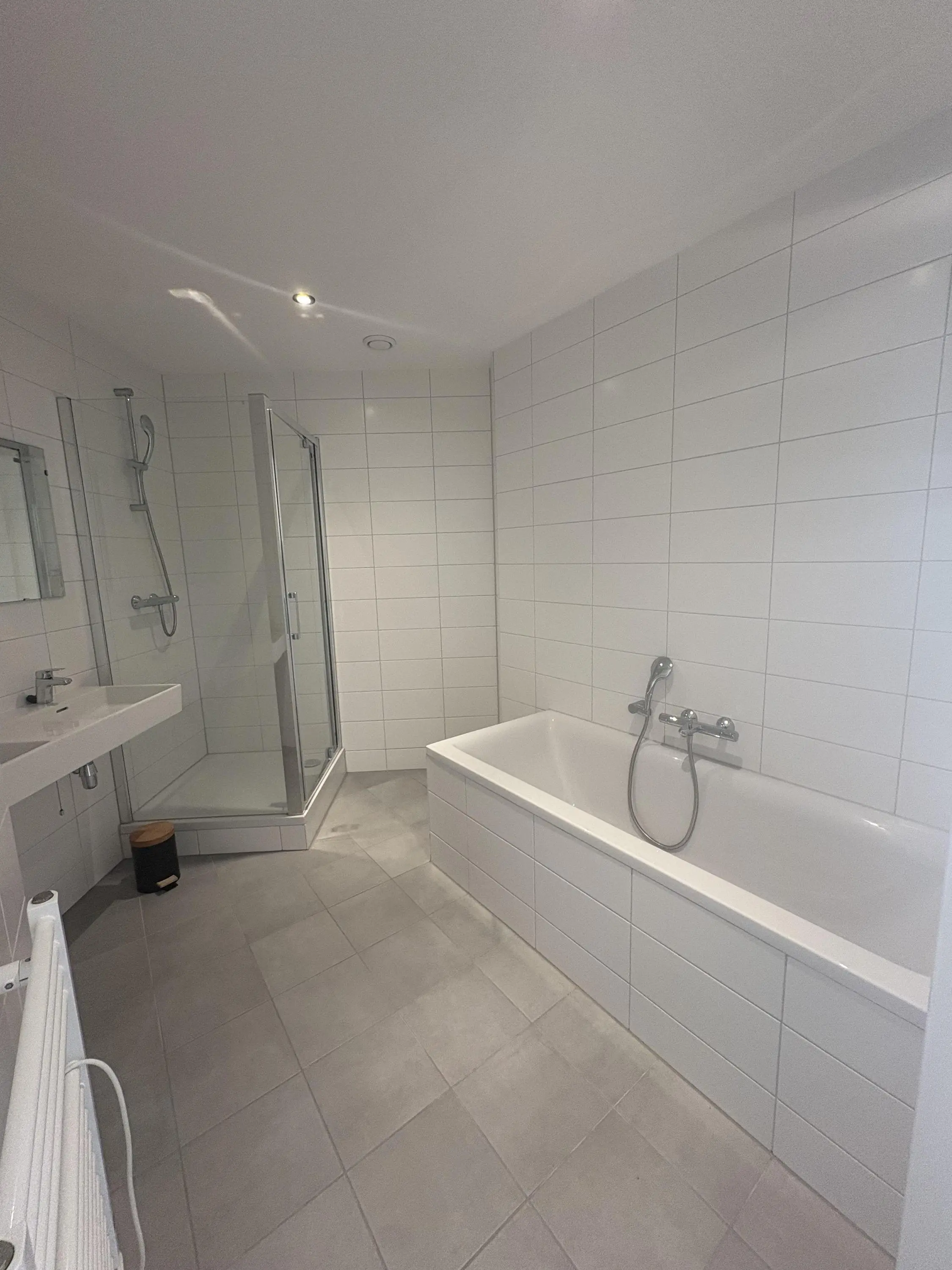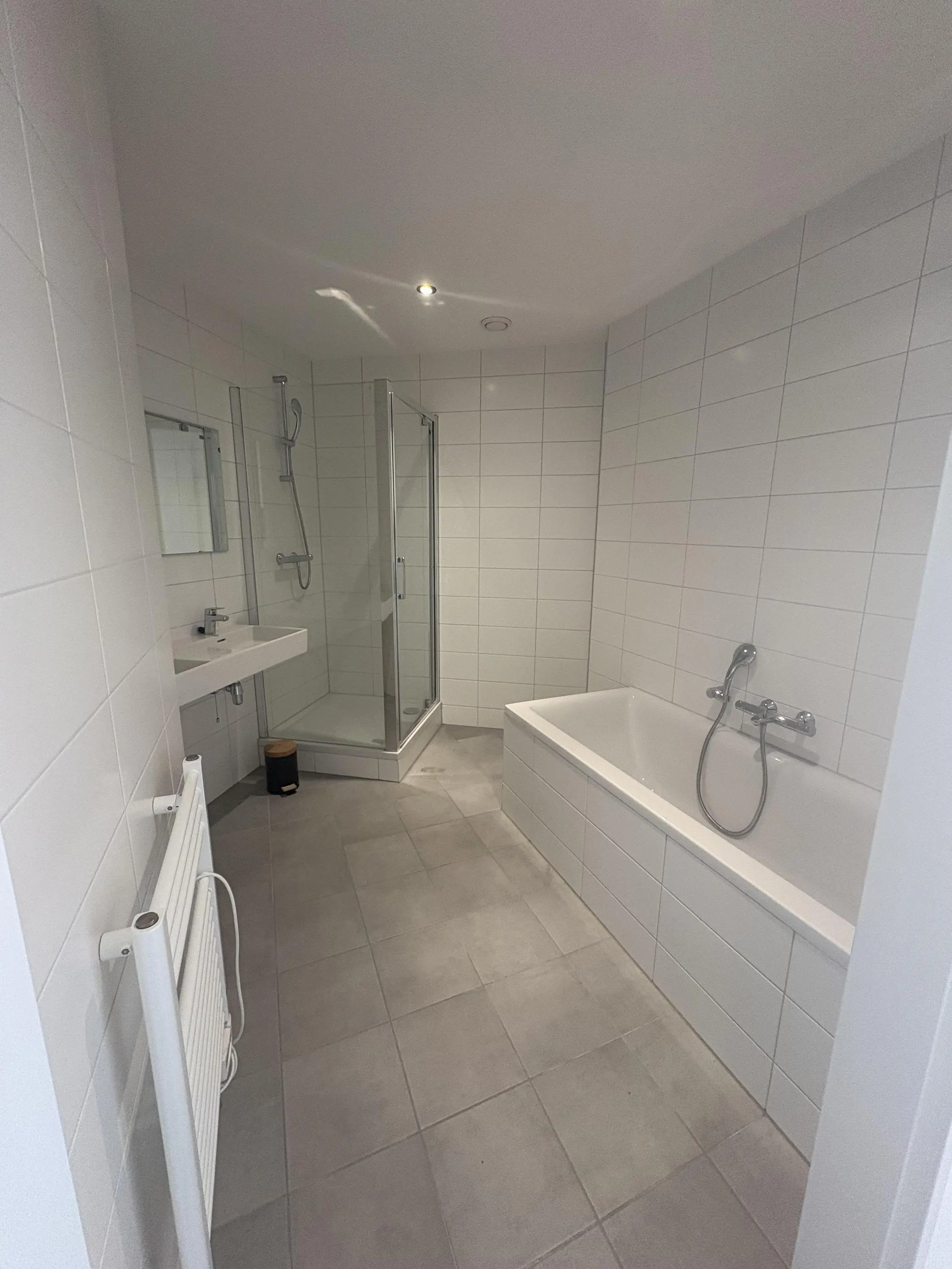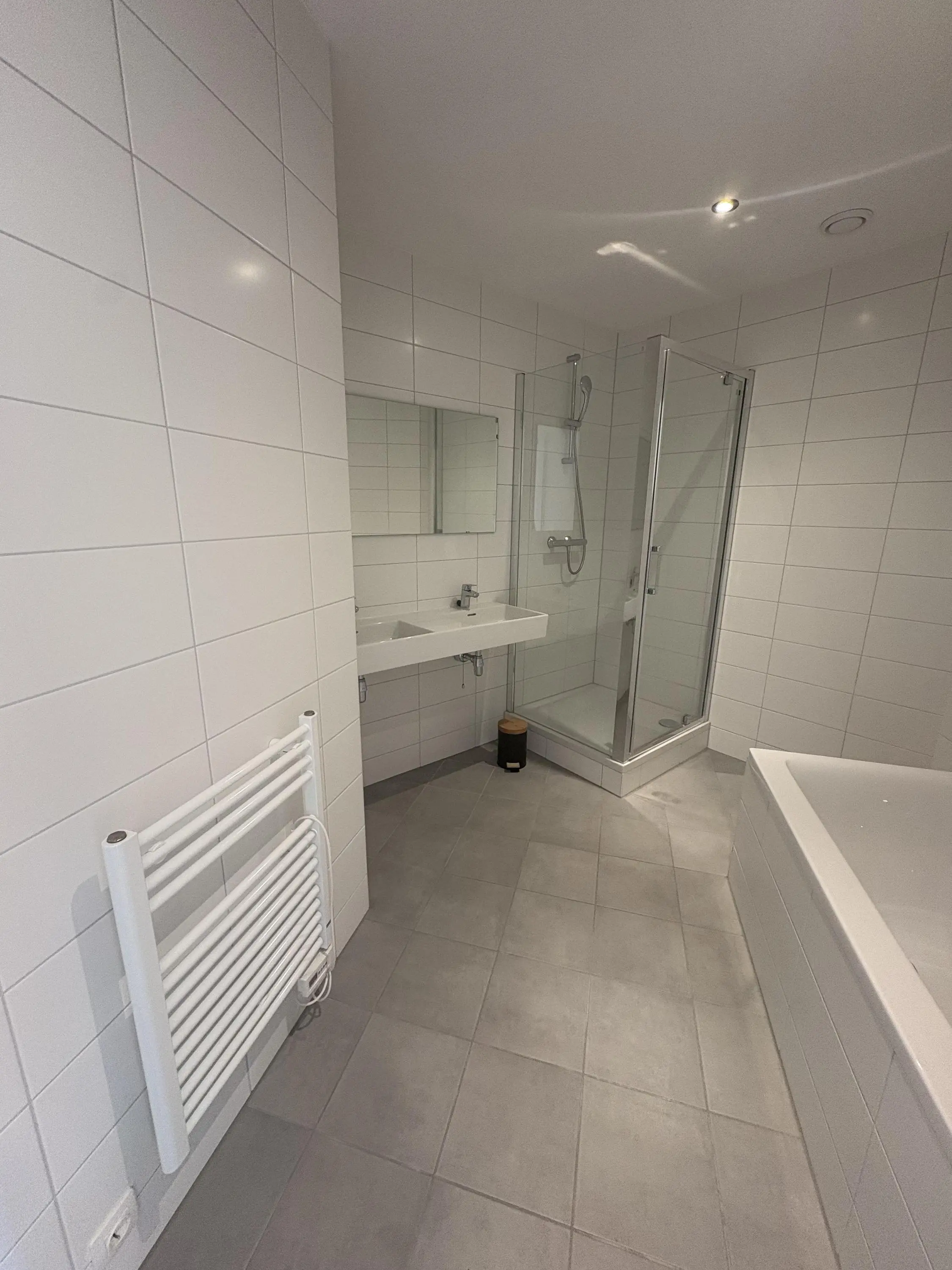 In de badkamer geniet je de luxe van een dubbele wastafel, een ruime douche en een heerlijk ligbad. Het toilet bevindt zich separaat in de woning.